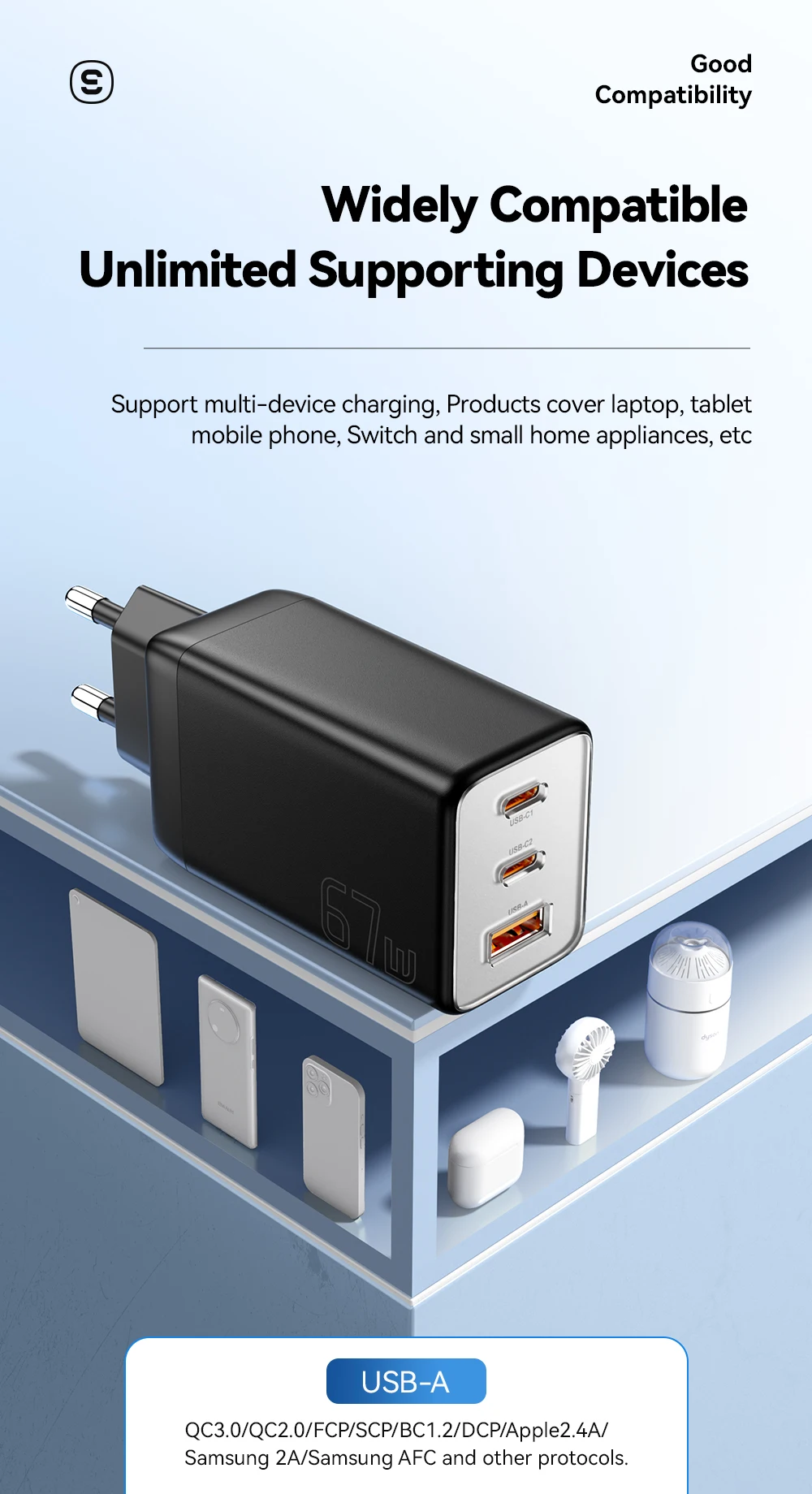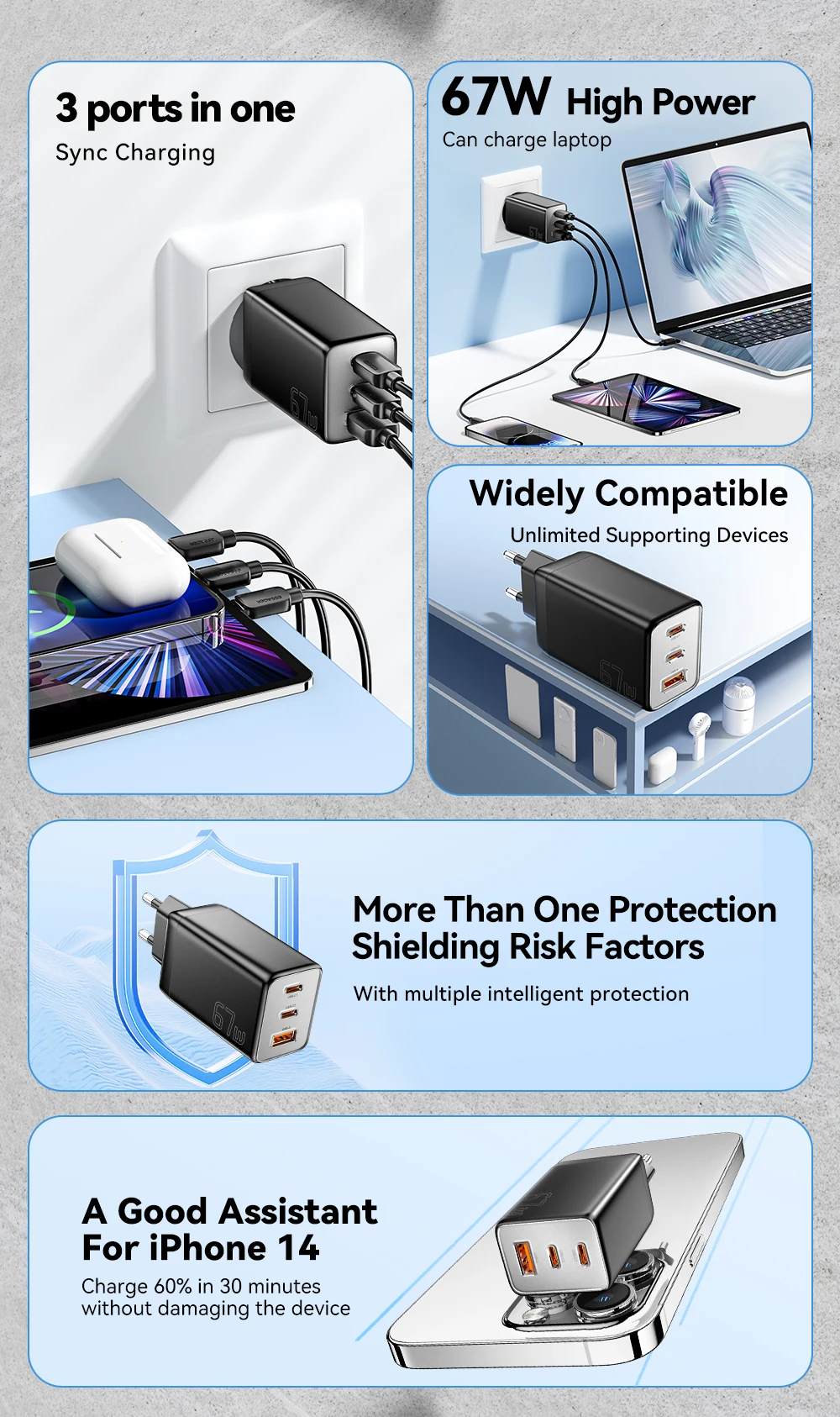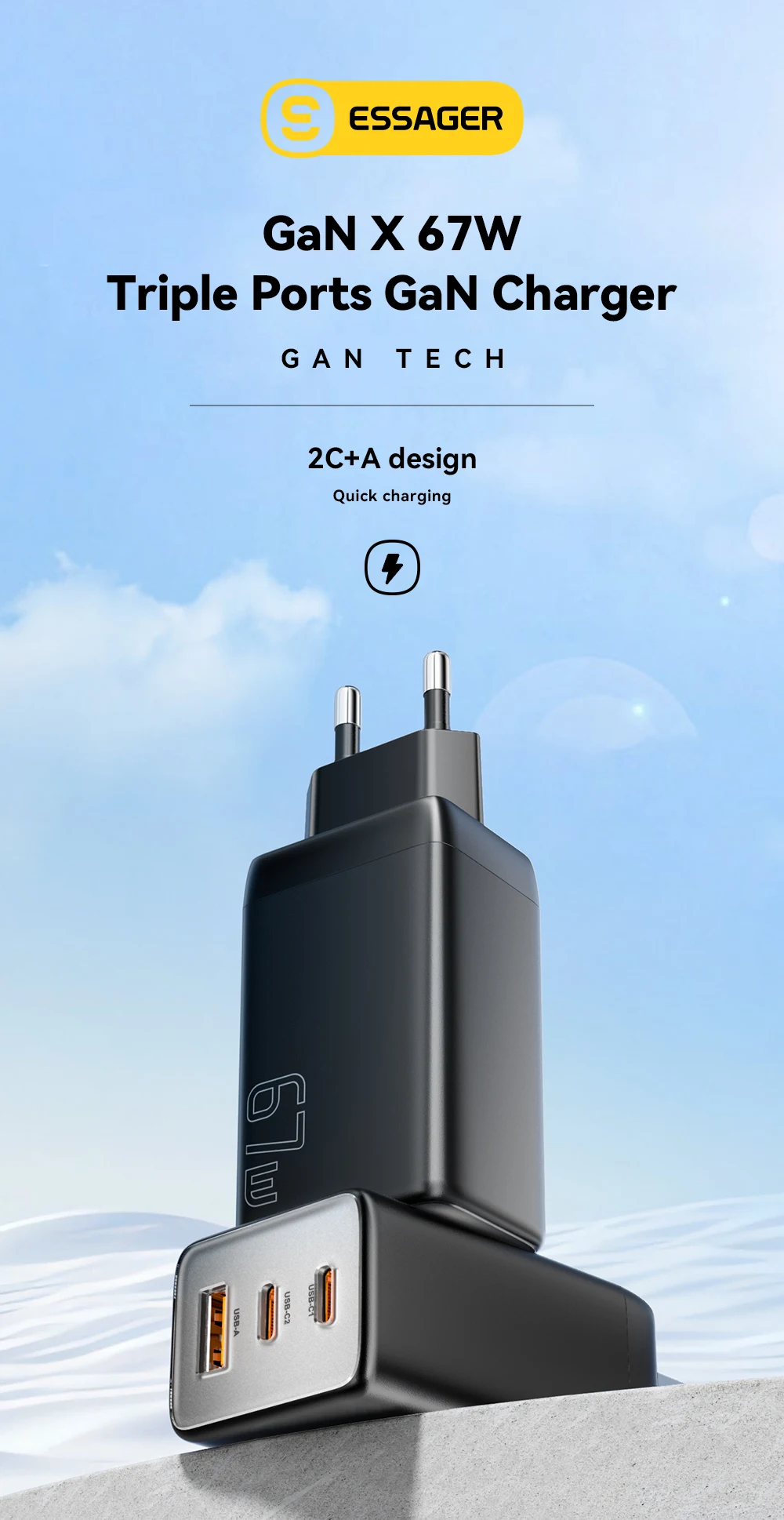Comprar Essager 67W GaN USB tipo C cargador PPS 65W carga rápida para Samsung QC 4,0 PD 3,0 iPhone 15 14 13 Pro Huawei teléfono portátil Chagers