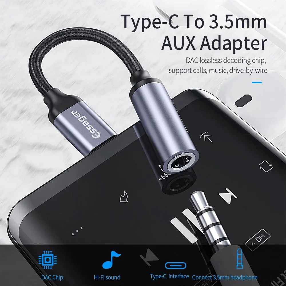 Comprar Essager-Adaptador de auriculares tipo c a Jack de 3,5mm, Cable auxiliar de Audio USB C a 3,5mm para Huawei P30 P20 Pro Xiaomi Mi 9 8 Oneplus 7 7t