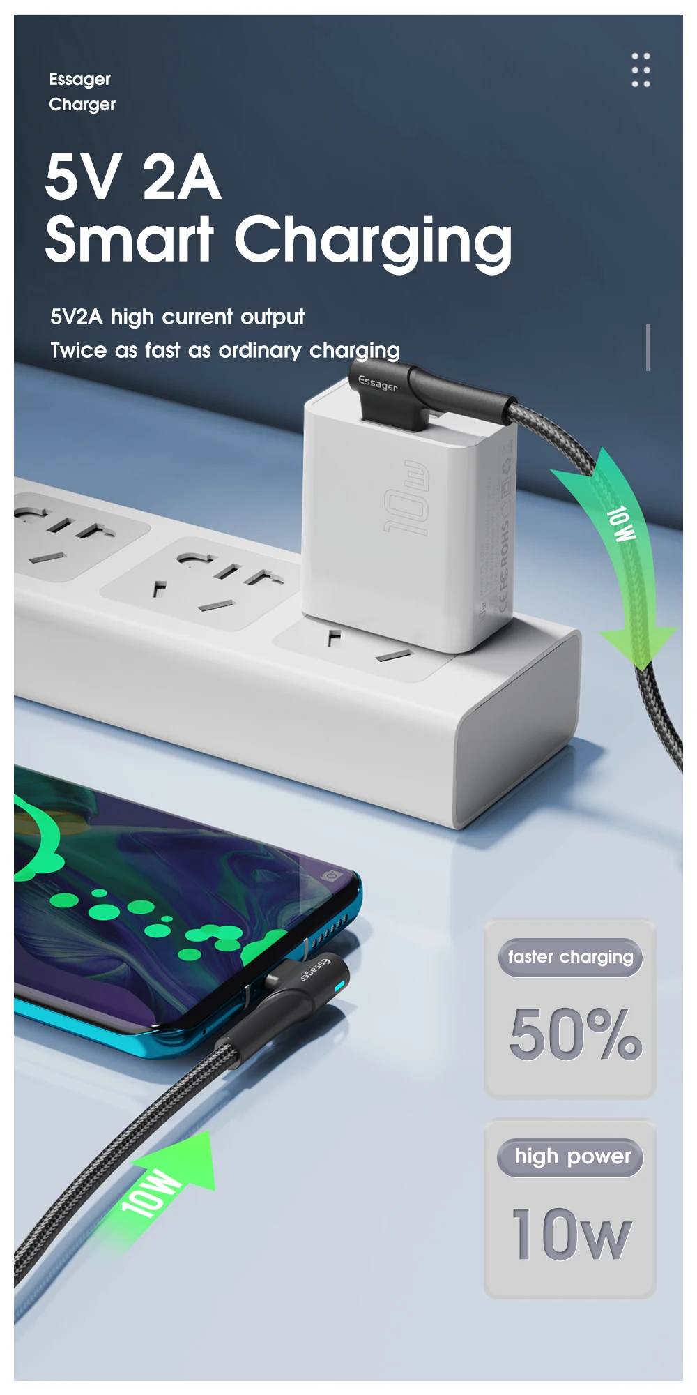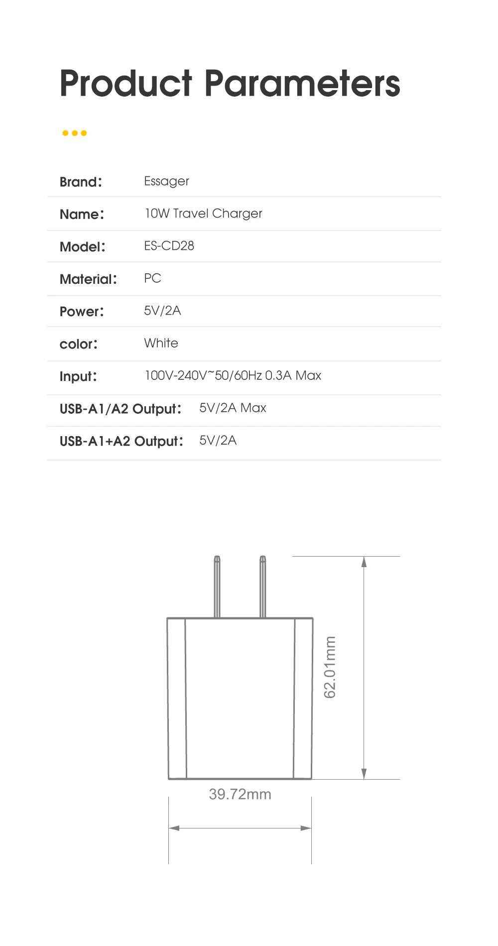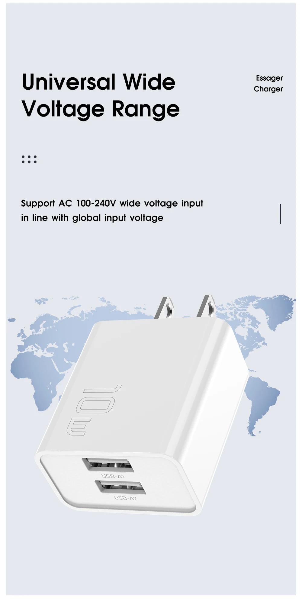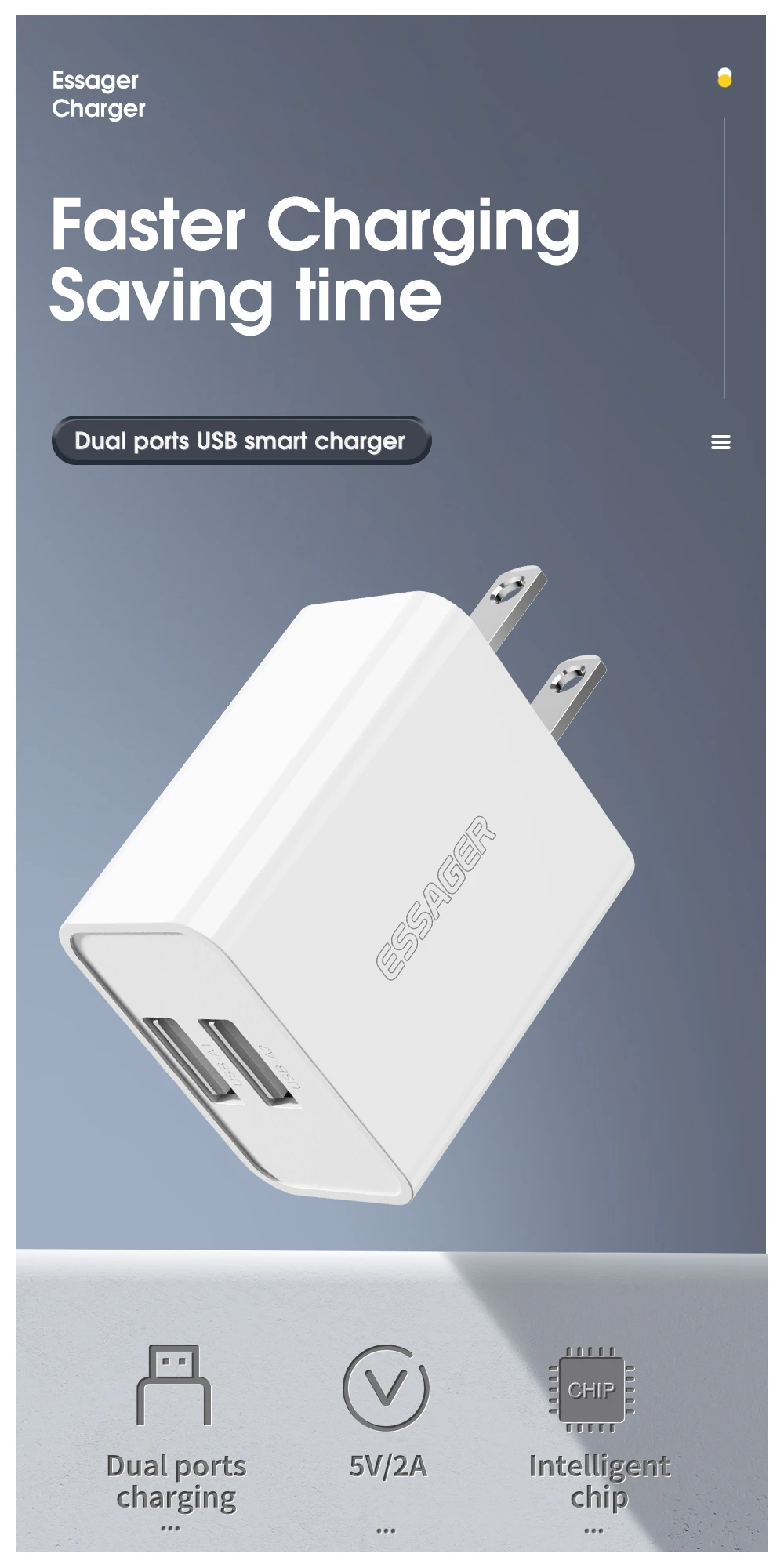 Comprar Essager-Adaptador de carga rápida para teléfono móvil, Cargador USB Dual de 10W, para iPhone 14, 13 Pro Max, Xiaomi, Huawei