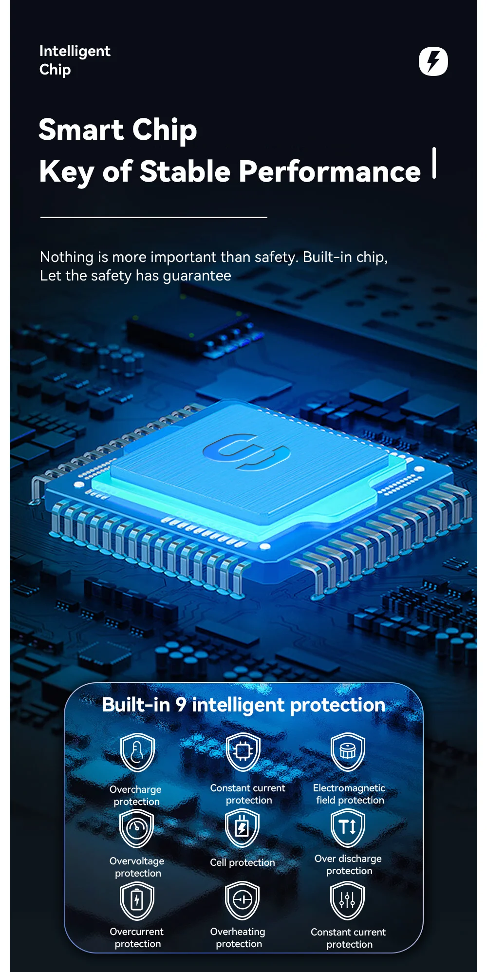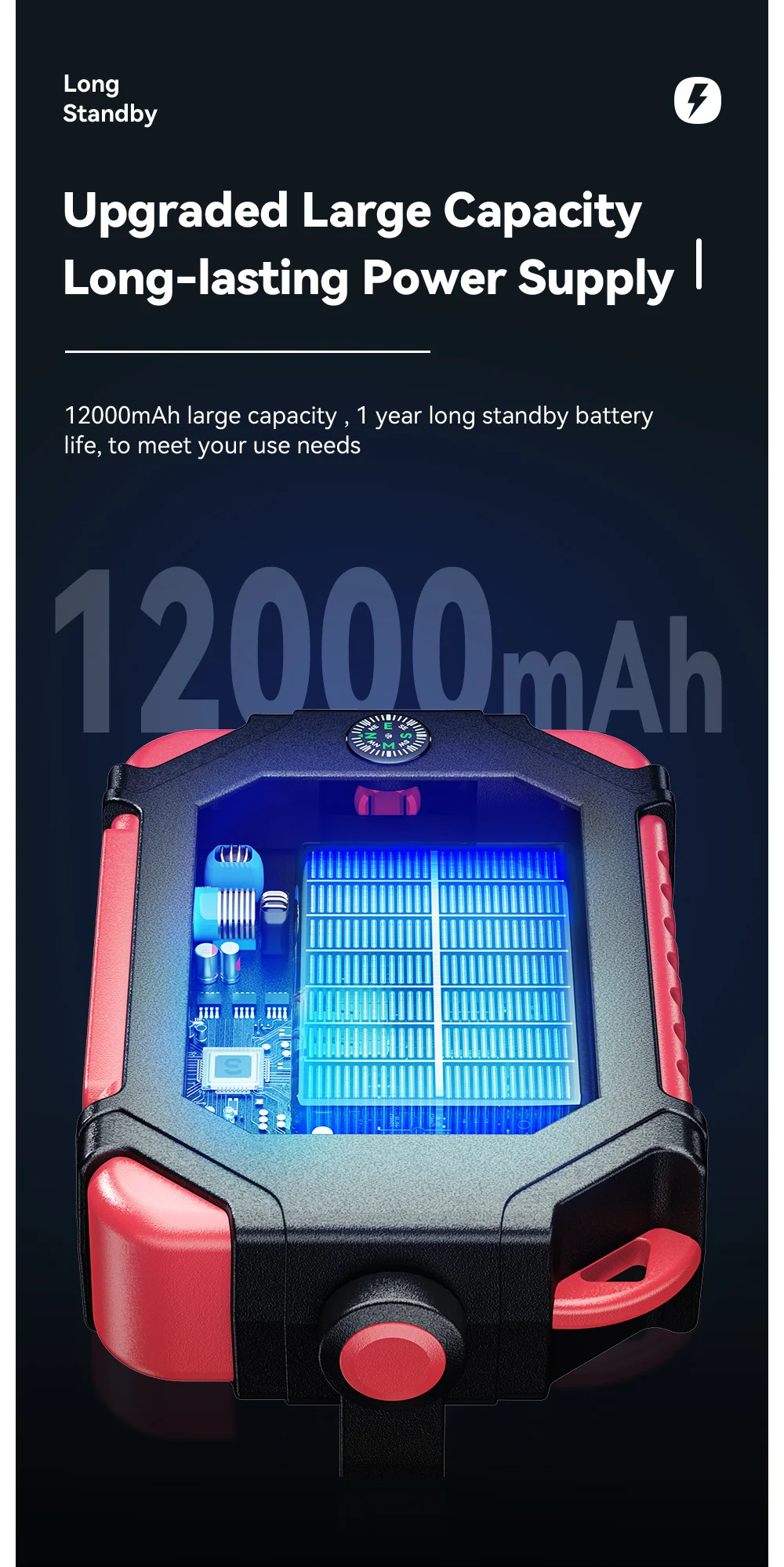 3. Chip inteligente de gran capacidad de 12000mAh, seguro y estable, vida útil súper larga