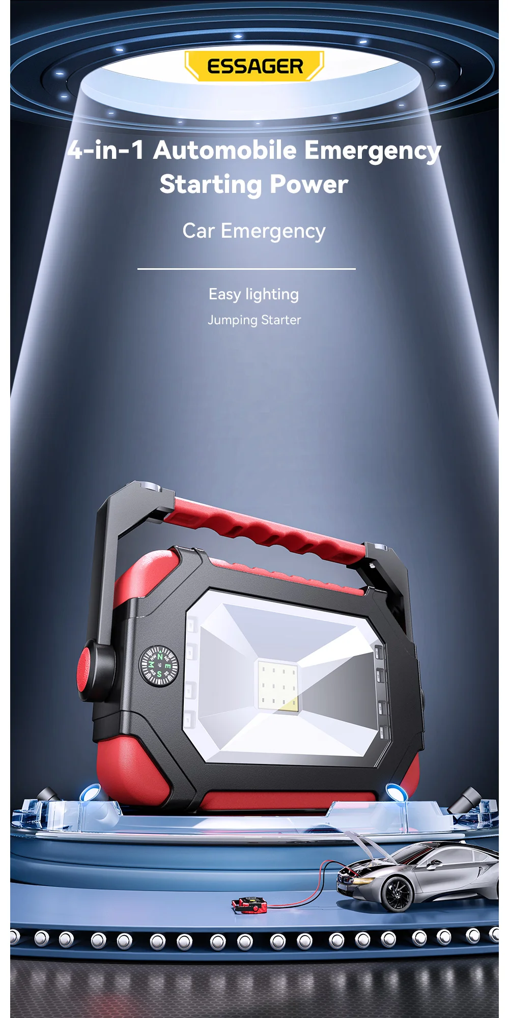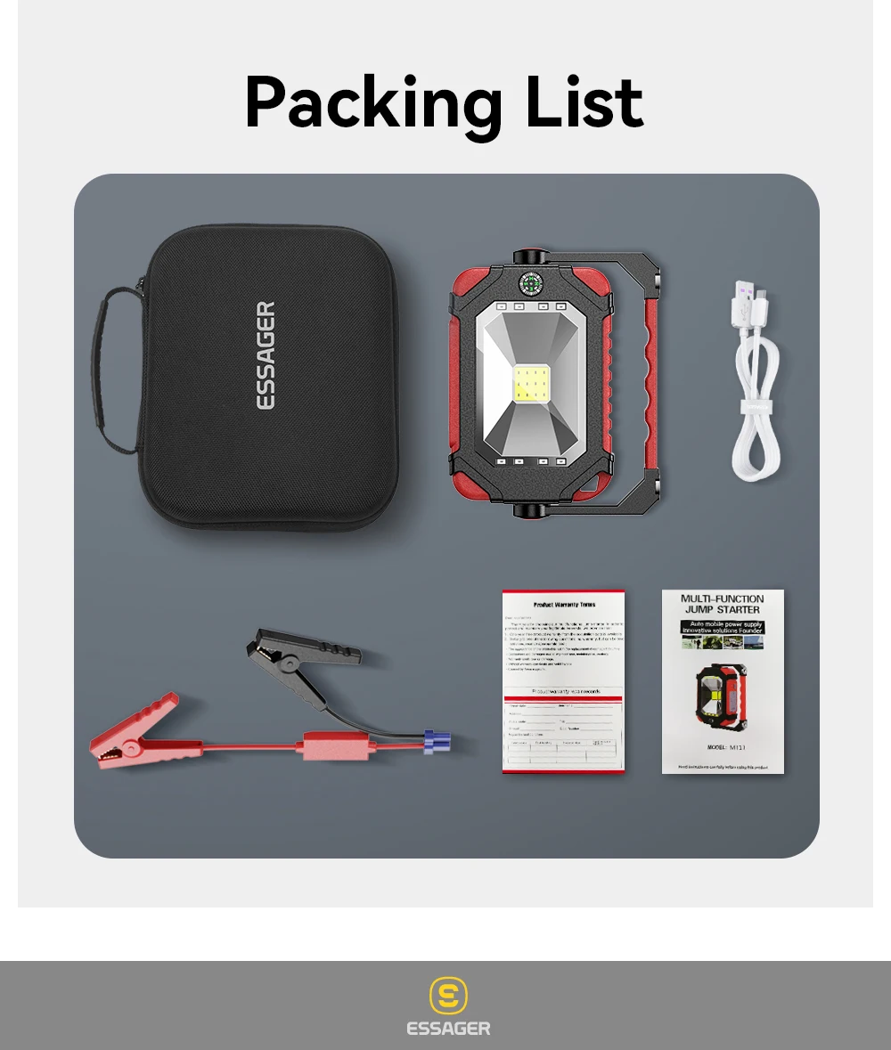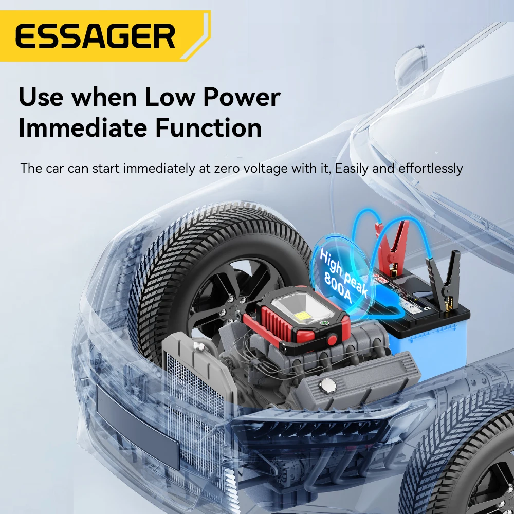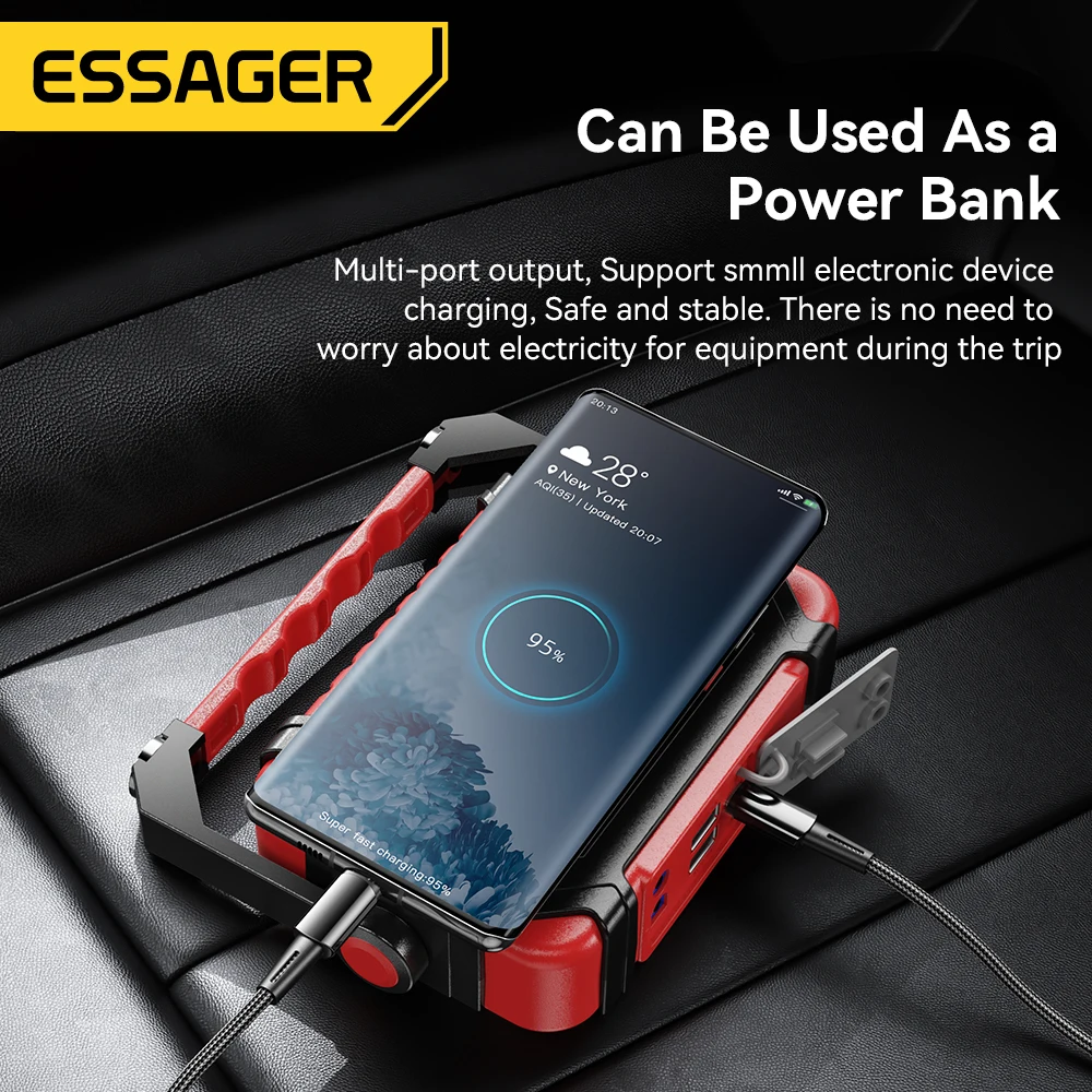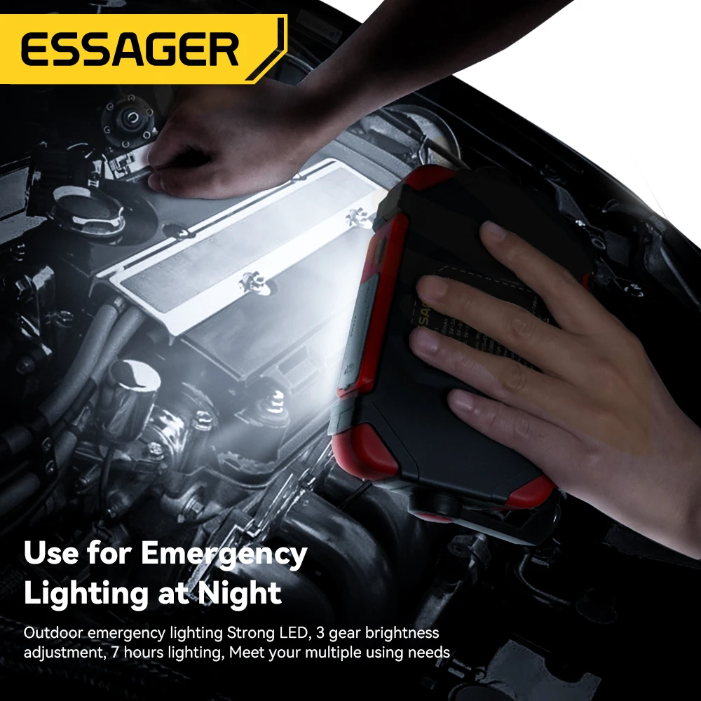 Comprar Essager-arrancador de batería portátil para coche, dispositivo de arranque de emergencia, con iluminación LED, 12V