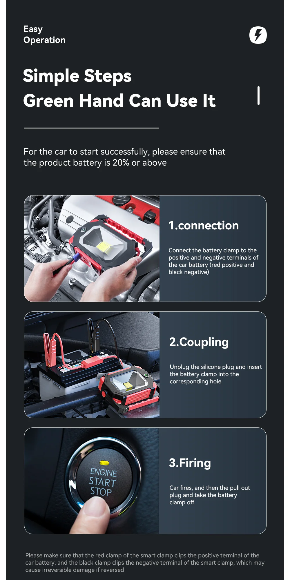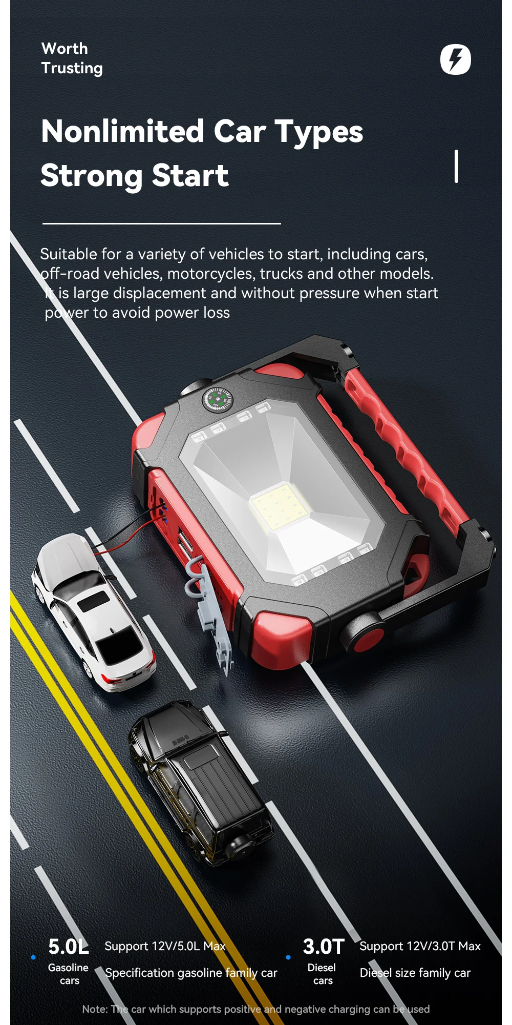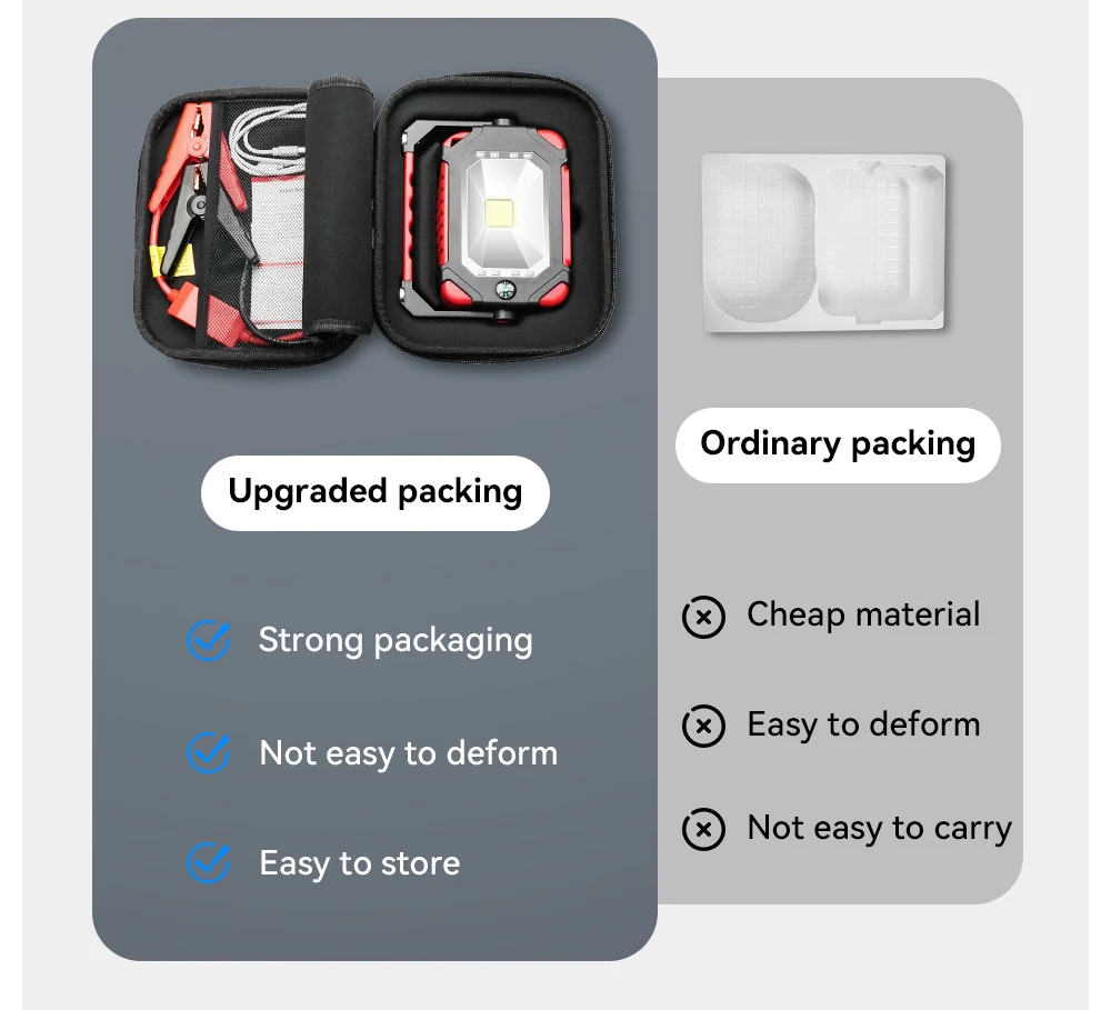 2. High-rate lithium battery, 600A high and strong starting current, 800A peak current, not afraid of severe cold and high temperature, the car will start immediately after hitting it, and will not hurt the car