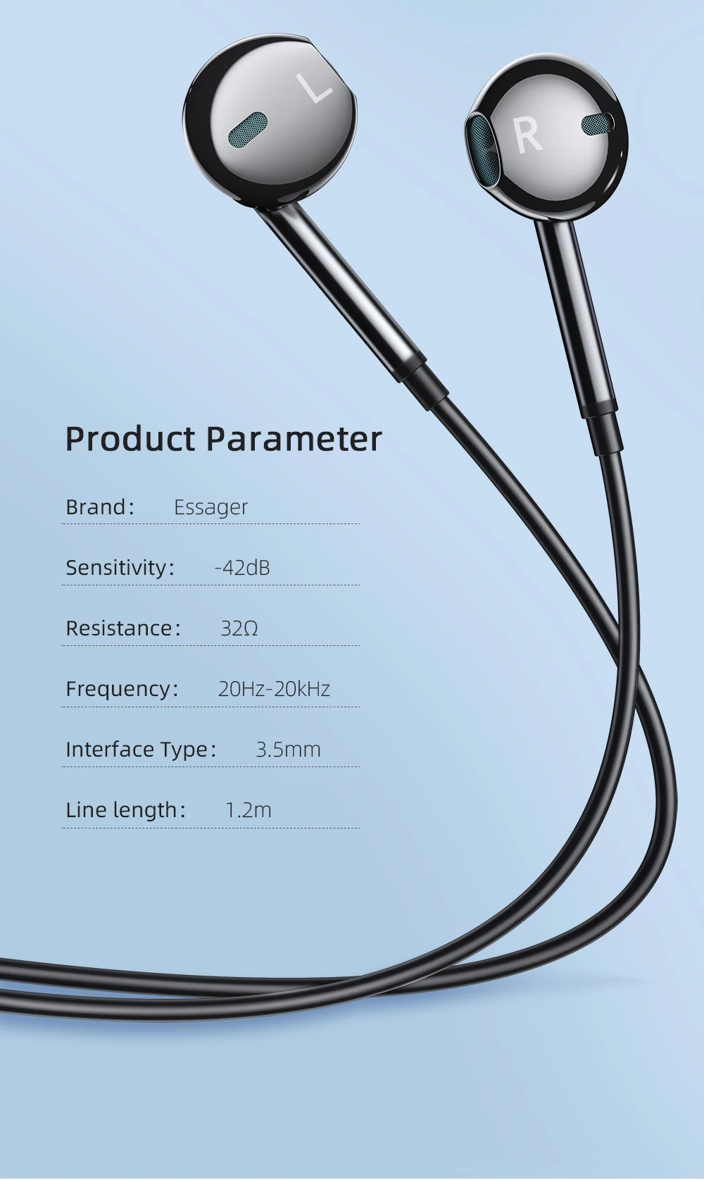 Comprar Essager-auriculares con cable para teléfono Xiaomi, Samsung, ordenador, estéreo, con micrófono, deportivos, 3,5mm