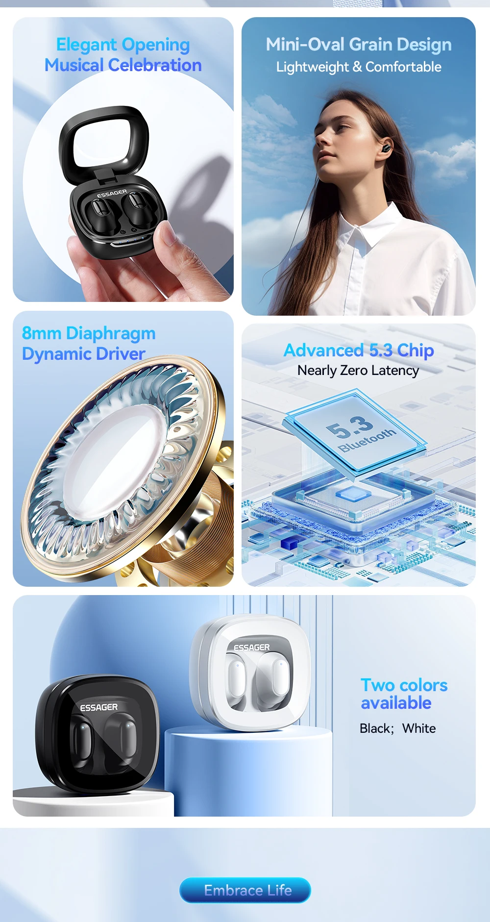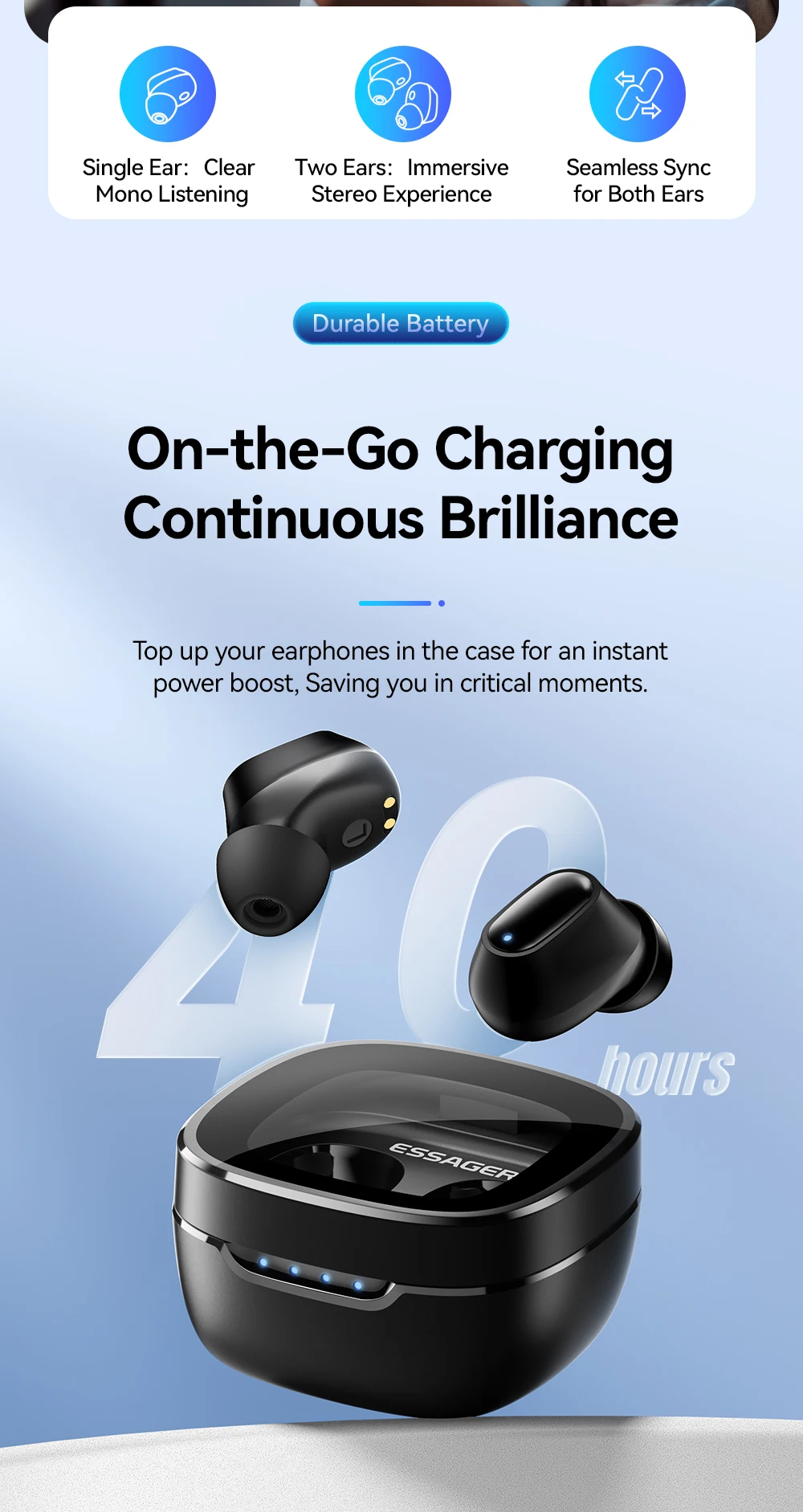 Comprar Essager-auriculares inalámbricos TWS, compatibles con Bluetooth 5,3, 3000mAh, caja de carga, BT, estéreo, Deportivos