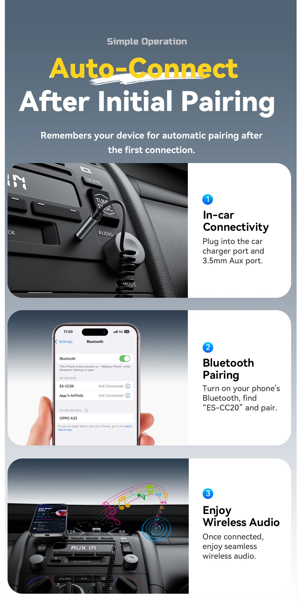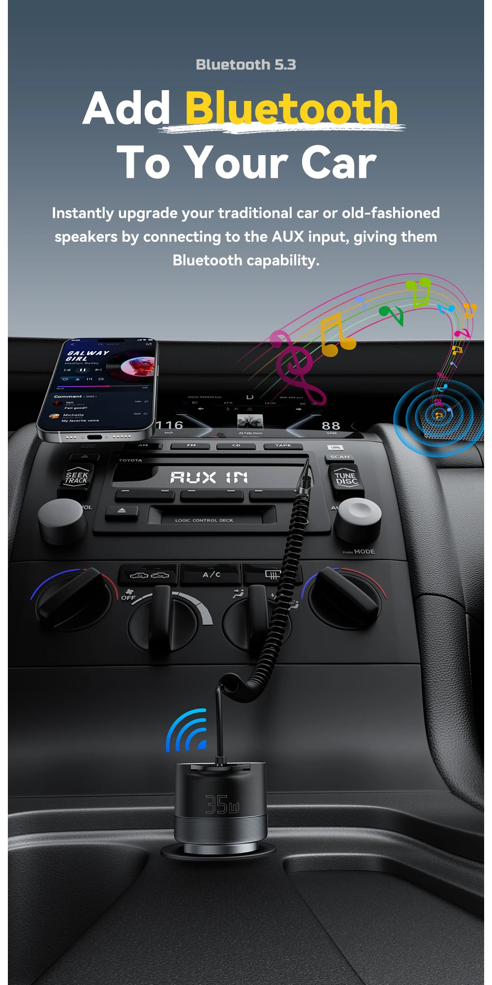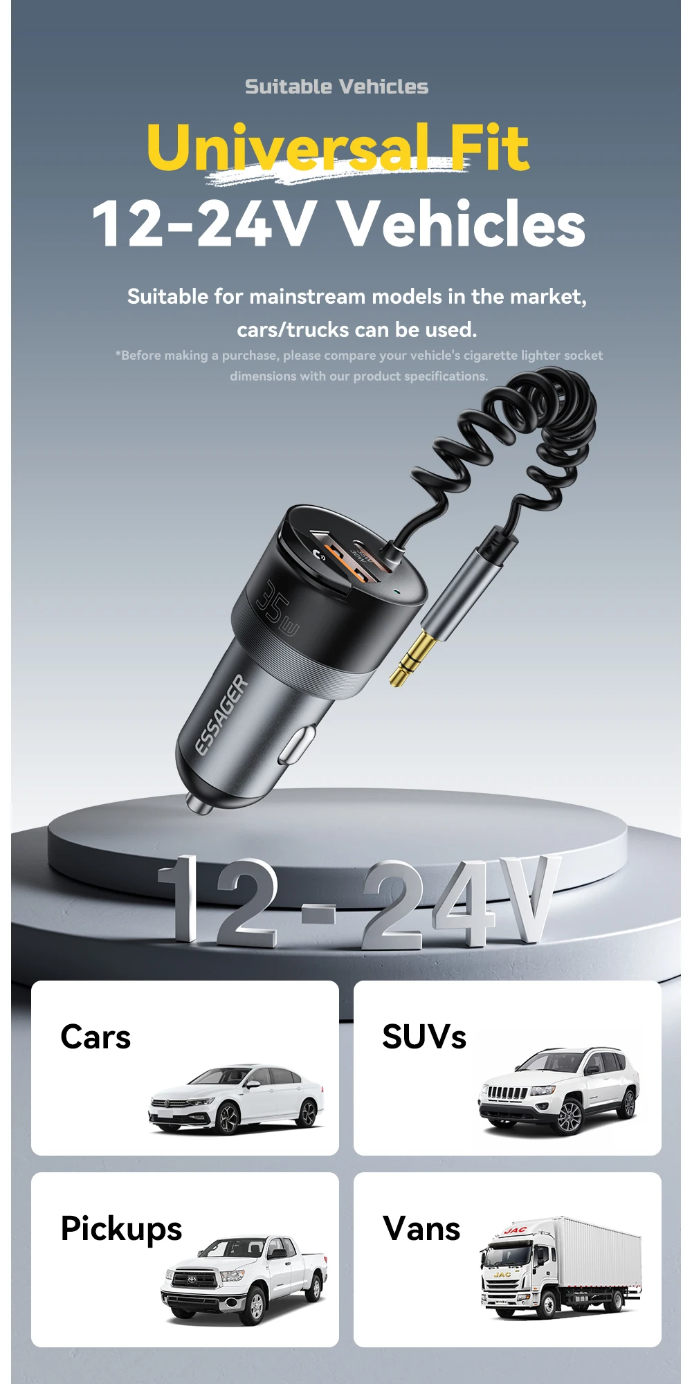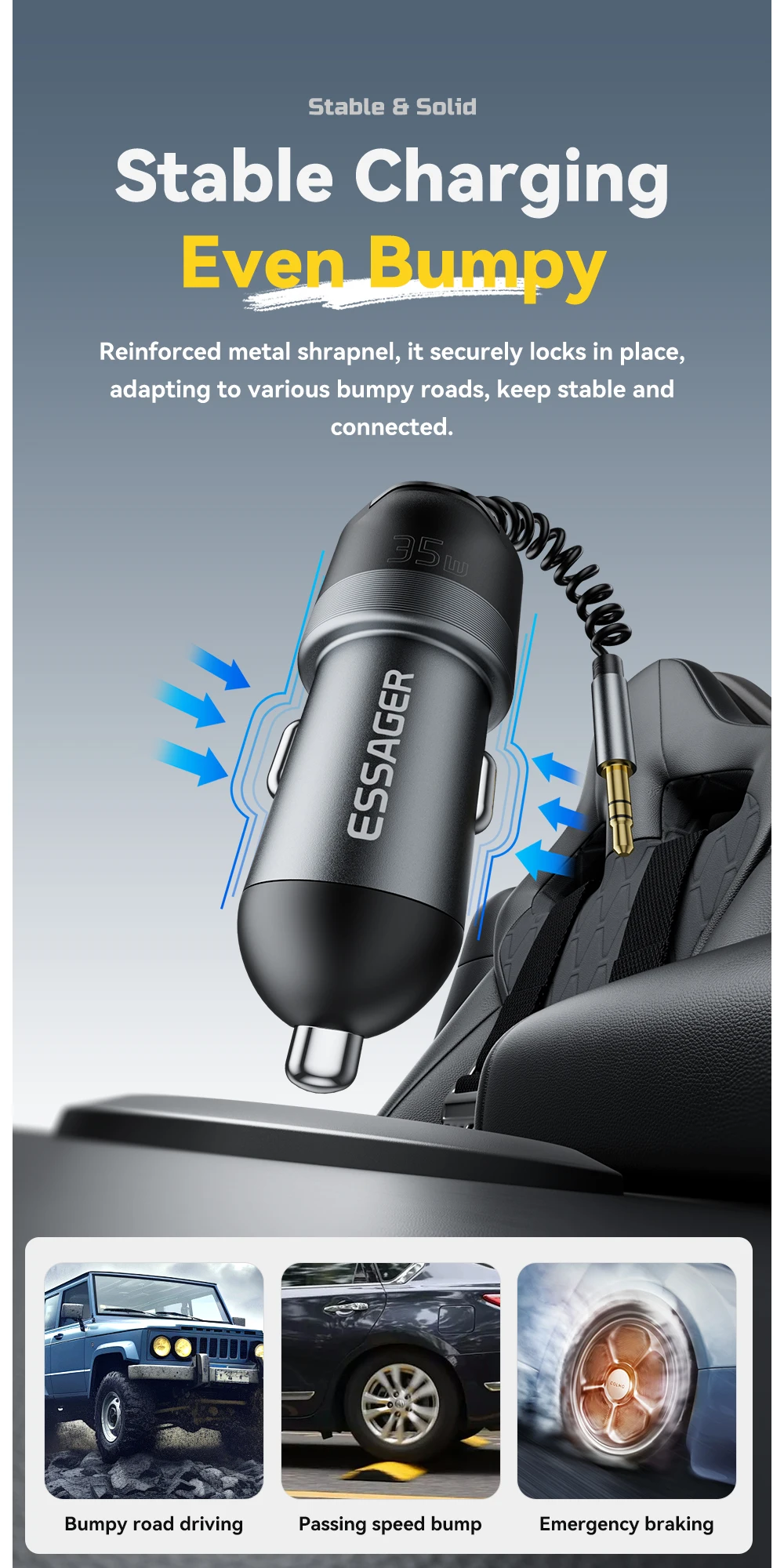 Comprar Essager Bluetooth 5,3 cargador de coche 3,5mm Jack AUX Cable 35W carga rápida para iPhone16 15 Huawei Samsung cargadores de coche Bluetooth