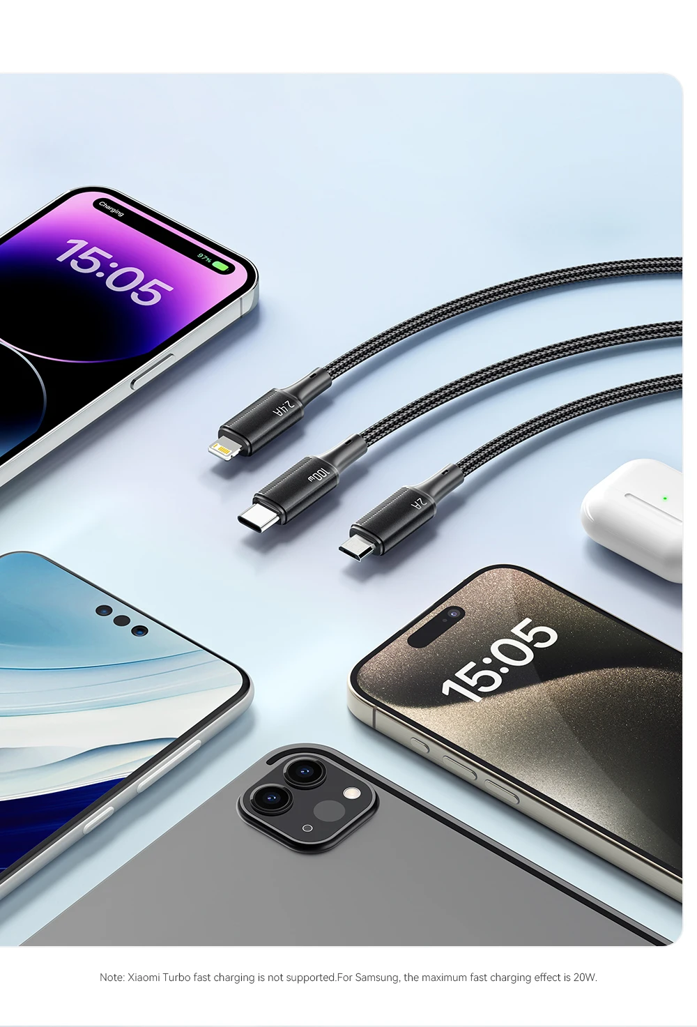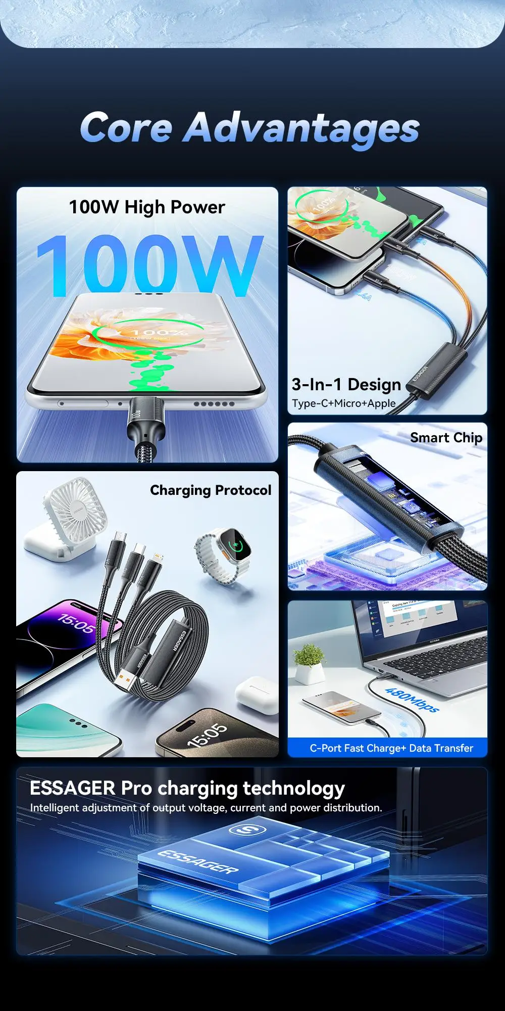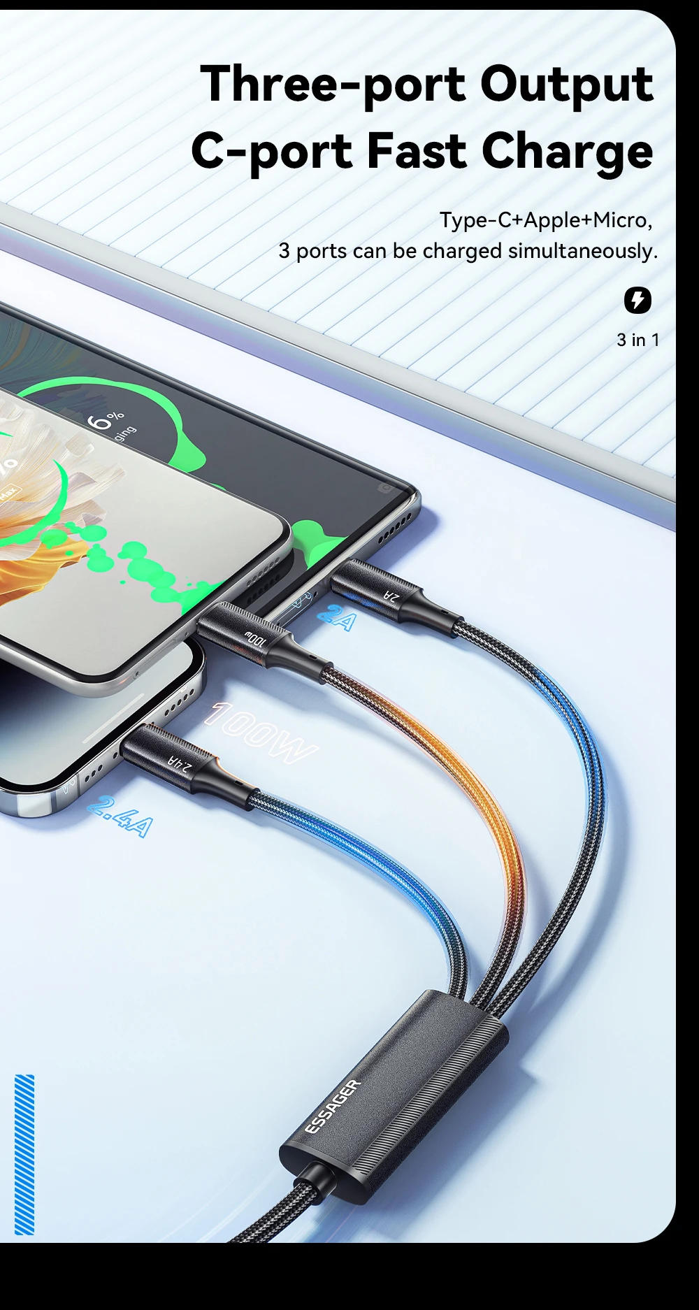 Especificación de interfaz: USB-A a tipo C (7A)+Lightning (2,4A)+Micro (2A)