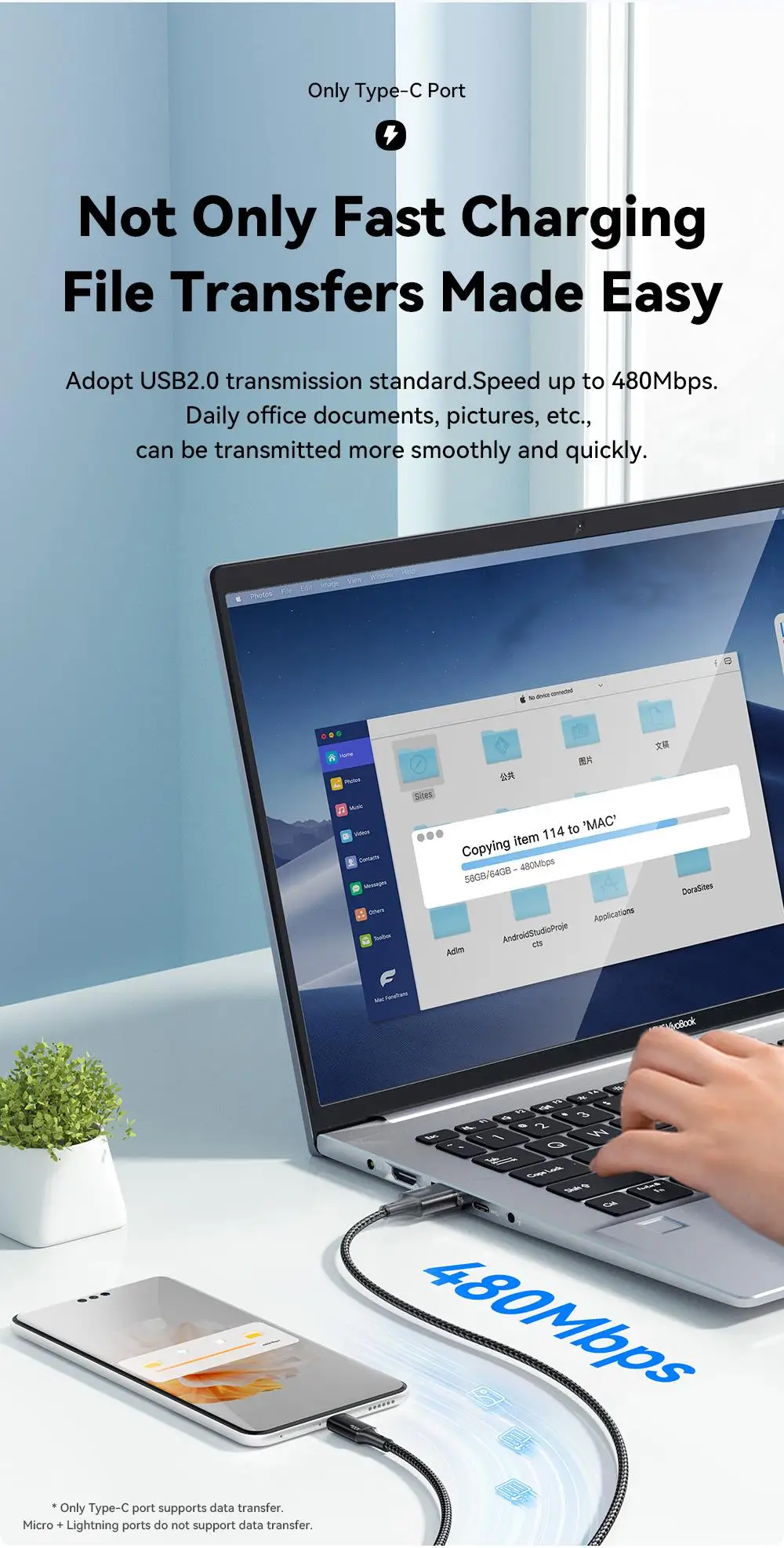 3: La interfaz tipo C admite transmisión de datos de 480 Mbps, mientras que Micro Lightning no admite transmisión de datos