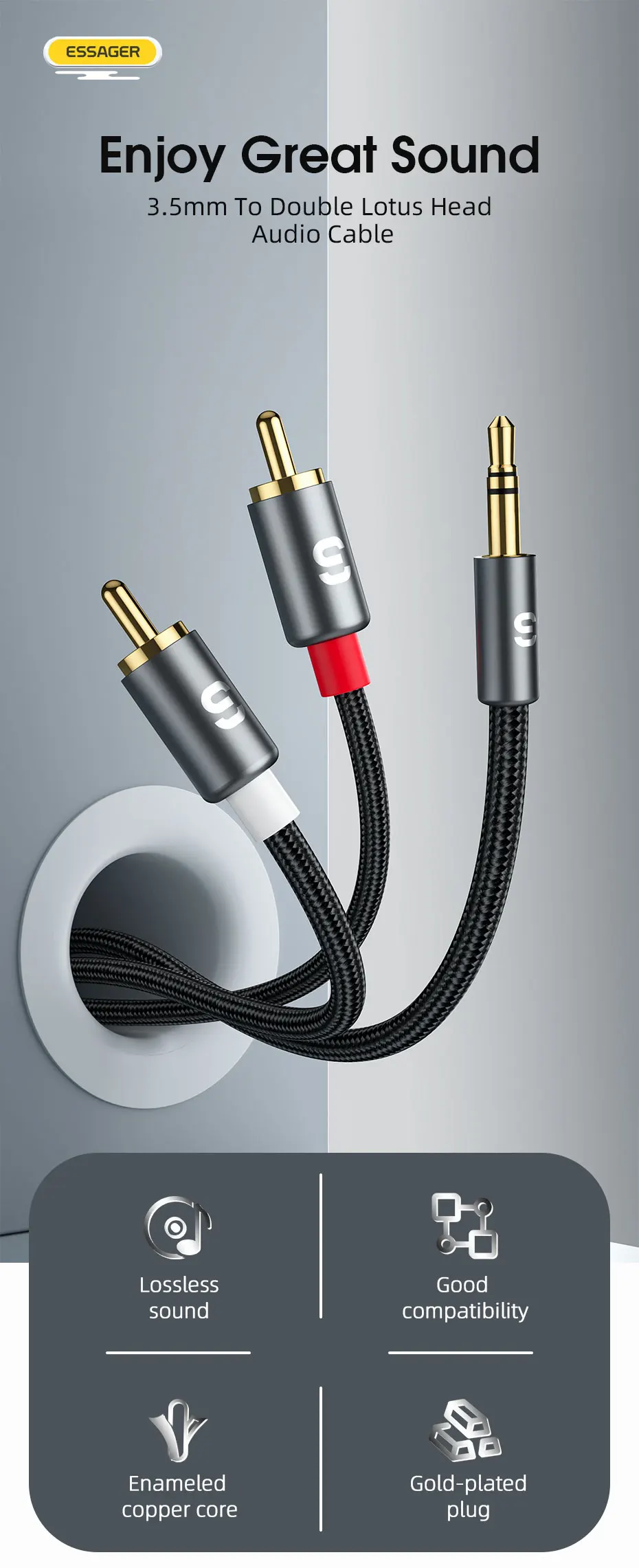 Comprar Essager-Cable de Audio RCA estéreo de 3,5mm a 2RCA macho a hembra, divisor para amplificador de Audio, Cable de cine en casa