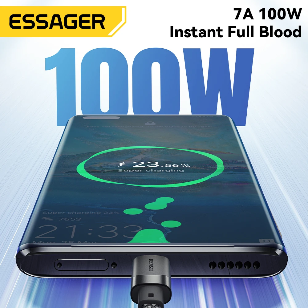 Comprar Essager-Cable de carga rápida 7A USB A tipo C, 100W, succión magnética, Cable de datos antibobinado para Samsung OPPO Onplus Realme