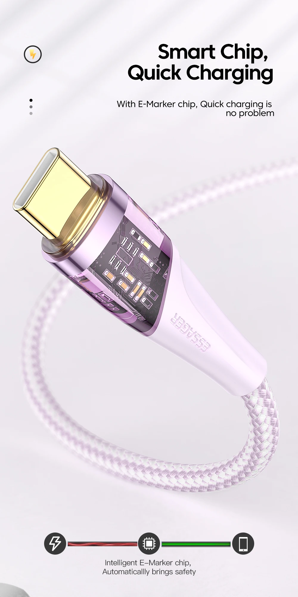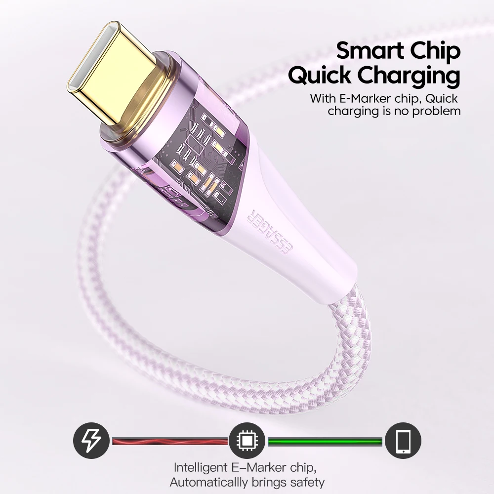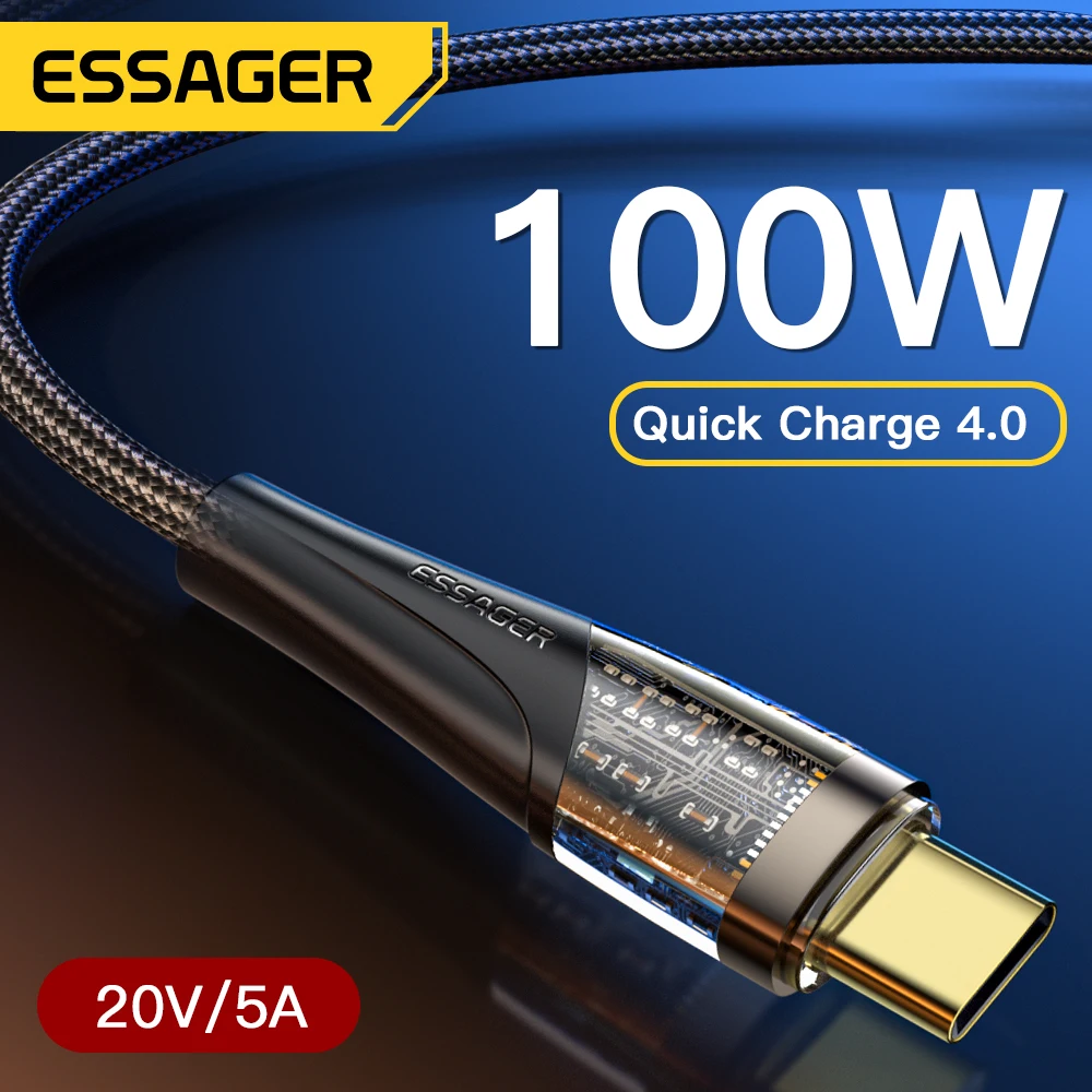Comprar Essager-Cable de carga rápida PD 100W USB C a tipo C 5A, cargador de teléfono para Samsung, Xiaomi, Huawei, MacBook Pro, iPad POCO