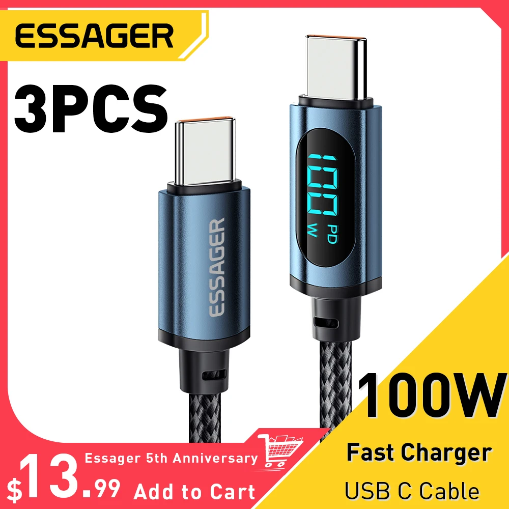 Comprar Essager-Cable de datos USB tipo C a USB C, dispositivo de carga rápida 5A, PD, 100W, para Huawei, Samsung, Poco F3, portátil y iPad, 3 unidades