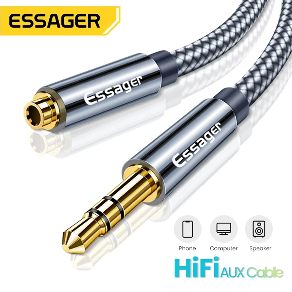 Essager-Cable de extensión para auriculares, conector auxiliar de Audio de 3,5mm, divisor hembra de 3,5mm, extensor de altavoz para adaptador de auriculares