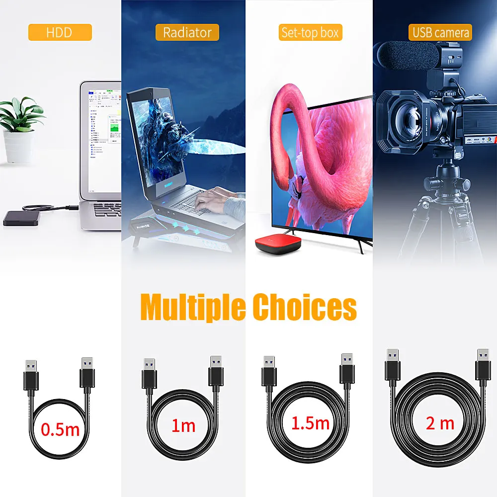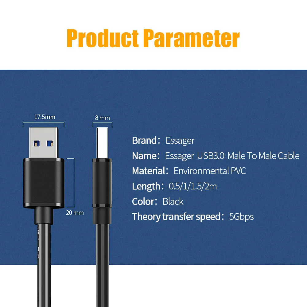 Comprar Essager-Cable de extensión USB A USB tipo A macho, extensor USB 3,0 para radiador, disco duro, Webcom, Cable de extensión USB3.0