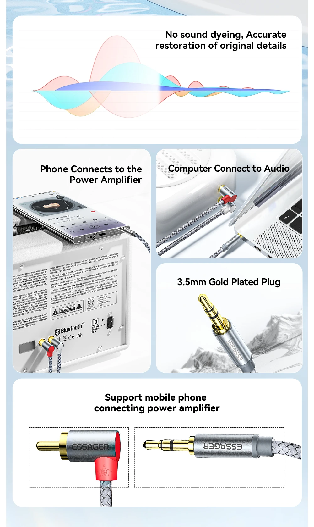 Comprar Essager-Cable Jack 3,5 a RCA de 90 °, Conector de Audio de 3,5mm a 2RCA macho, divisor Aux para amplificador de TV, PC, DVD, altavoz