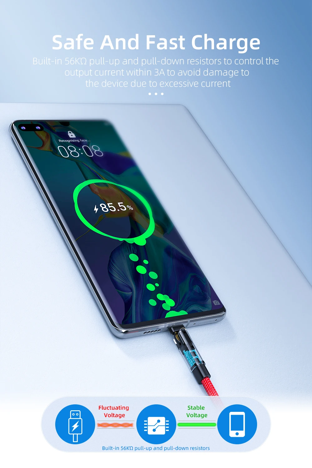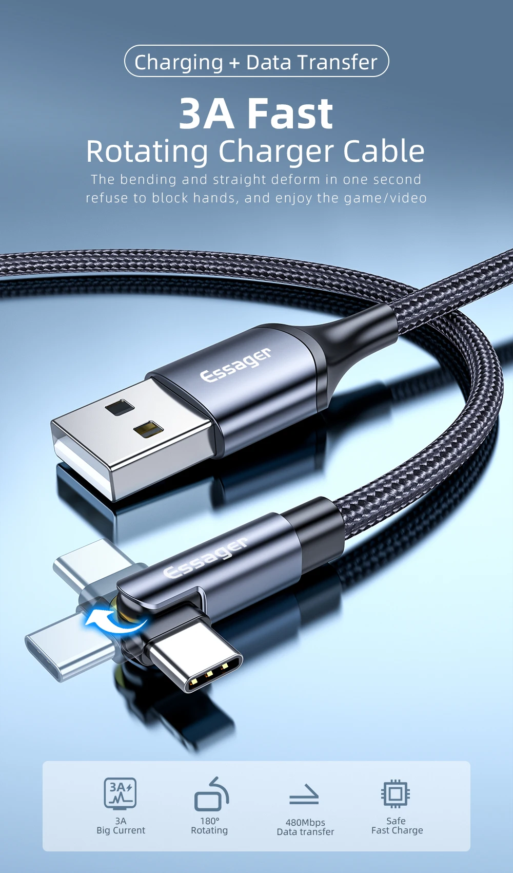 Comprar Essager-Cable Micro USB tipo C giratorio, Cable de datos, carga rápida 3A, USBC tipo C, para Xiaomi y Samsung