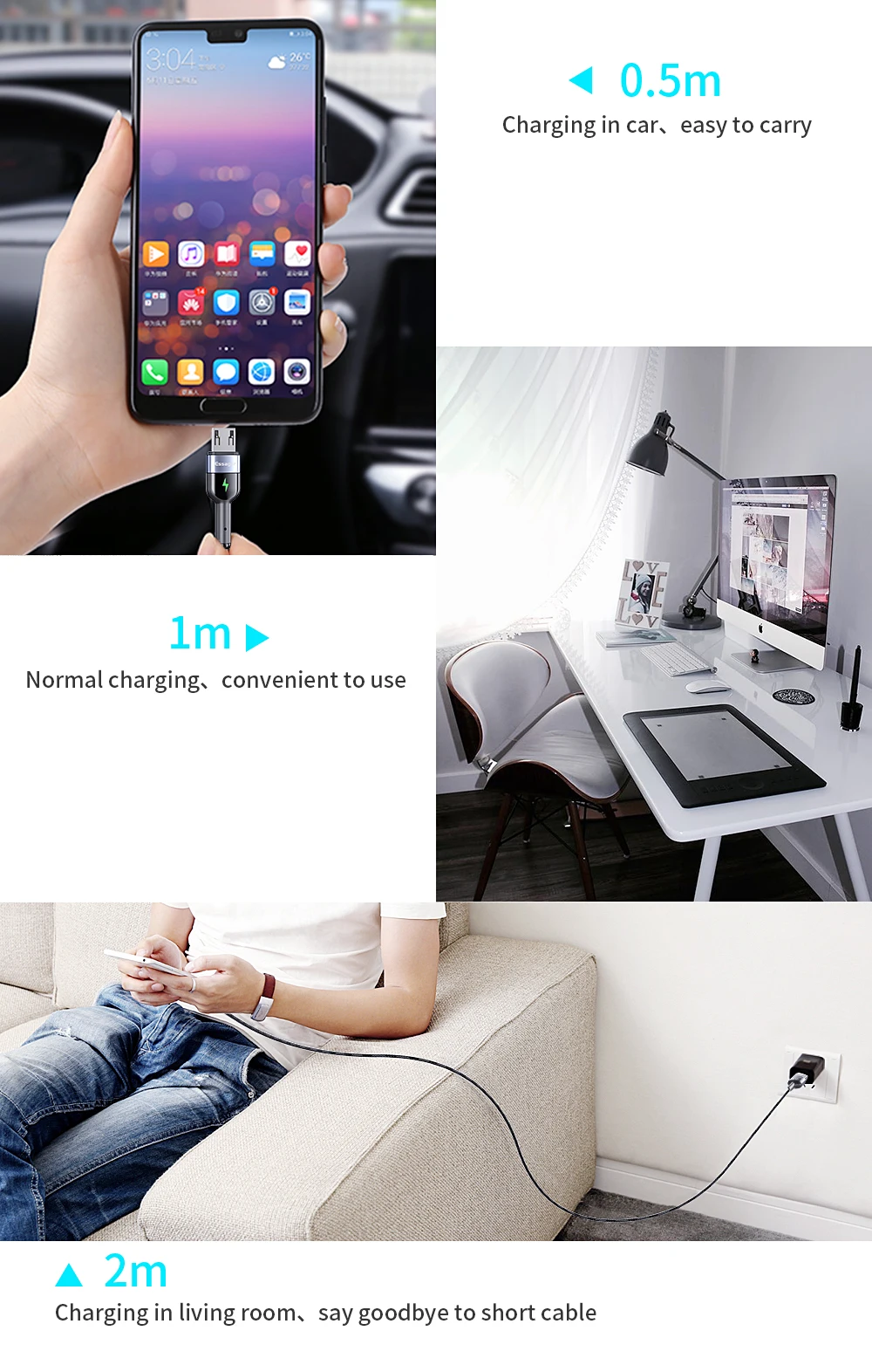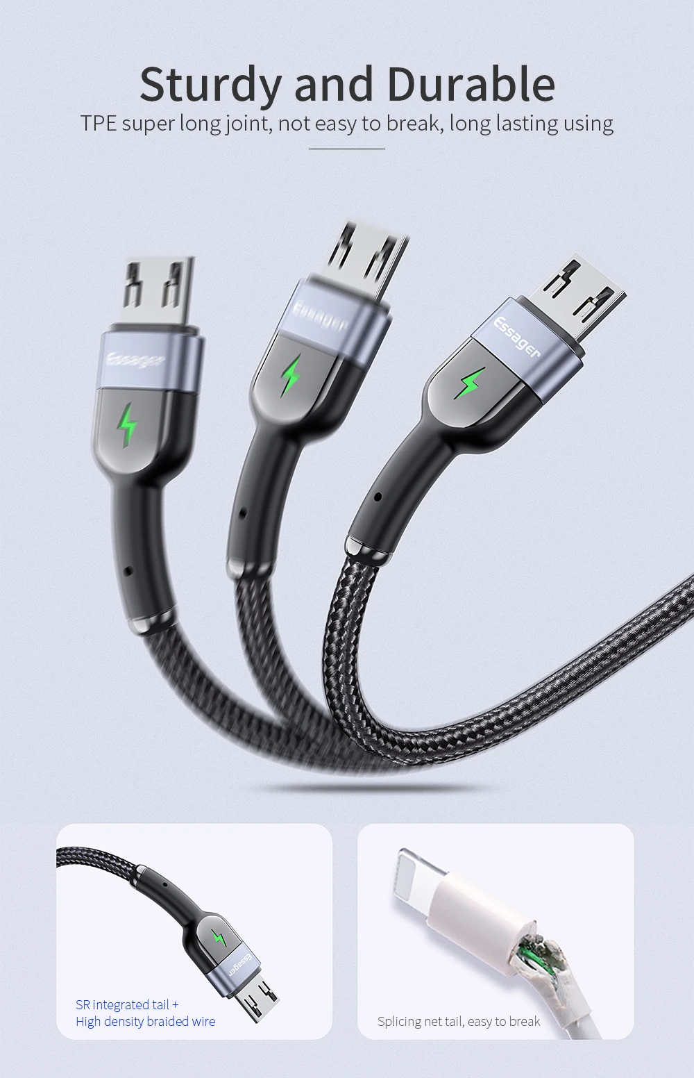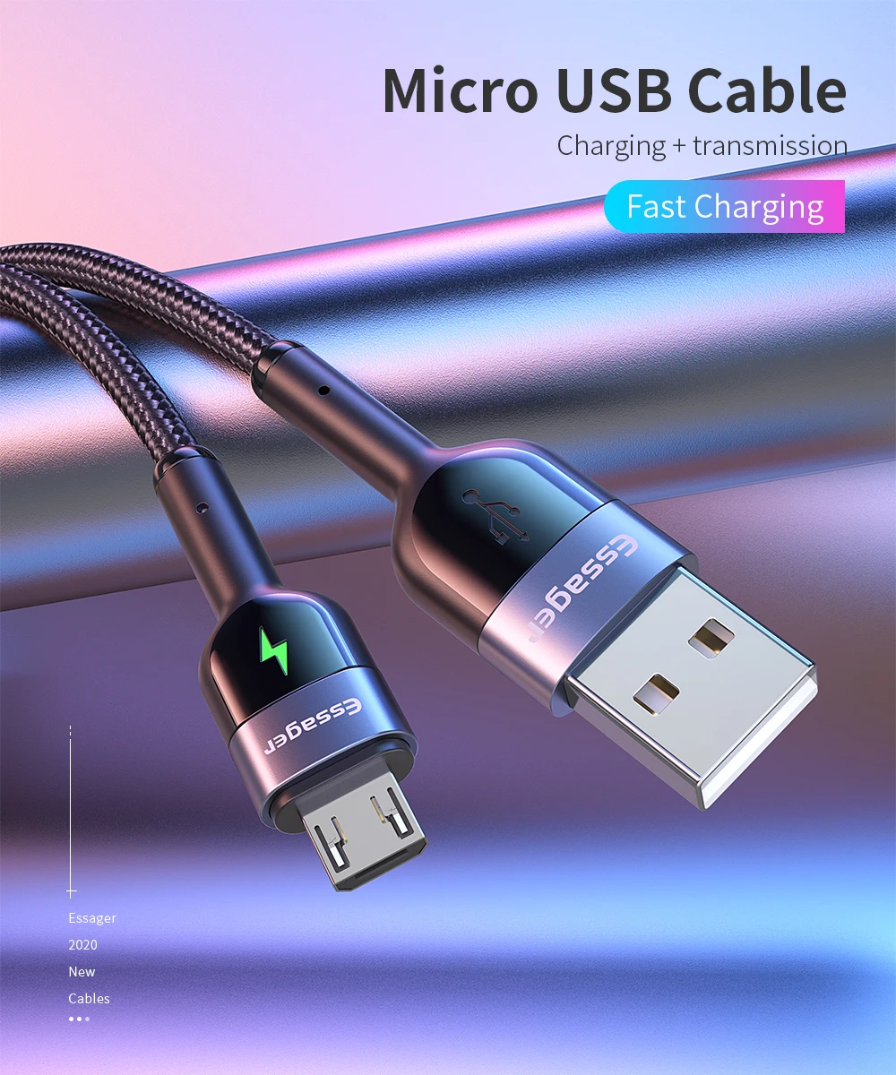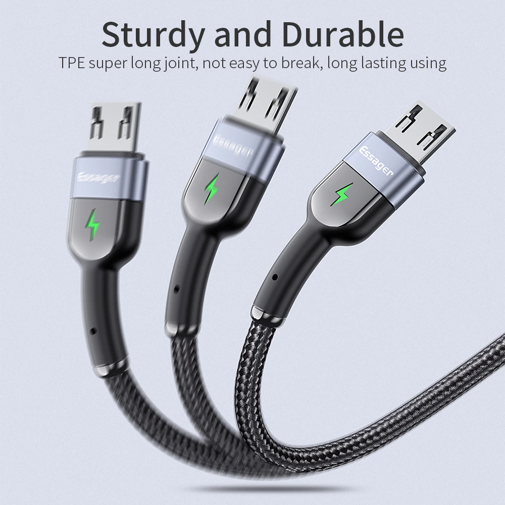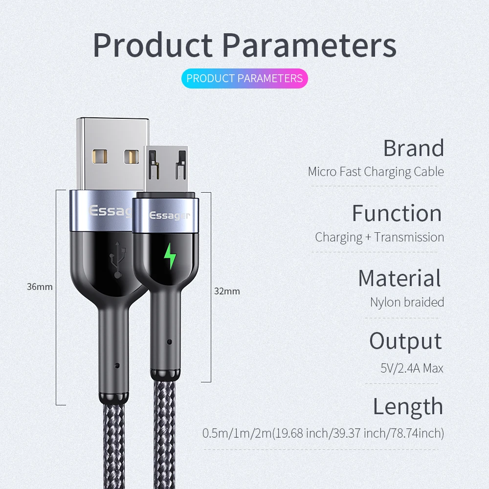 Comprar Essager-Cable Microusb LED de carga rápida, cargador para Samsung, Xiaomi, Redmi, Android, Cable de datos para teléfono móvil