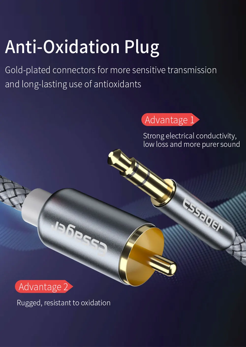Comprar Essager Cable RCA conector de 3,5mm a 2 RCA Cable de Audio auxiliar 3,5mm a 2RCA adaptador macho divisor para TV Box apple tv Cable de altavoz