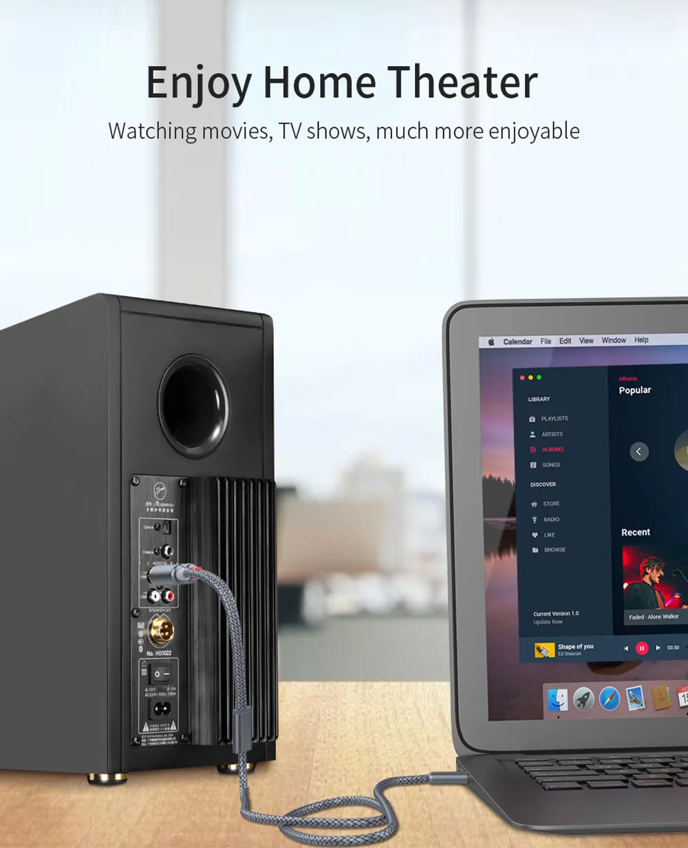 El extremo de 3,5 mm se conecta a su teléfono, tableta, computadora portátil y otros reproductores de música.