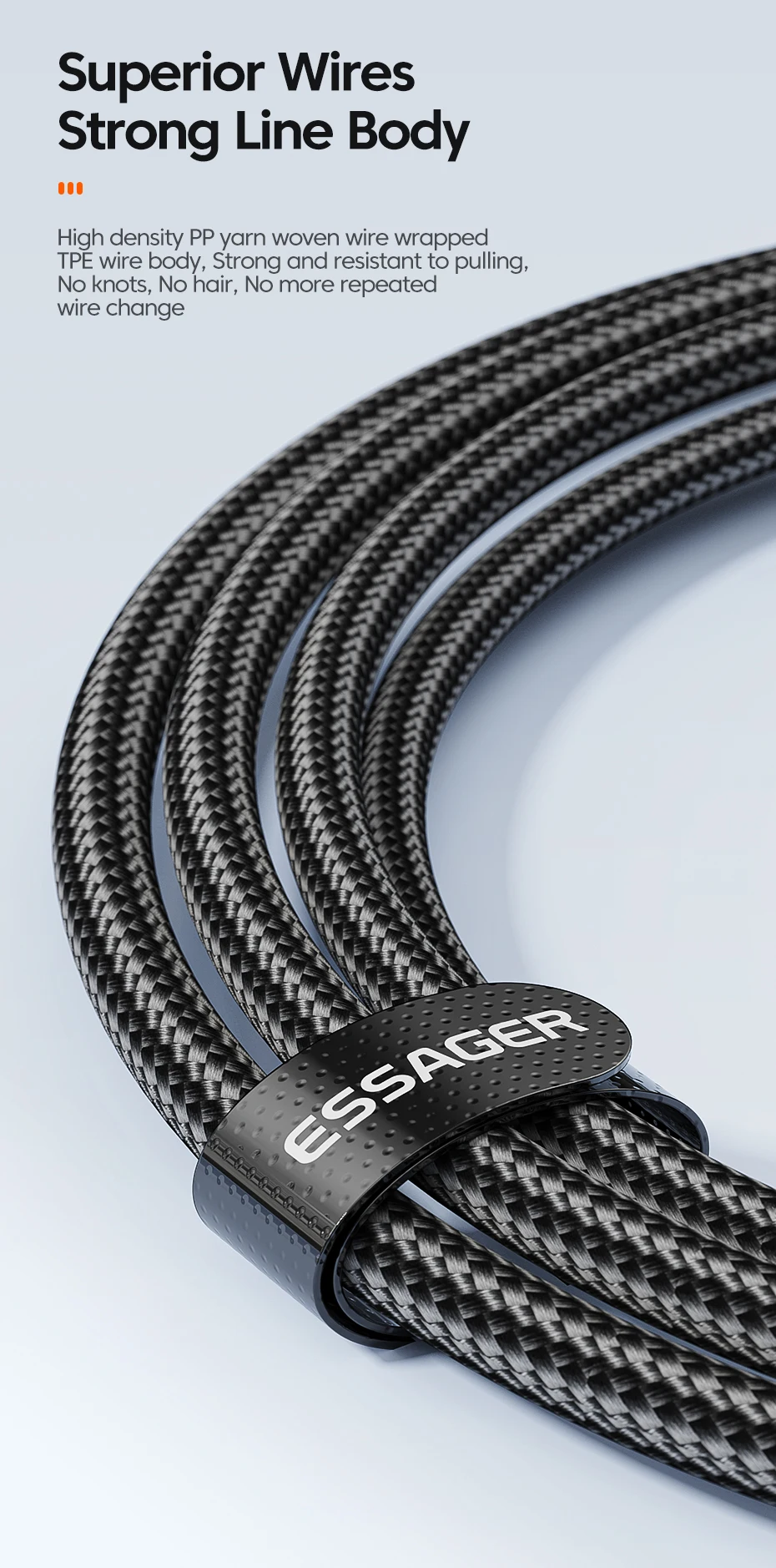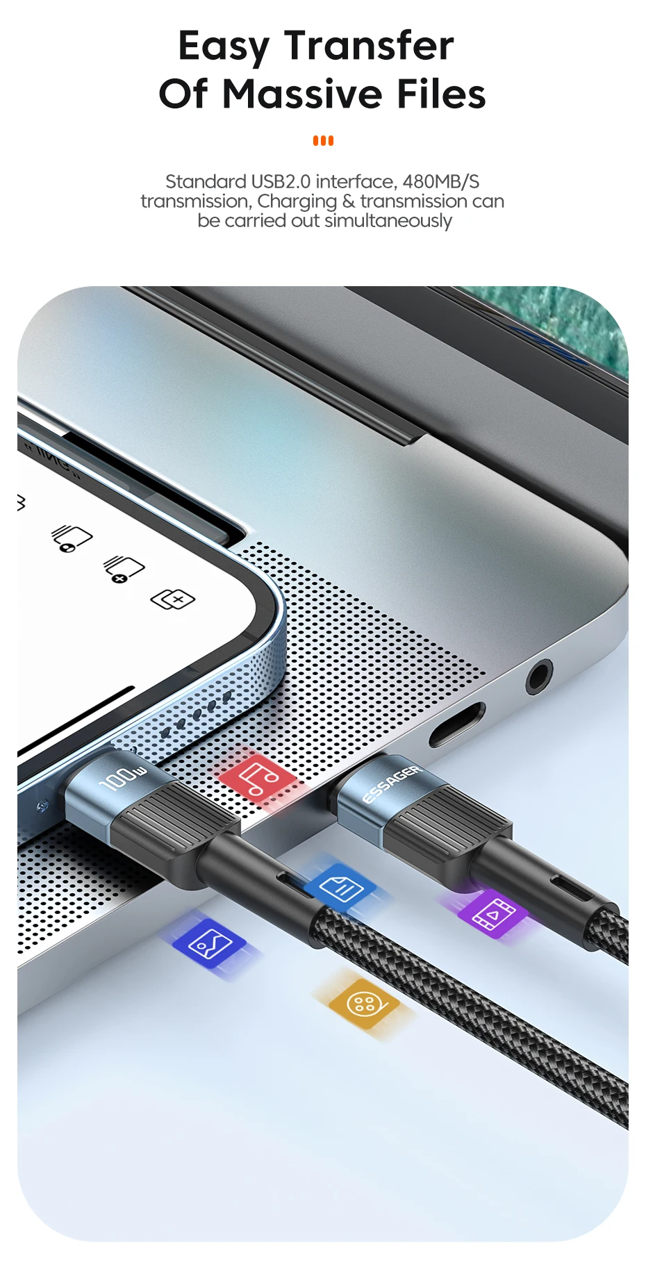 【Seguro e inteligente】--El cable Essager PD 100W/60W tiene un chip inteligente que puede proteger su carga rápida más segura mediante ajuste automático de potencia, claramente una mejor opción por motivos de seguridad.