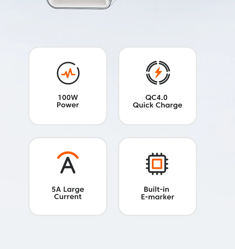 【Amplia compatibilidad】--Con una potente salida de 100 W/60 W, carga una gama aún más amplia de dispositivos que esos cables de 20 W, incluidos todos los teléfonos y tabletas USB C, prácticamente cualquier computadora portátil y más.