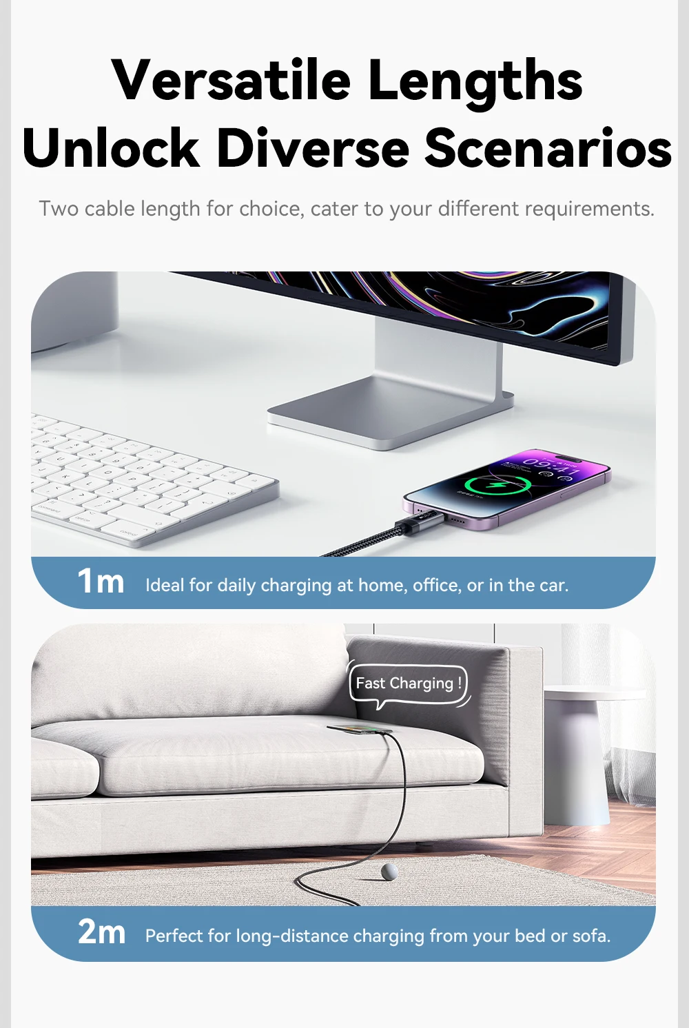 Conector USB tipo C Tipo de cable Tip-C a Tip-C. Dispositivos compatibles: Samsung, Xiaomi, LG, Motorola, Smartphone, iPhone, iOS, Android, Tablet. Características especiales: Alta velocidad, carga rápida, carga turbo, trenzado, transferencia de datos. Adaptación de control remoto Carga. ⚡ Carga Turbo: Experimente la velocidad de carga con nuestro cable Type-C, asegurando energía en cuestión de minutos, ideal para aquellos que están en movimiento constante. 📏 2 metros de longitud: Con 2 metros, puedes usar tu dispositivo cómodamente mientras lo cargas, ya sea en el sofá, cama o oficina, sin preocuparte por la distancia. 🔄 Compatibilidad Universal: Diseñado para funcionar perfectamente con iPhone 15, Android y otros dispositivos USB-C, adaptándose a tus necesidades de carga. 💪 Fortificado y Duradero: Hecho de nylon trenzado, nuestro cable es resistente al desgaste, brindando durabilidad y confiabilidad para el uso diario sin preocupaciones.