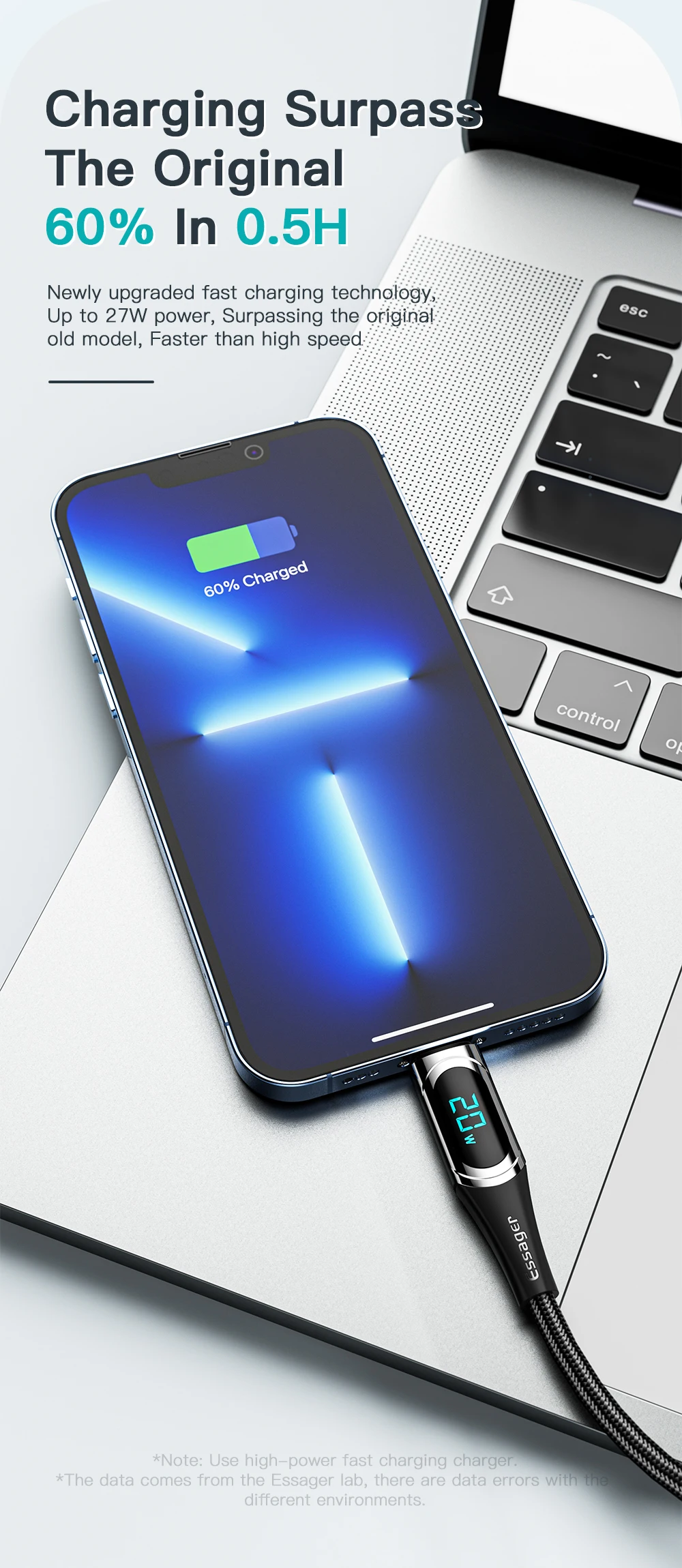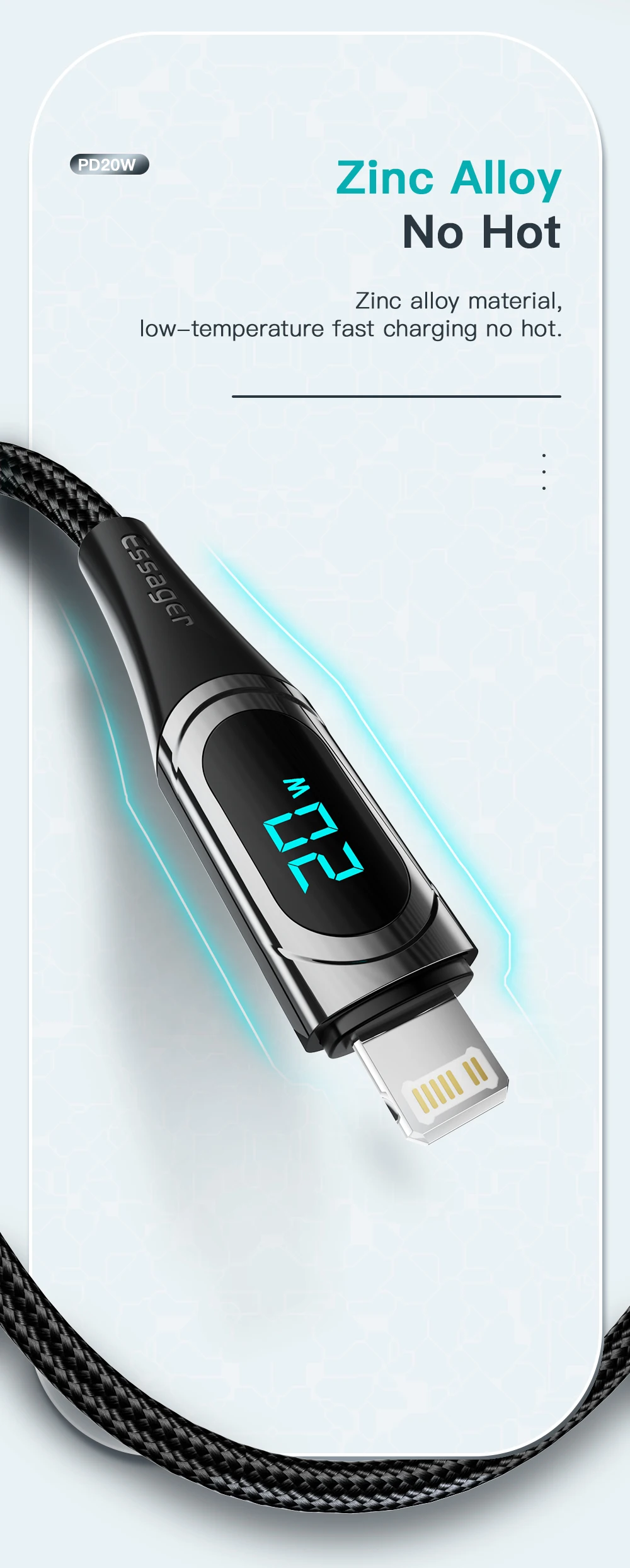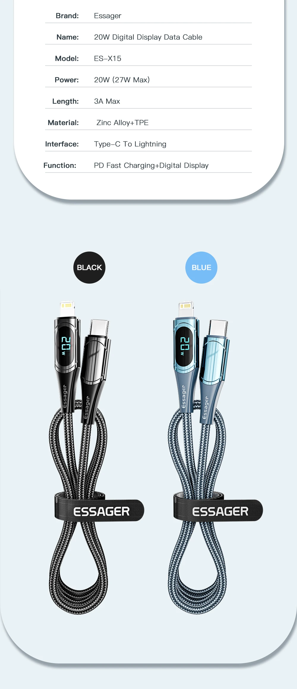 Comprar ESSAGER Cable USB C PD 20W Cable cargador USB tipo C para iPhone 14 13 12 11 XR Pro Max 3A Cable de carga rápida Cable tipo C
