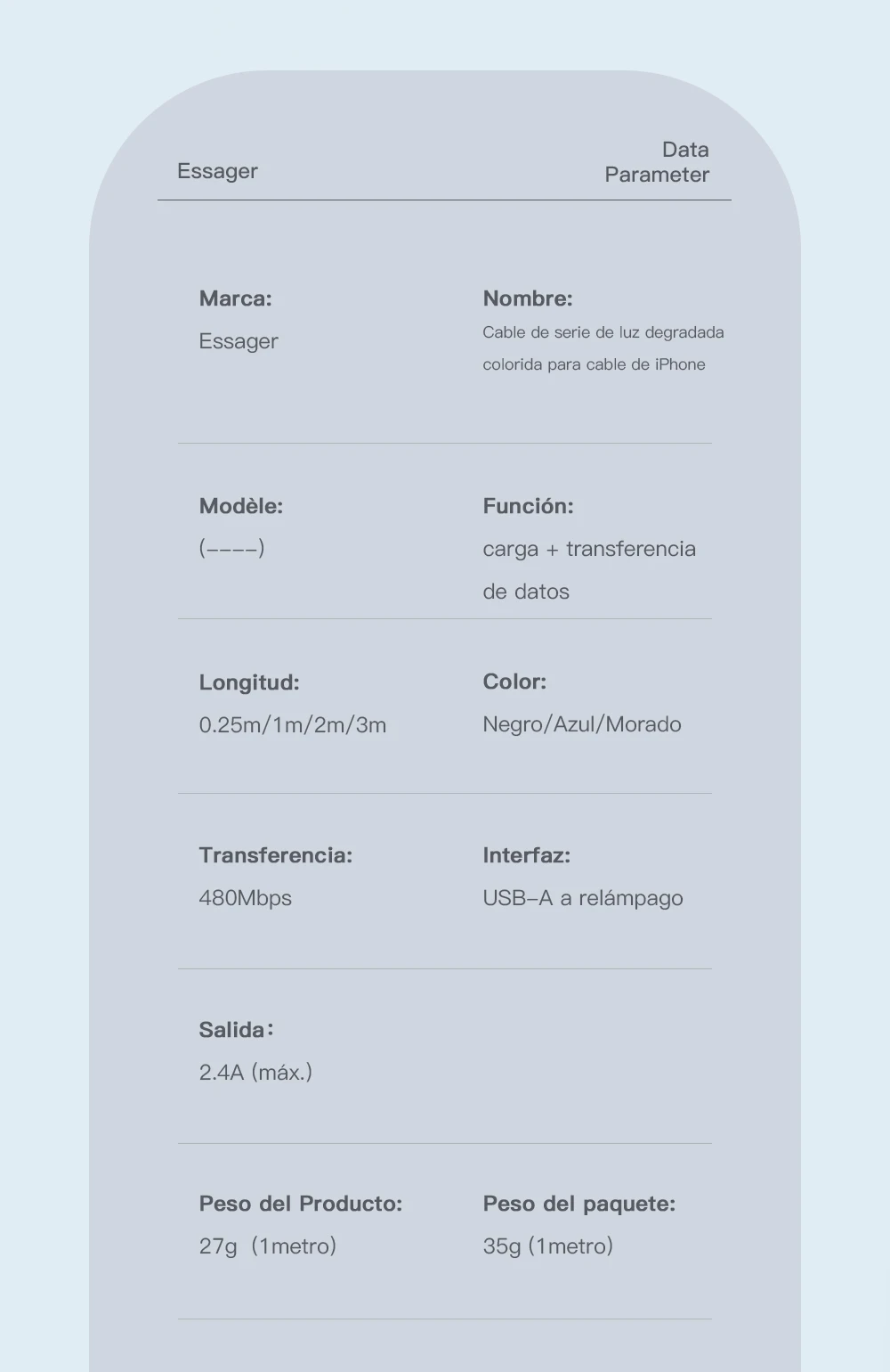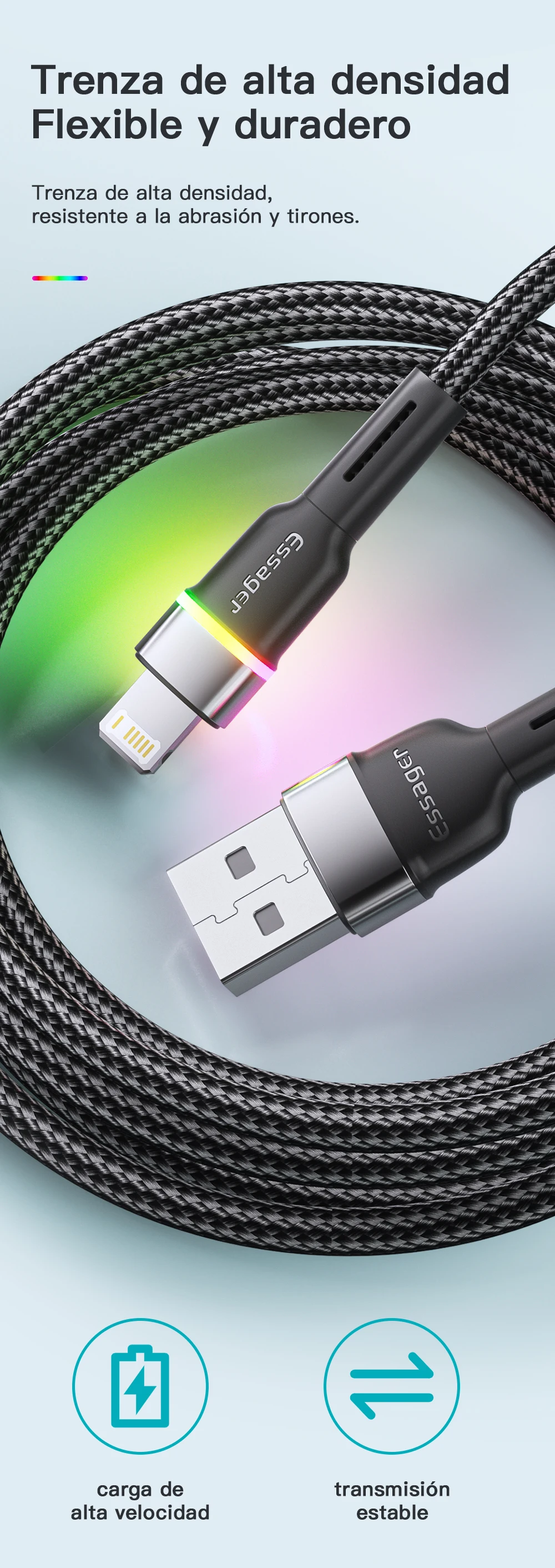 Comprar Essager-Cable USB LED de carga rápida para iPhone, Cable de datos de teléfono móvil para iPad, 14, 13, 12, 11 Pro, Xs, Max, X, Xr