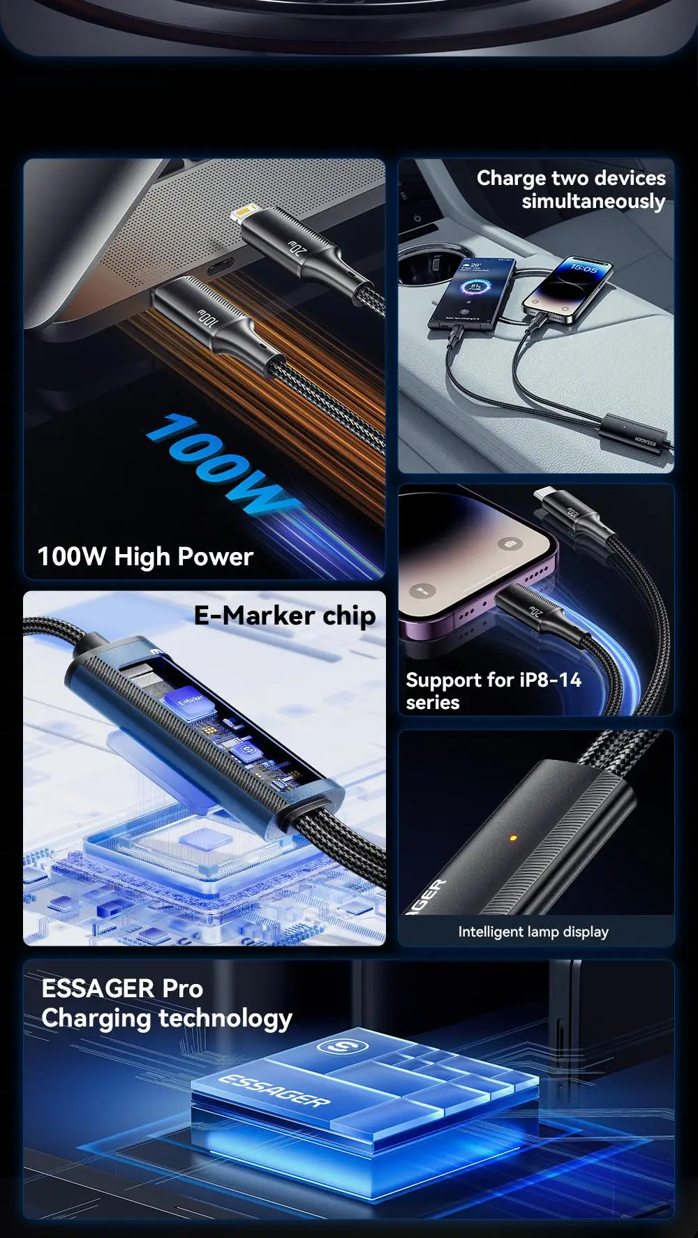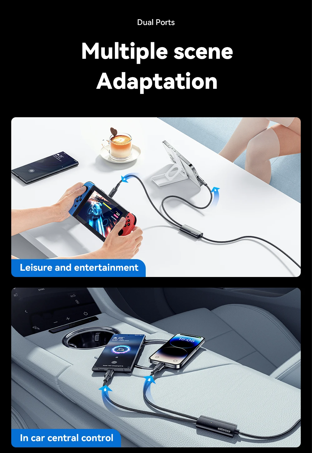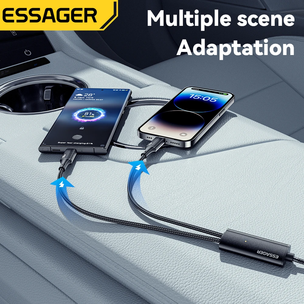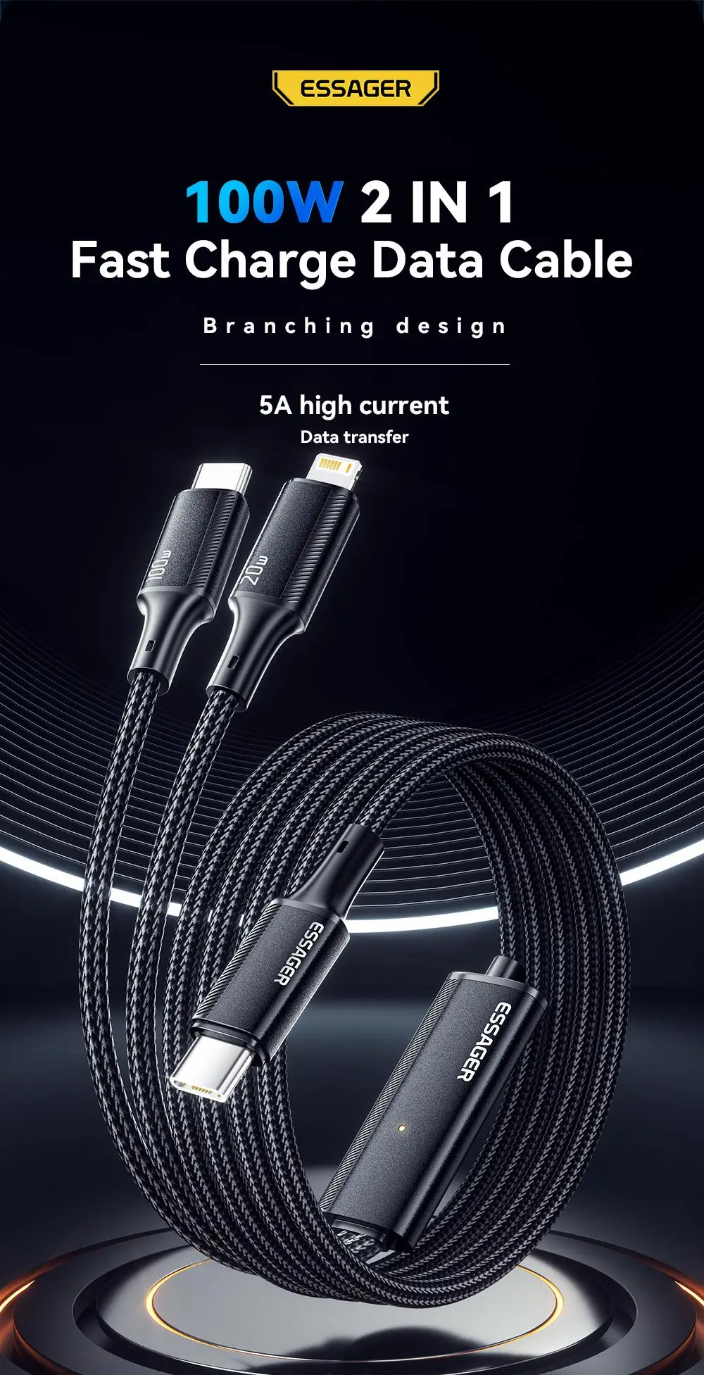Comprar Essager-Cable USB tipo C de 100W, Cable de carga rápida 2 en 1 para Macbook, iPhone, Samsung, Xiaomi