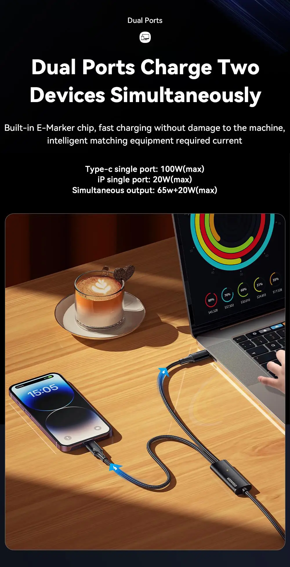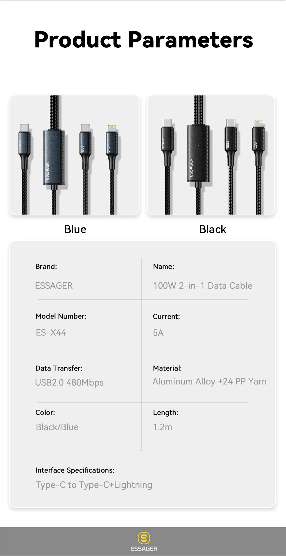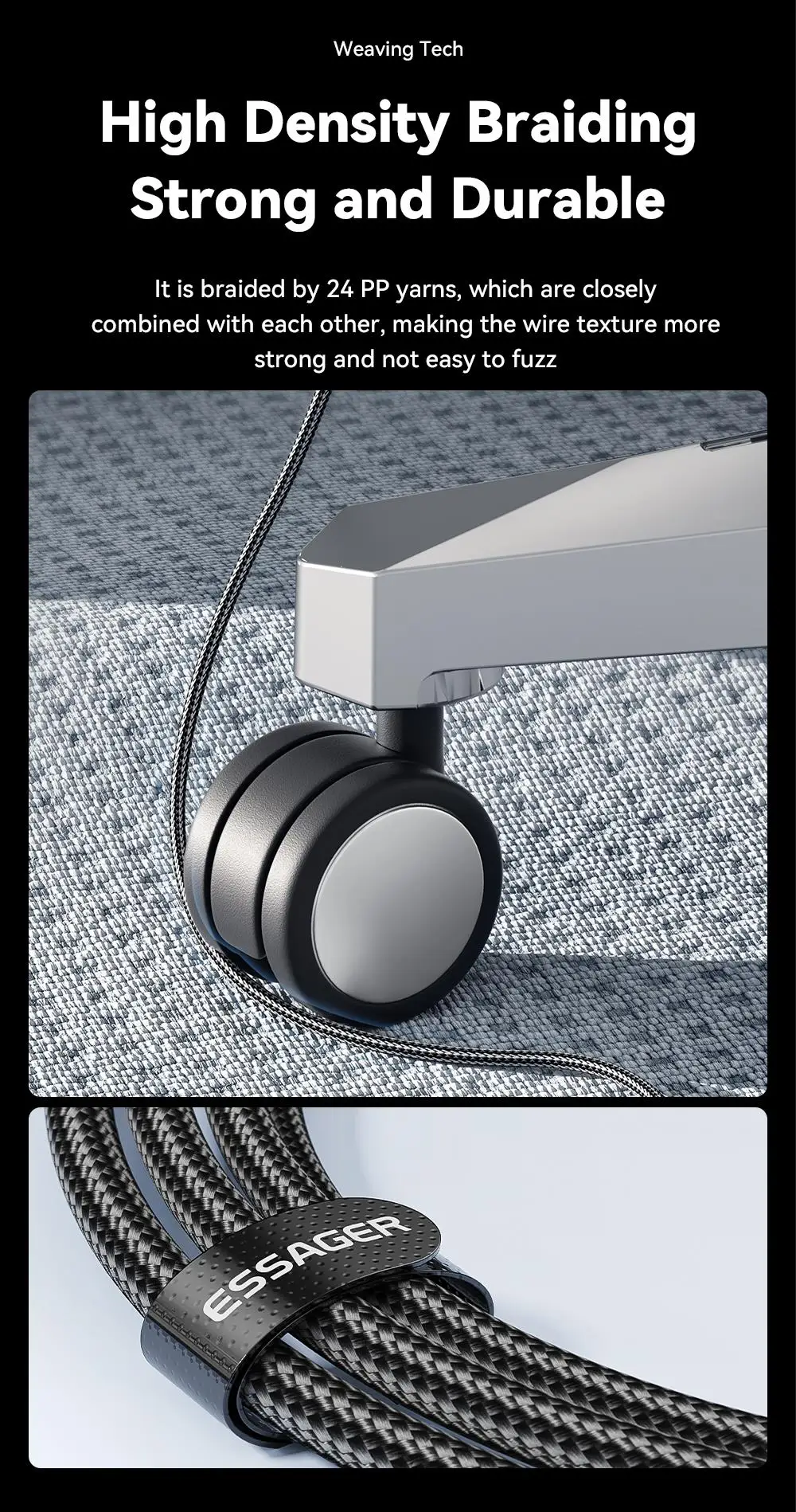 Comprar Essager-Cable USB tipo C de 100W, Cable de carga rápida 2 en 1 para Macbook, iPhone, Samsung, Xiaomi