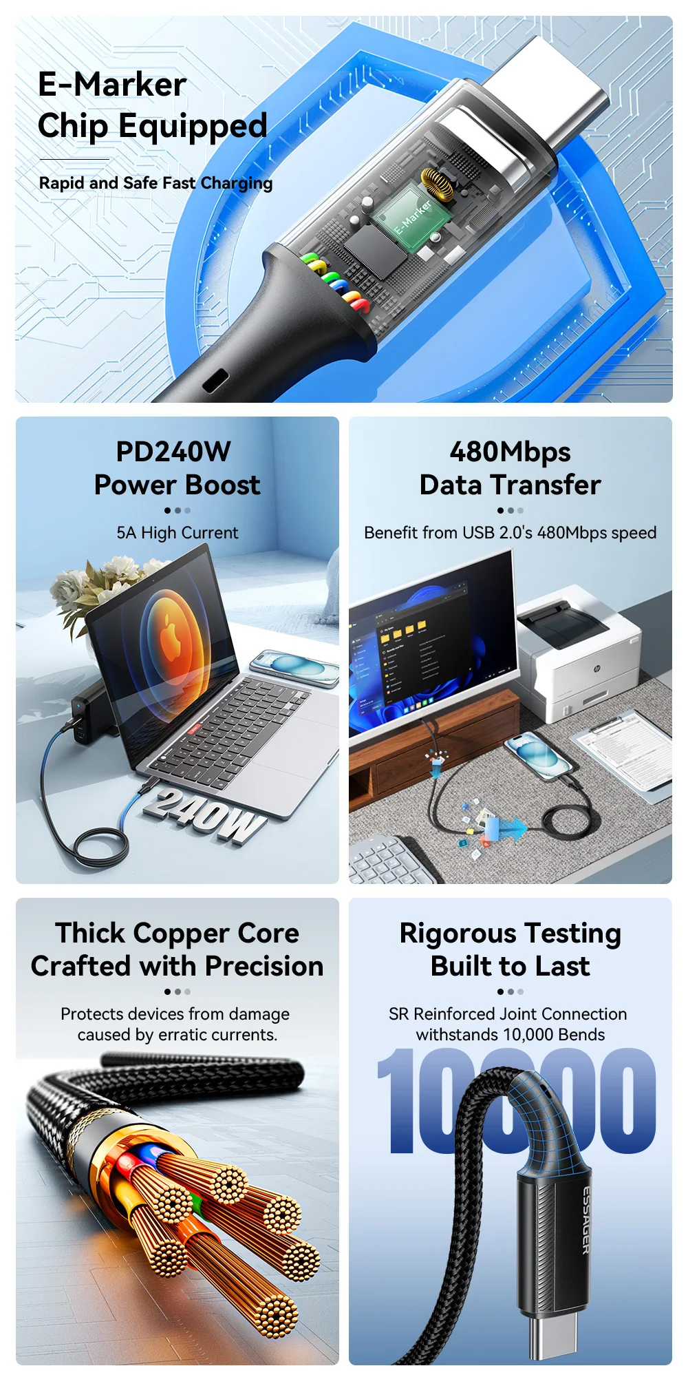 • Conector tipo C: El conector tipo C en ambos extremos del cable garantiza la compatibilidad con una amplia gama de dispositivos.