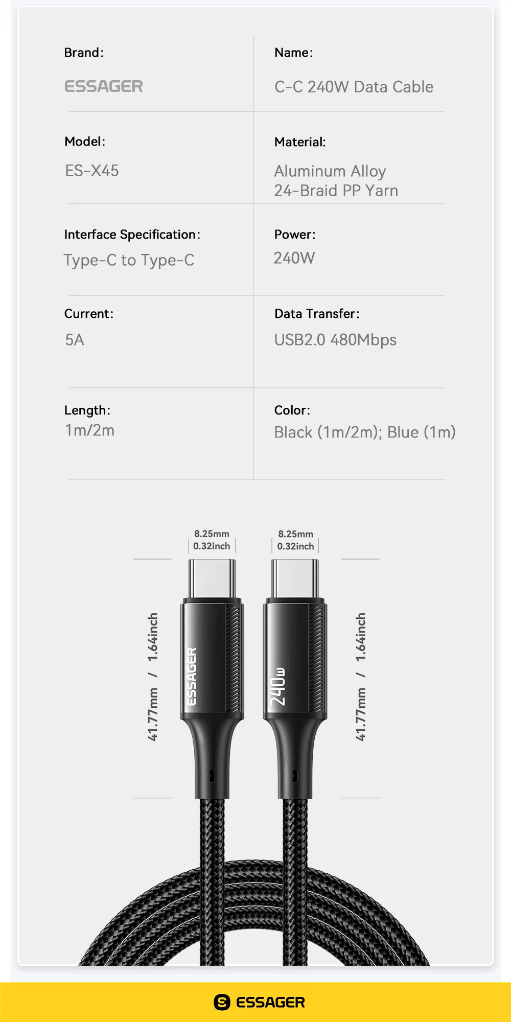 • Carga rápida: Con una corriente máxima de 5A, este cable garantiza una carga rápida para su dispositivo.