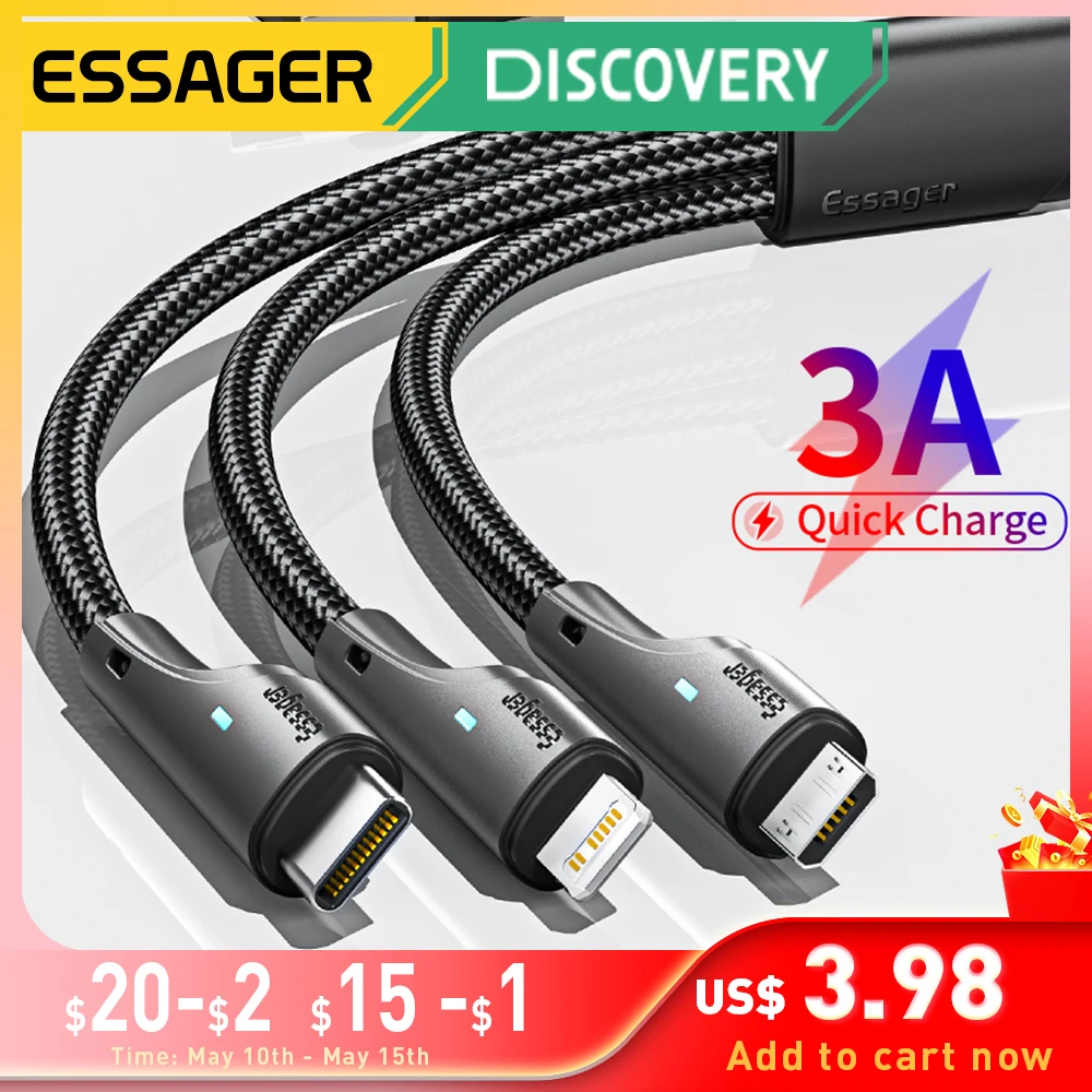 Comprar Essager-Cable USB tipo C 3 en 1, Cable Micro USB para iPhone 14, 13, 12, X Pro, Max, Samsung, Xiaomi, PCPO, Cable de datos para teléfono móvil