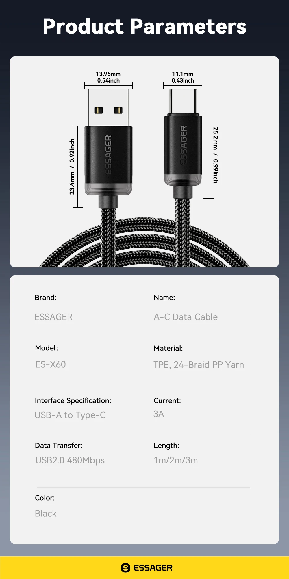 Comprar Essager-Cable USB tipo C 3A, Cables de carga rápida USB A a tipo C para iPone 15, Samsung, Xiaomi, Cable cargador de datos para teléfono móvil