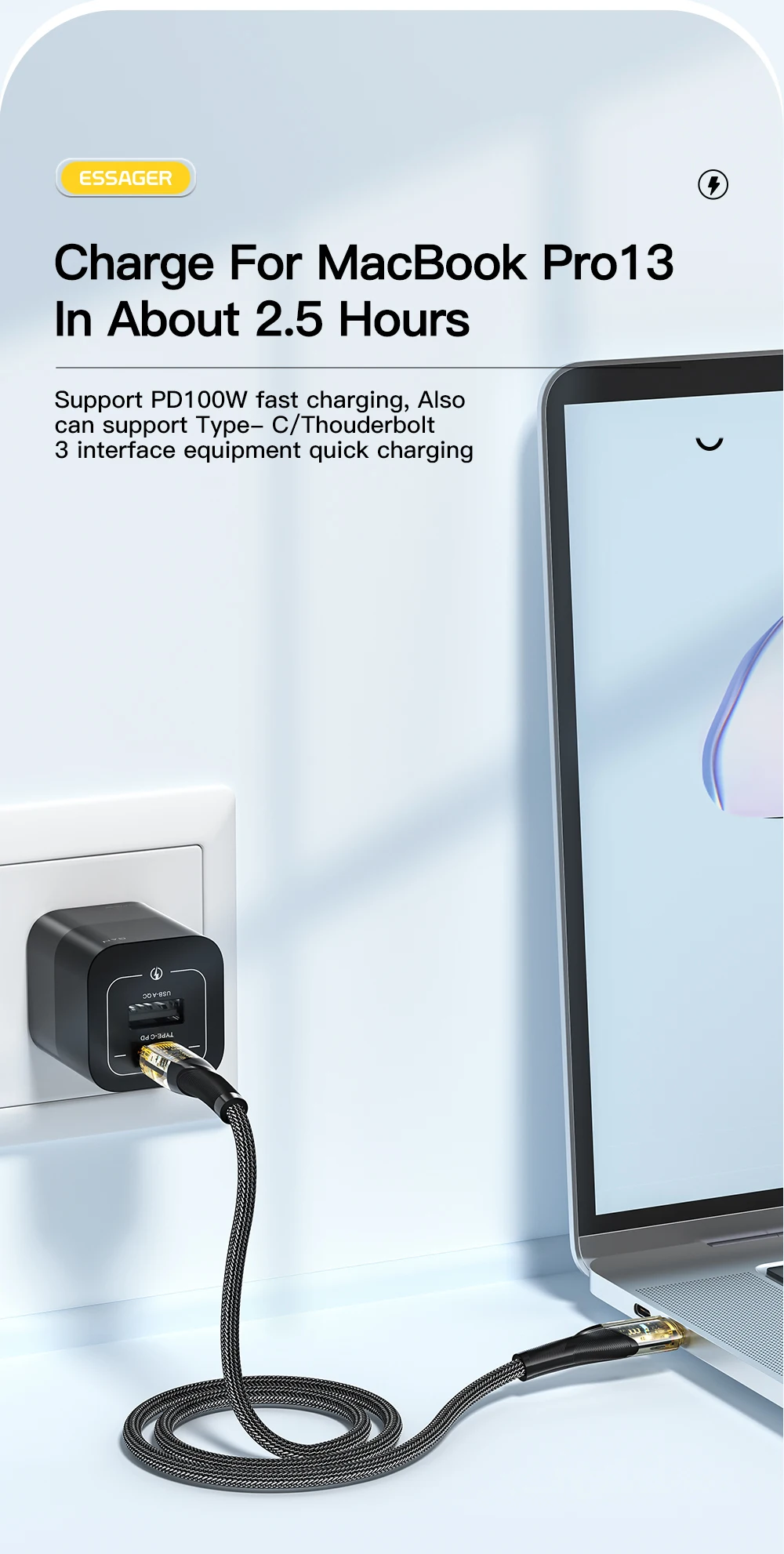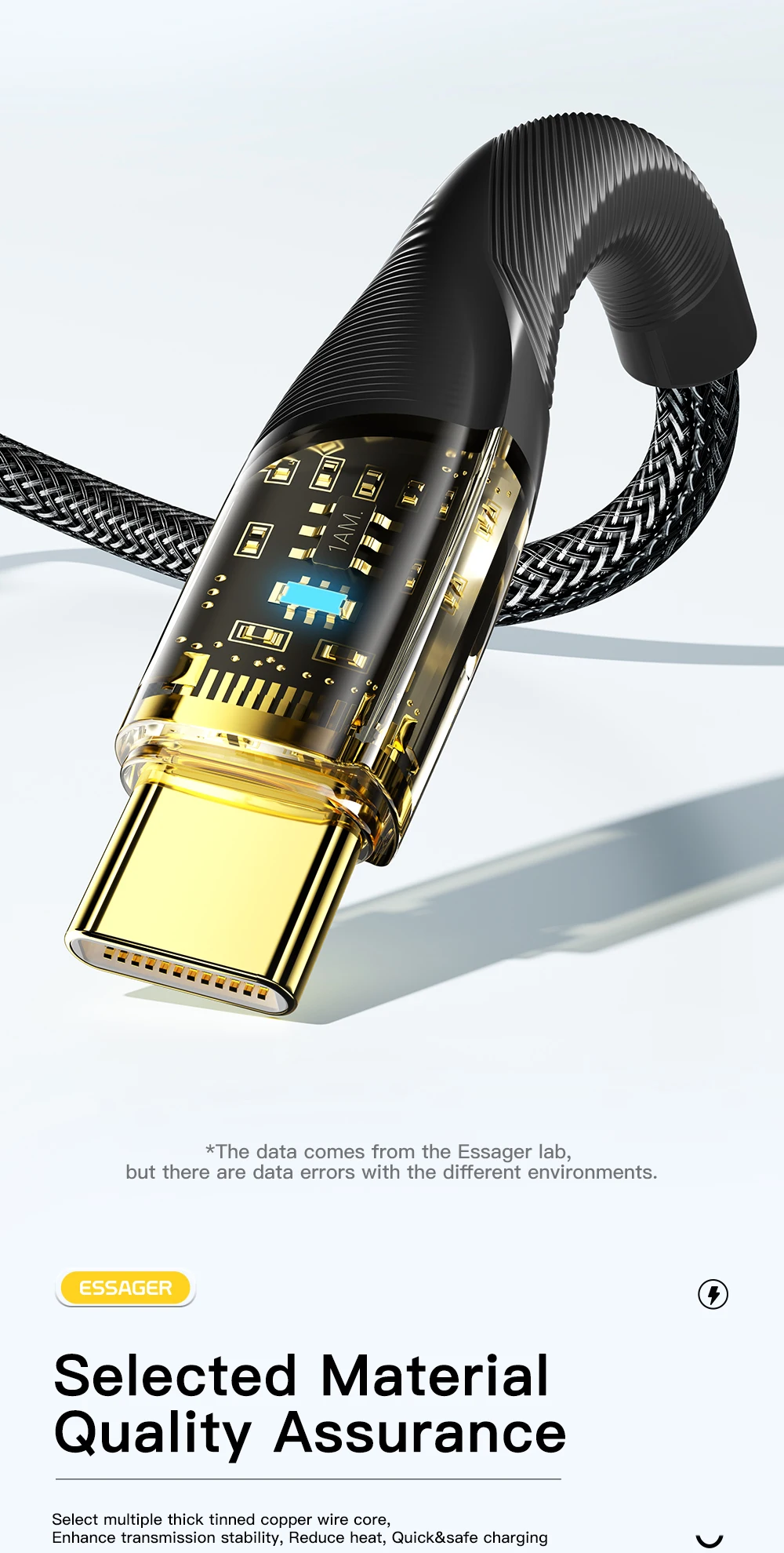 Comprar Essager-Cable USB tipo C de carga rápida para Macbook, iPad, Samsung, Huawei, Xiaomi POCO 5A, 100W, USB-C