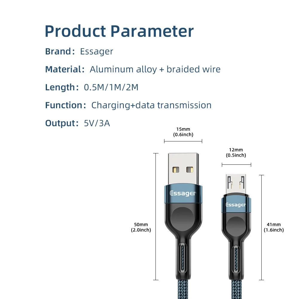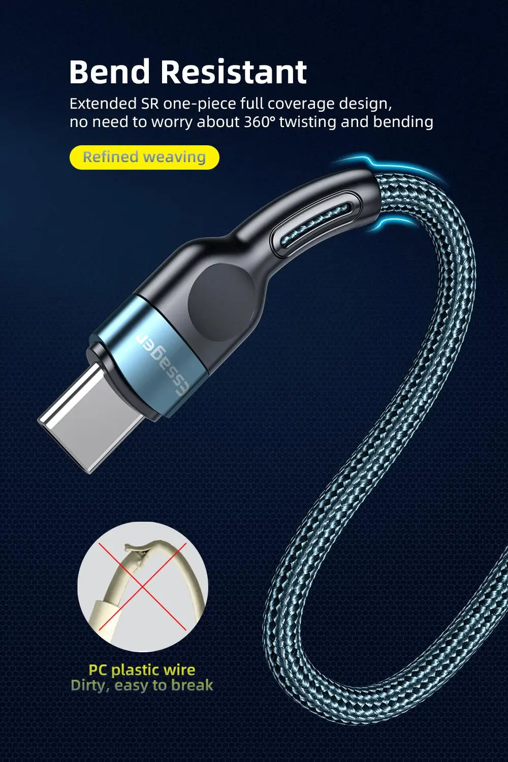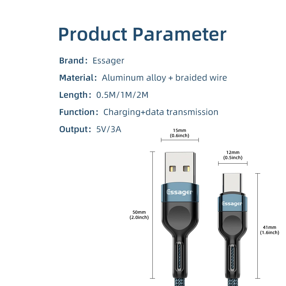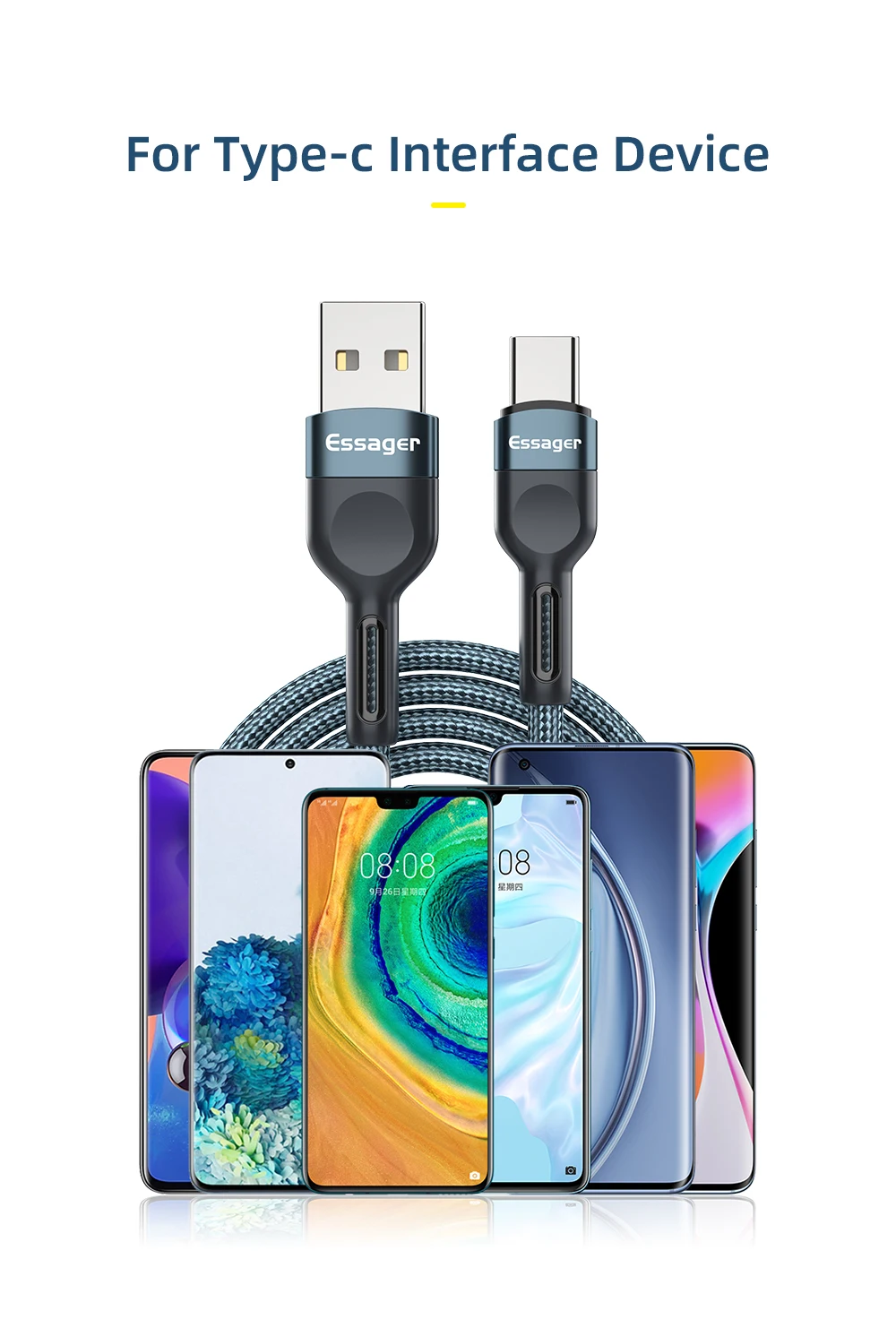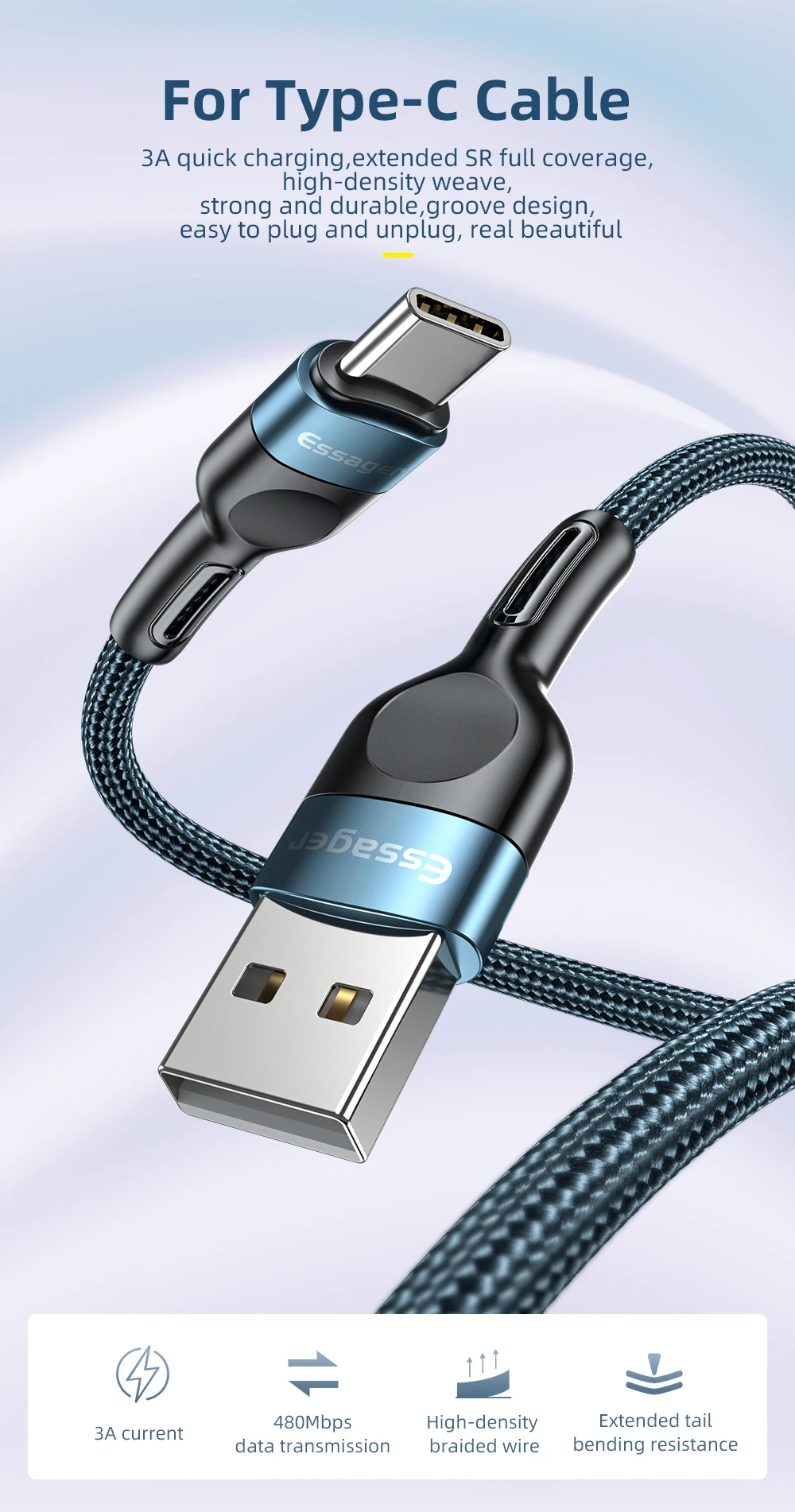 Comprar Essager-Cable USB tipo C de carga rápida para móvil, Cable de datos Microusb para Samsung, Xiaomi 3A, 2m
