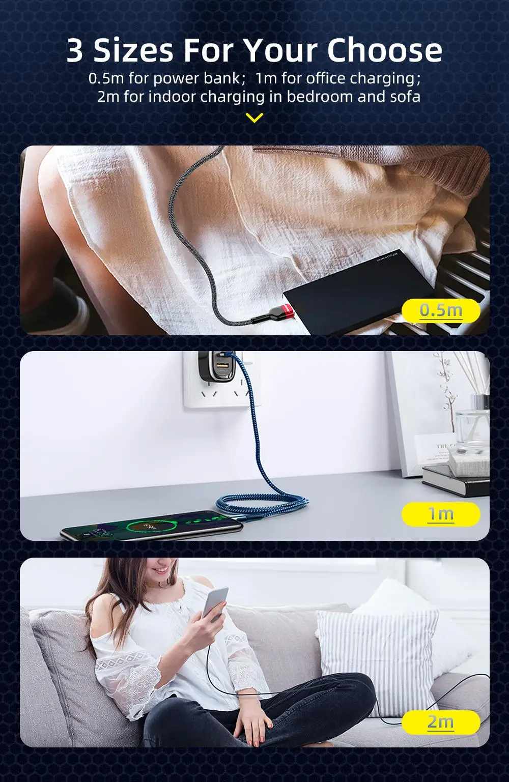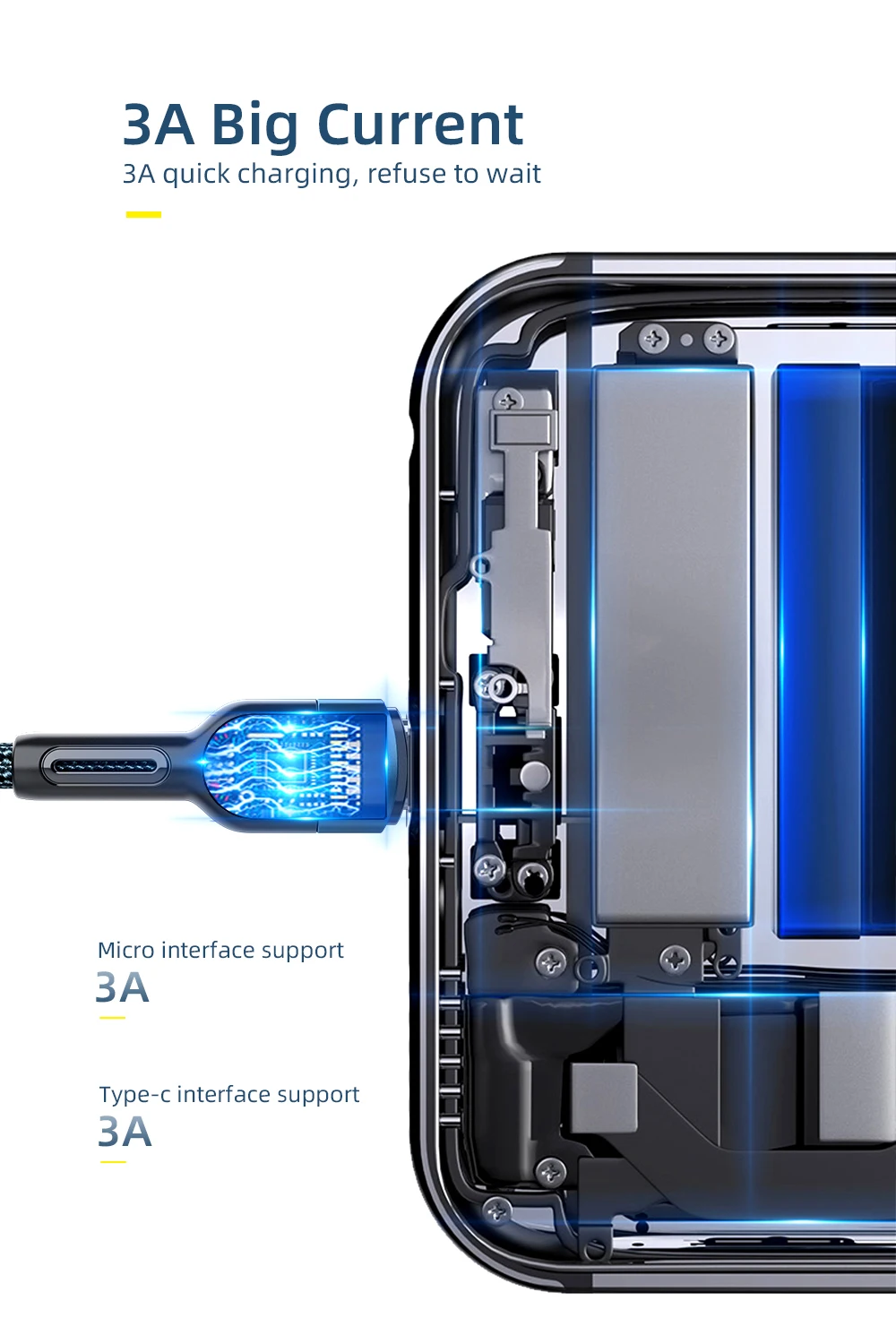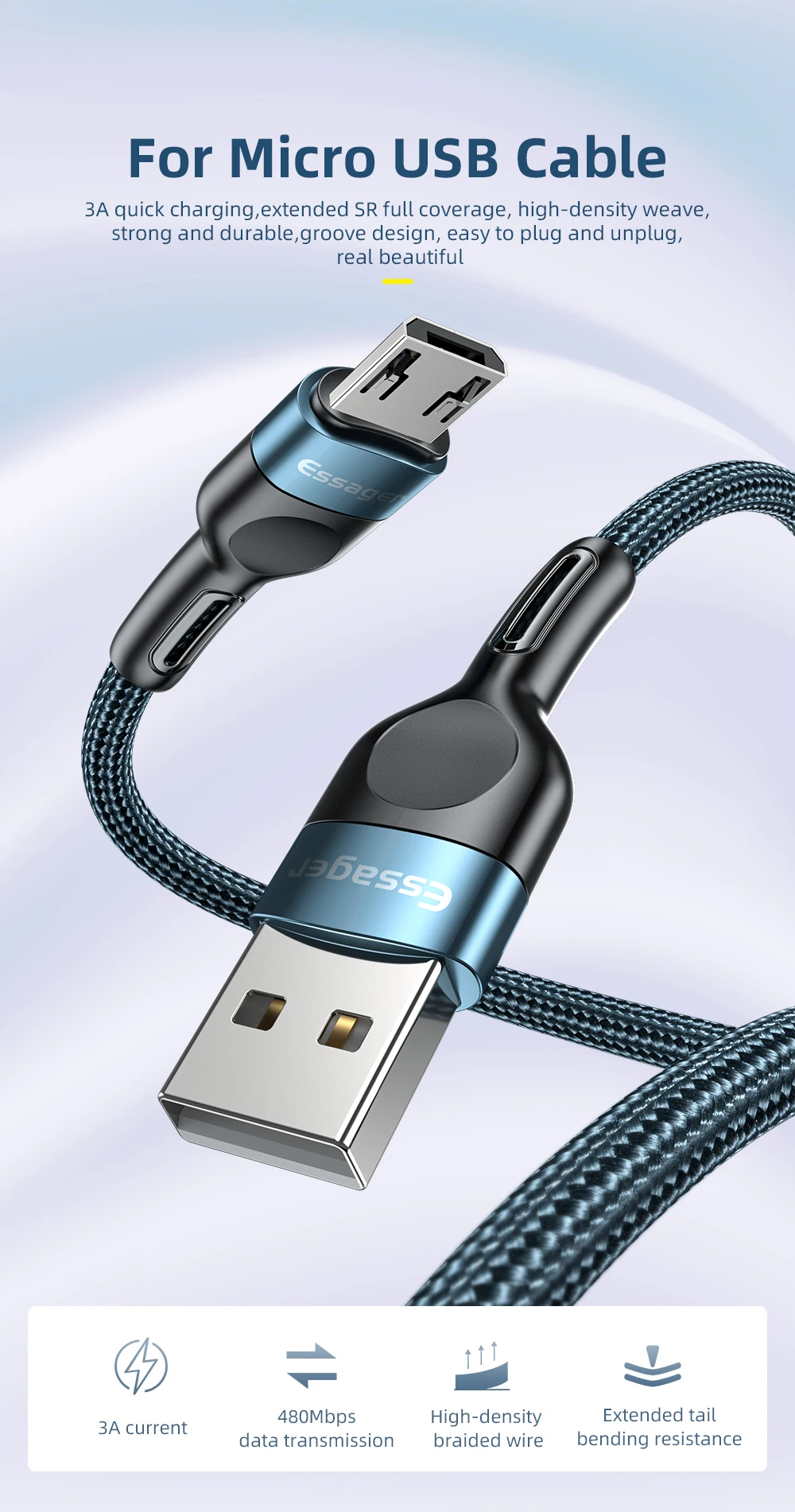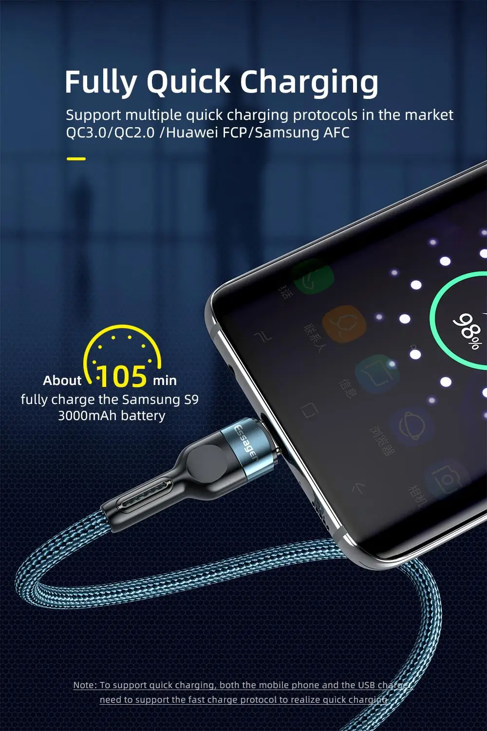 Comprar Essager-Cable USB tipo C de carga rápida para móvil, Cable de datos Microusb para Samsung, Xiaomi 3A, 2m