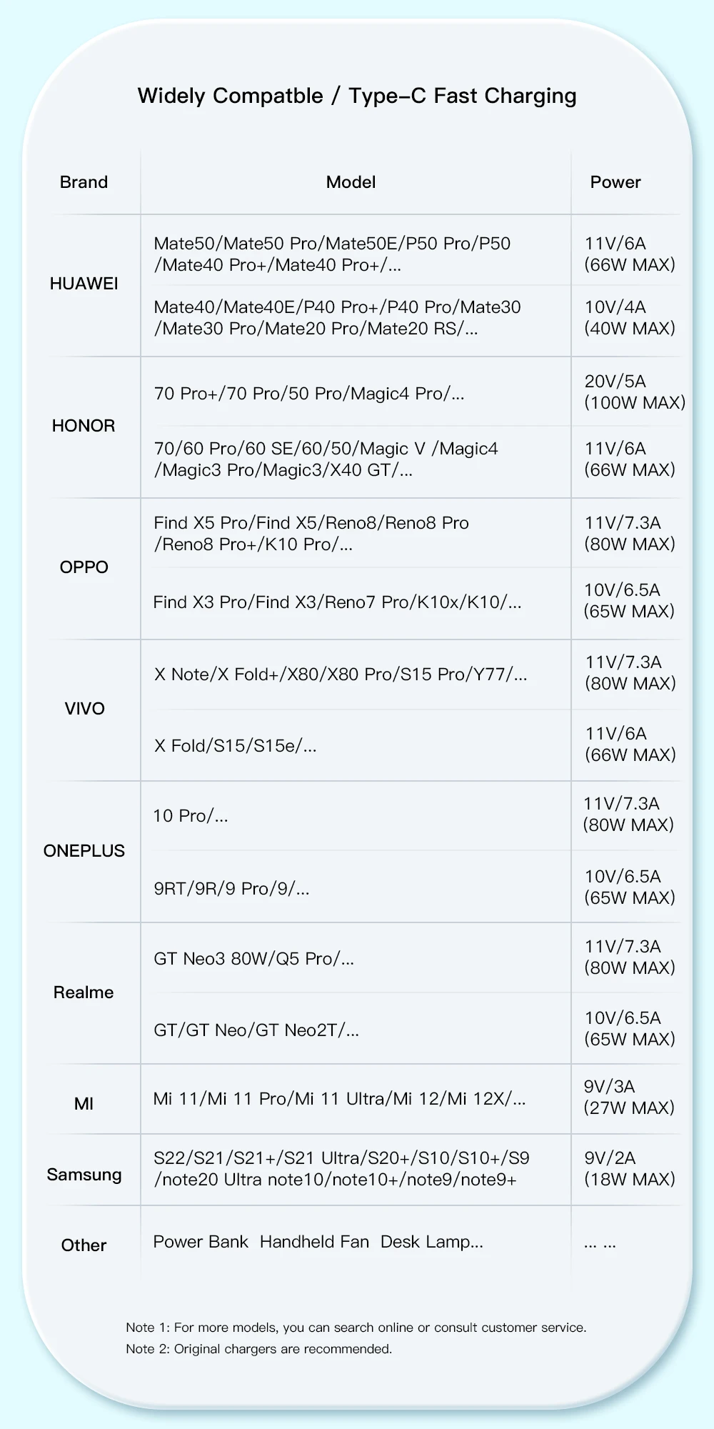 Para teléfonos móviles de la serie OPPO / Oneplus / Realme que admiten el protocolo de carga rápida VOOC.