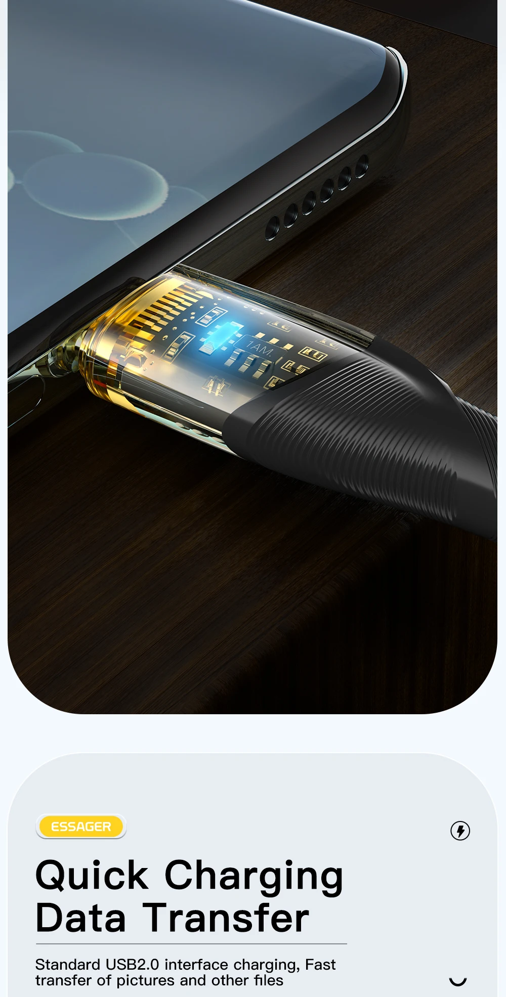 Comprar Essager-Cable USB tipo C de carga rápida para móvil, Cable de datos para cargador de USB-C, 7A, PD, 100W, para Huawei P50, P40, OPPO K10, Honor, Oneplus, Poco F3