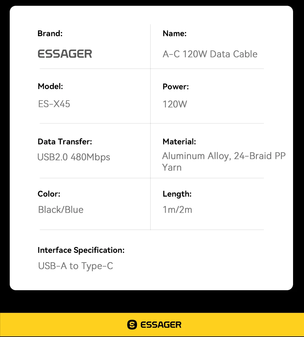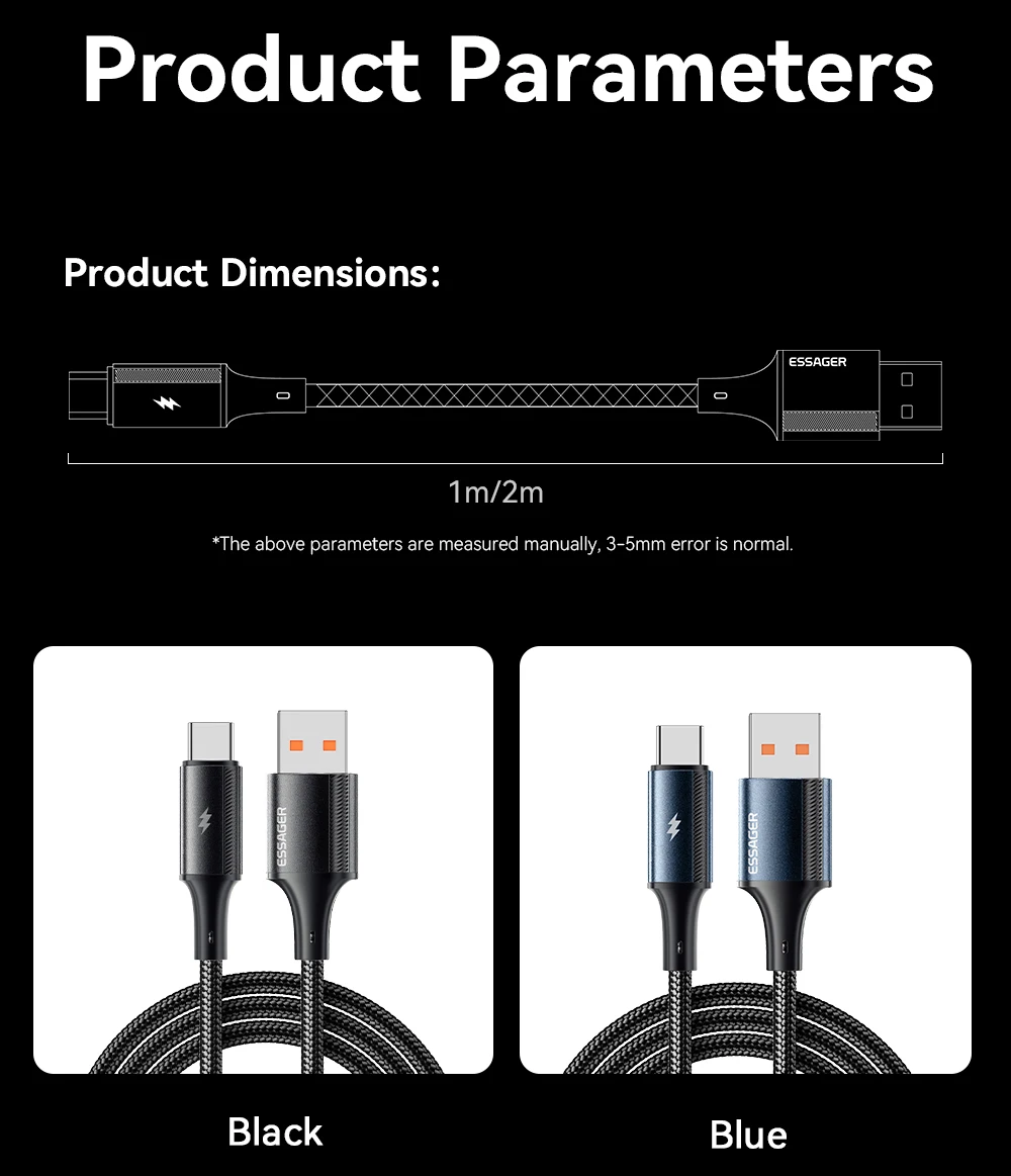 Comprar Essager-Cable USB tipo C de carga súper rápida, 120W, para Poco F4 GT, Xiaomi 1413, 12 Pro, Redmi K70, K60, K50 Pro, negro, Shark5, 5RS, 5 Por