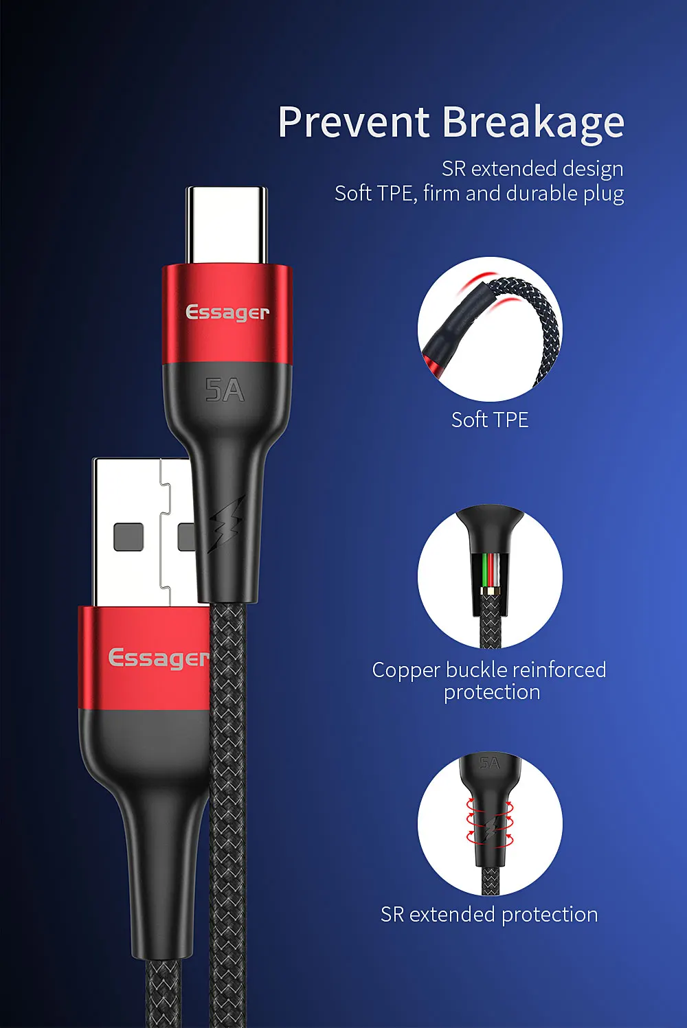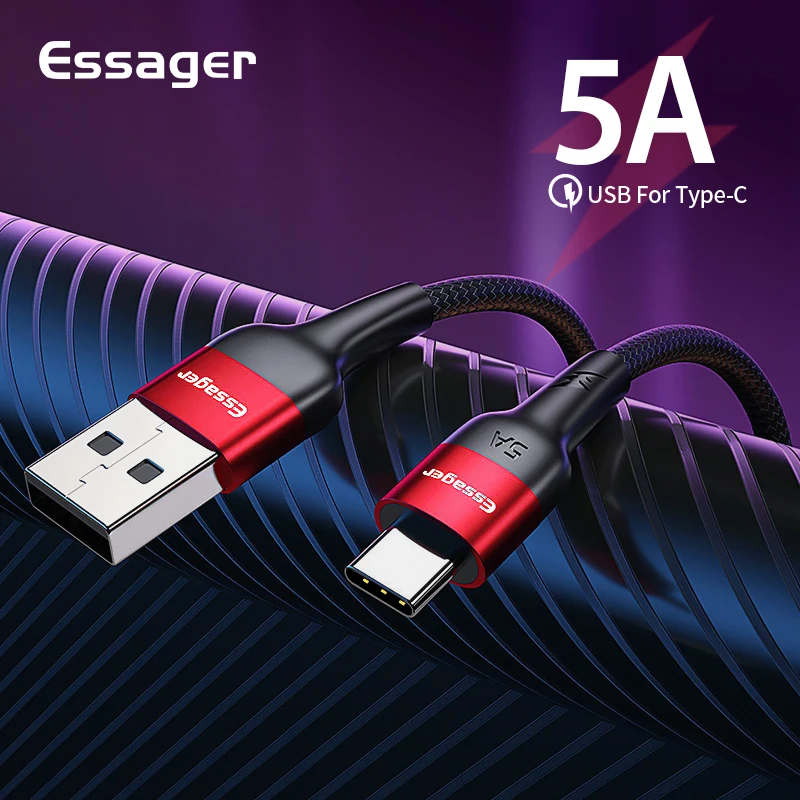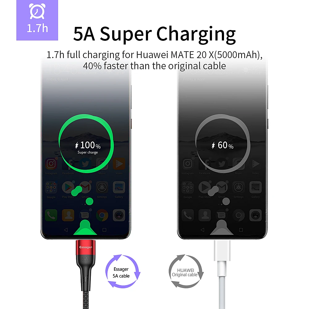 Comprar Essager-Cable USB tipo C de carga súper rápida para móvil, Cable de datos para Huawei P30, P20 Pro, cargador tipo C de USB-C, 5A
