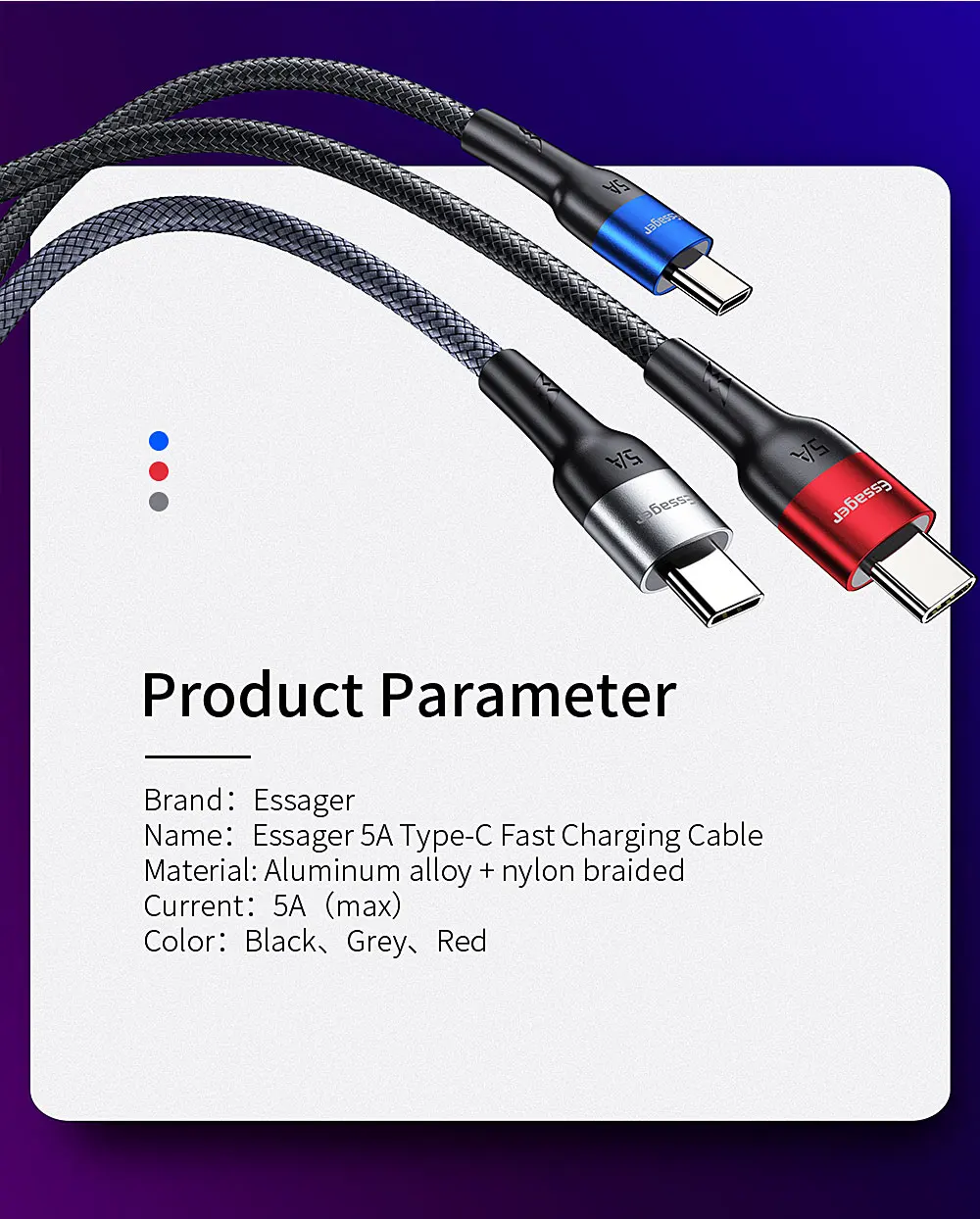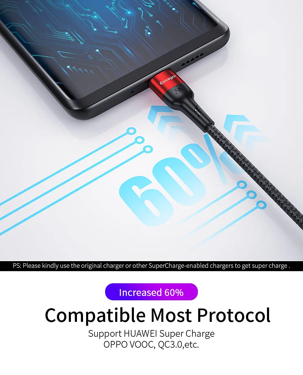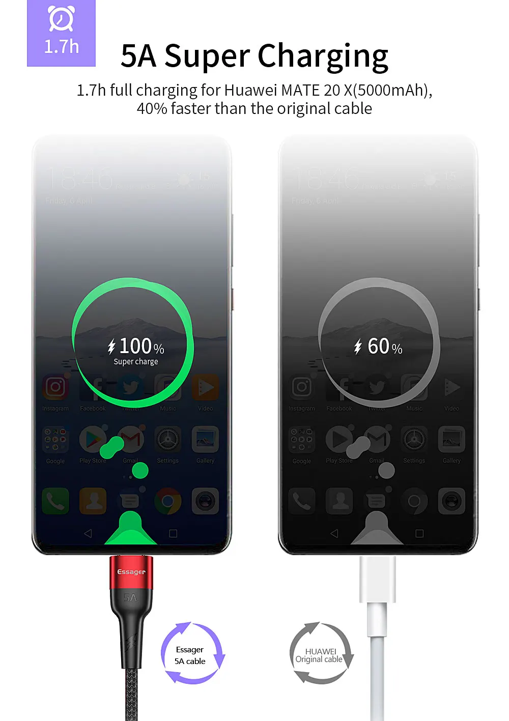 Comprar Essager-Cable USB tipo C de carga súper rápida para móvil, Cable de datos para Huawei P30, P20 Pro, cargador tipo C de USB-C, 5A