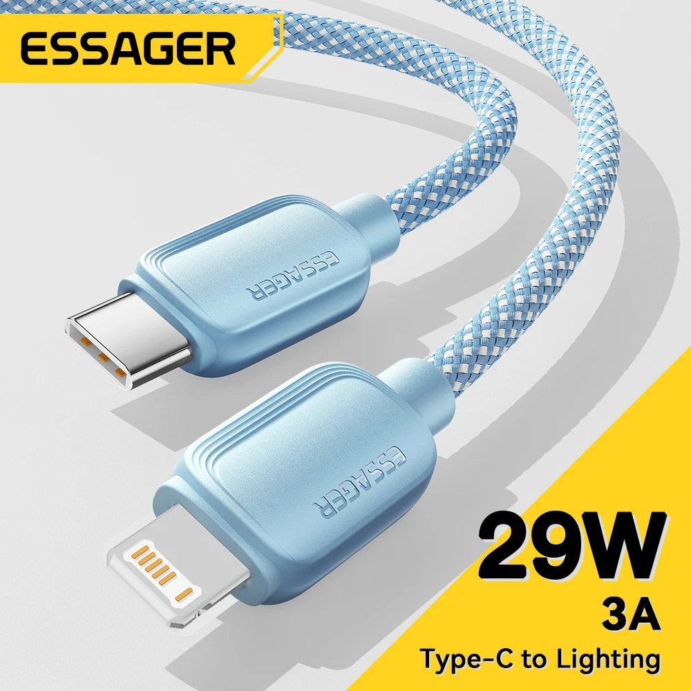 Comprar Essager-Cable USB tipo C para iPhone 14, 13, 12, 11 Pro Max, XS, PD, cargador rápido de 20W, Cable Lightning de 29W para iPad y Macbook