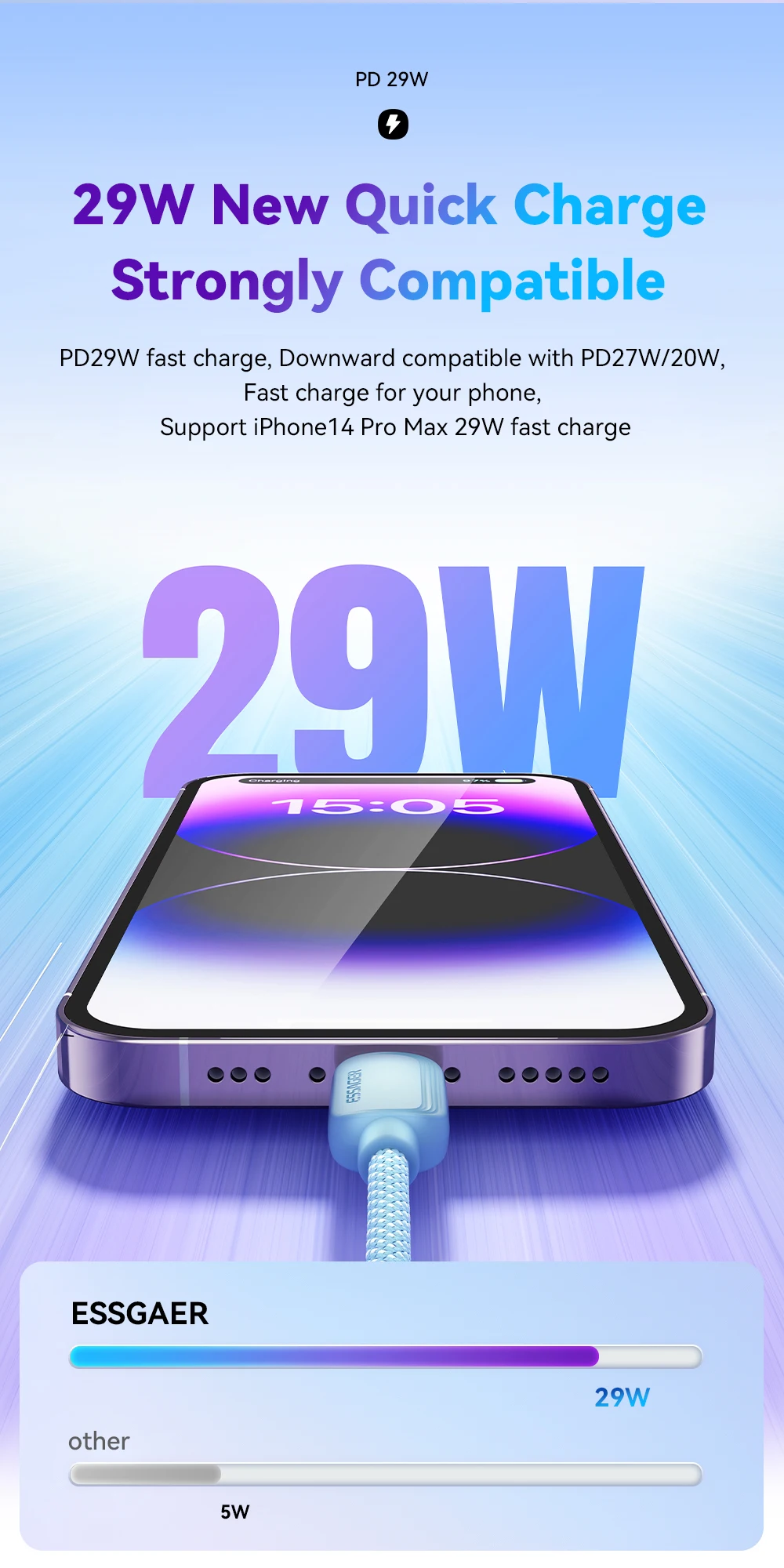 Comprar Essager-Cable USB tipo C para iPhone 14, 13, 12, 11 Pro Max, XS, PD, cargador rápido de 20W, Cable Lightning de 29W para iPad y Macbook