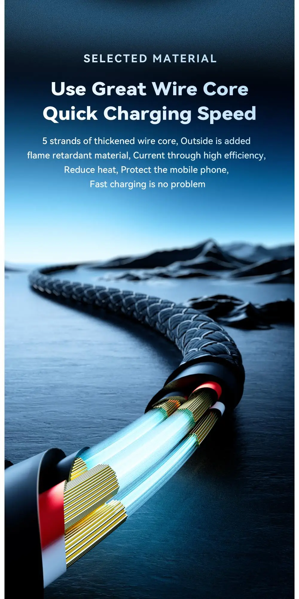 5. Núcleo de alambre engrosado de 5 hebras con material ignífugo en el exterior, alta eficiencia de paso de corriente y generación de calor reducida