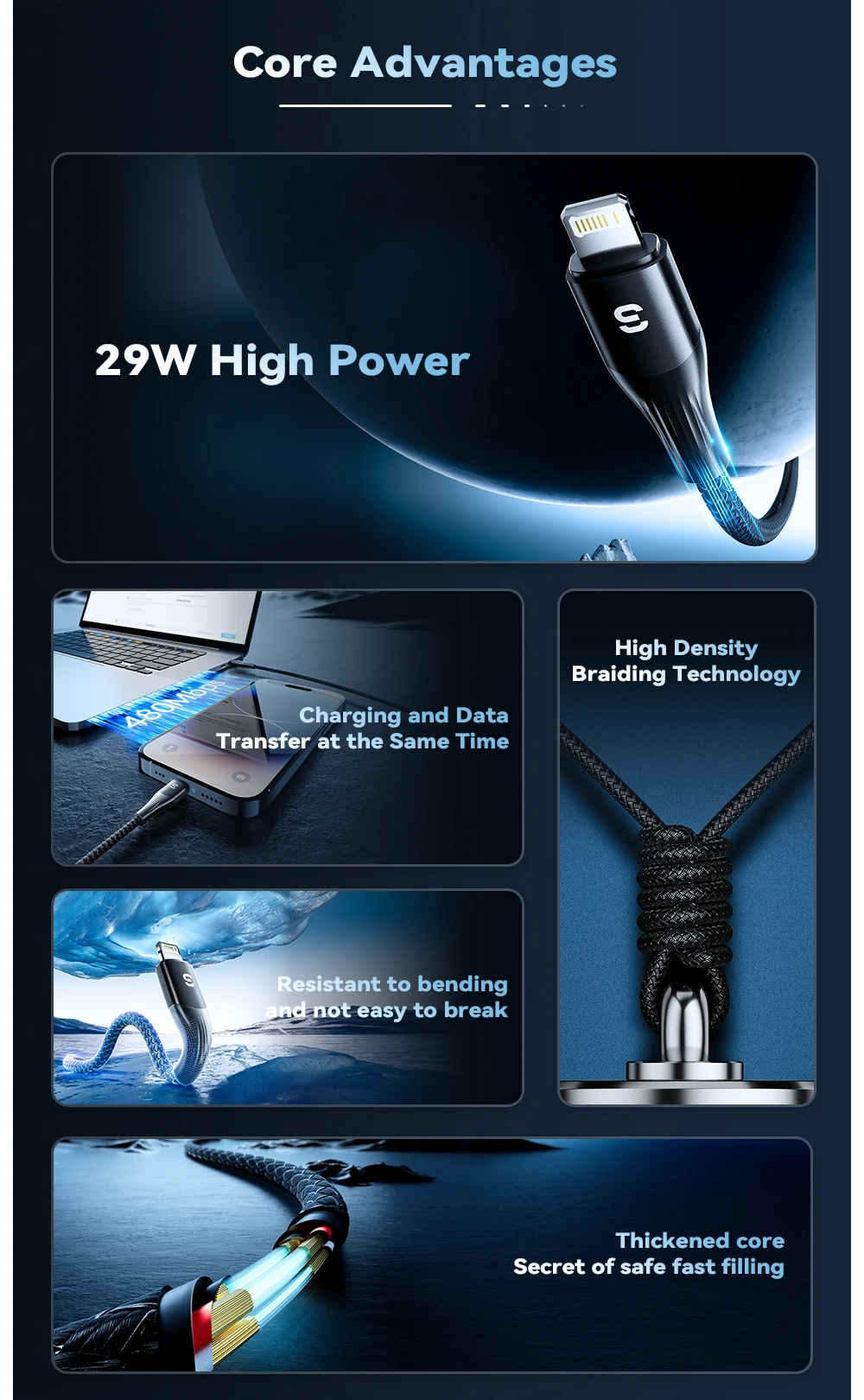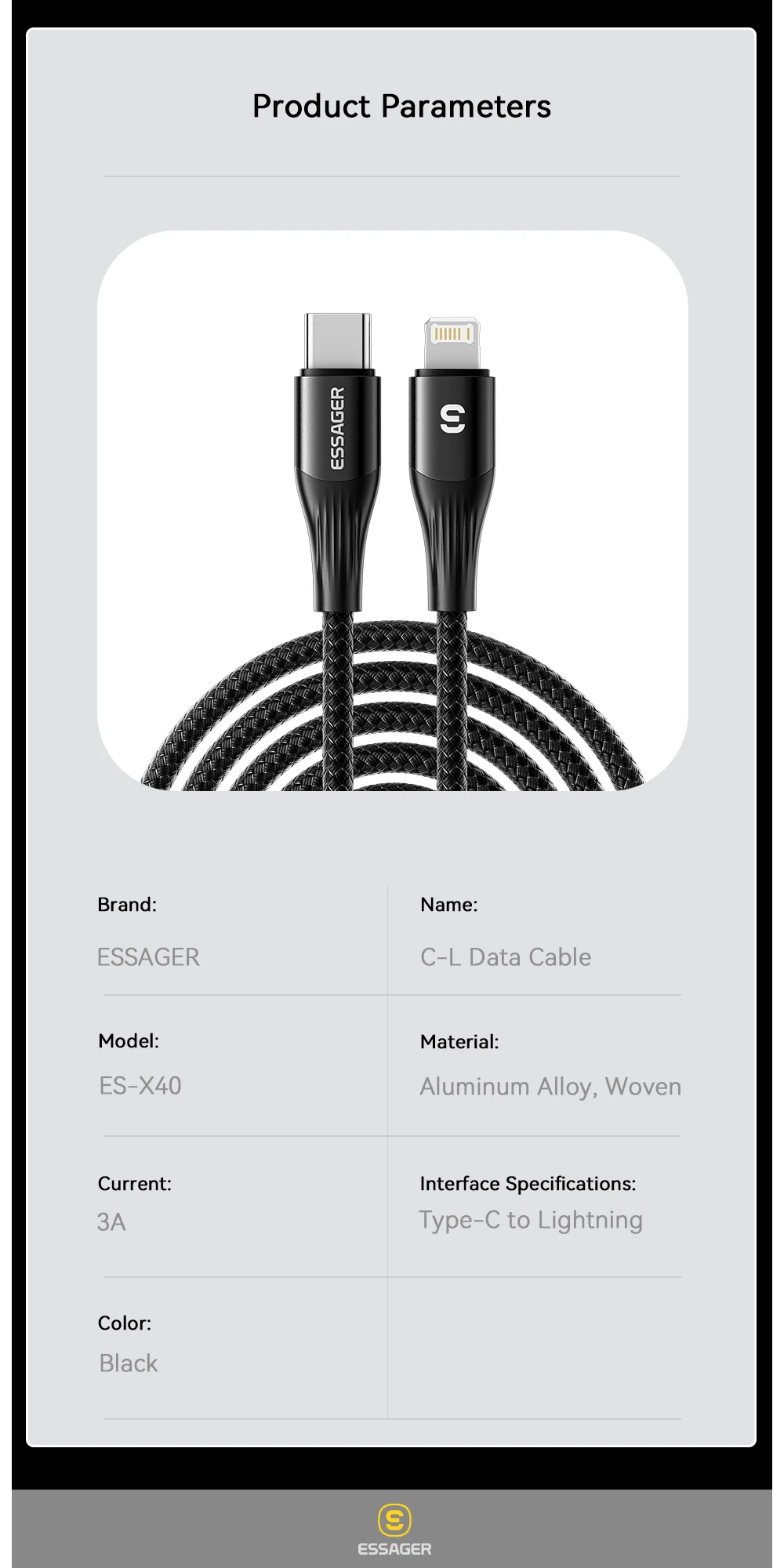 Nombre del producto: ESSAGER 29W USB C para cable de datos Lightning