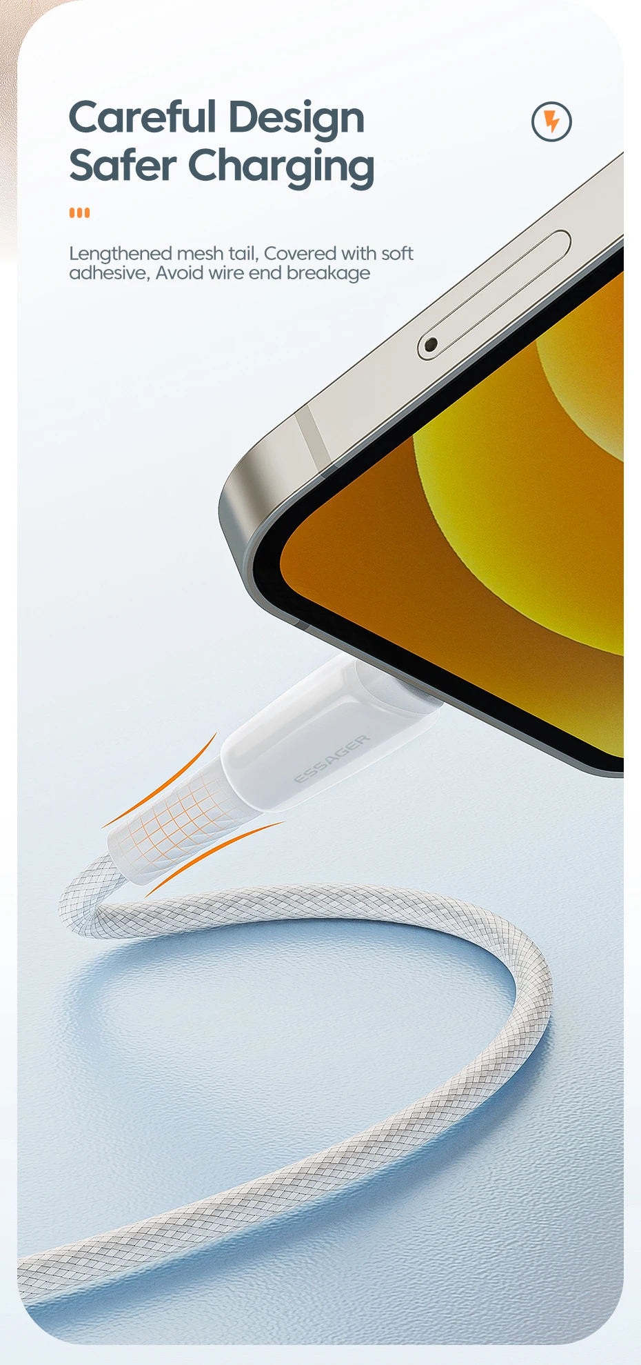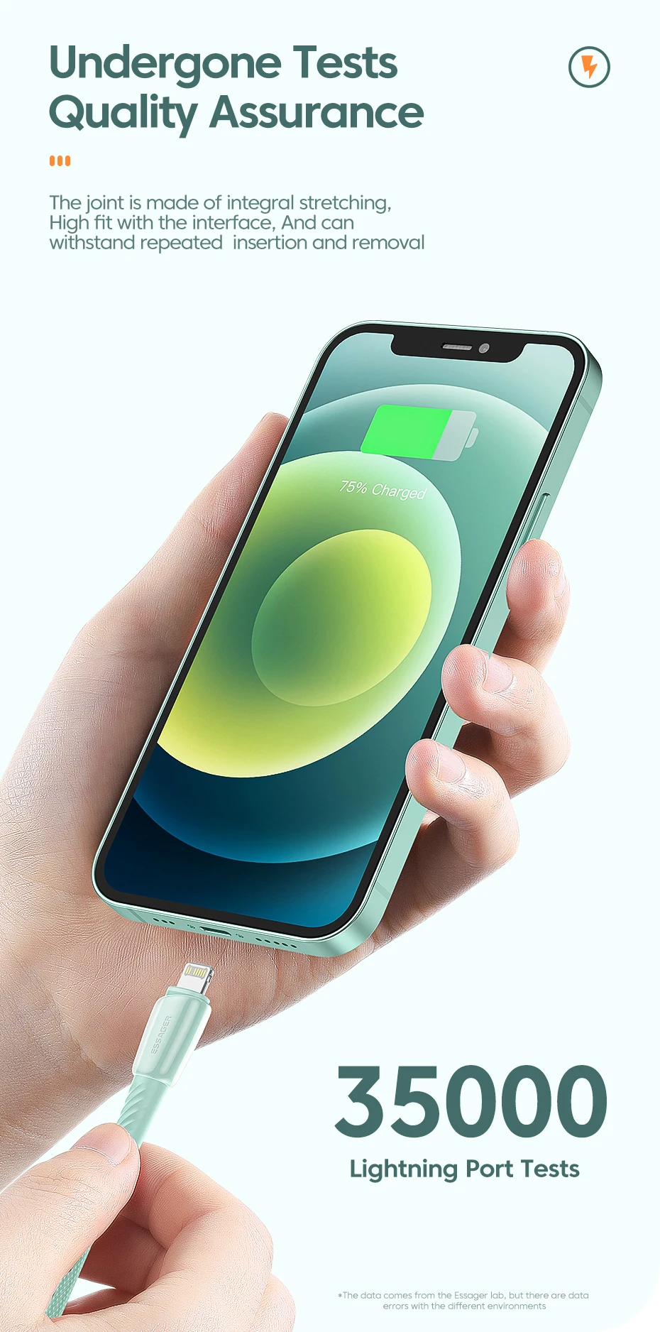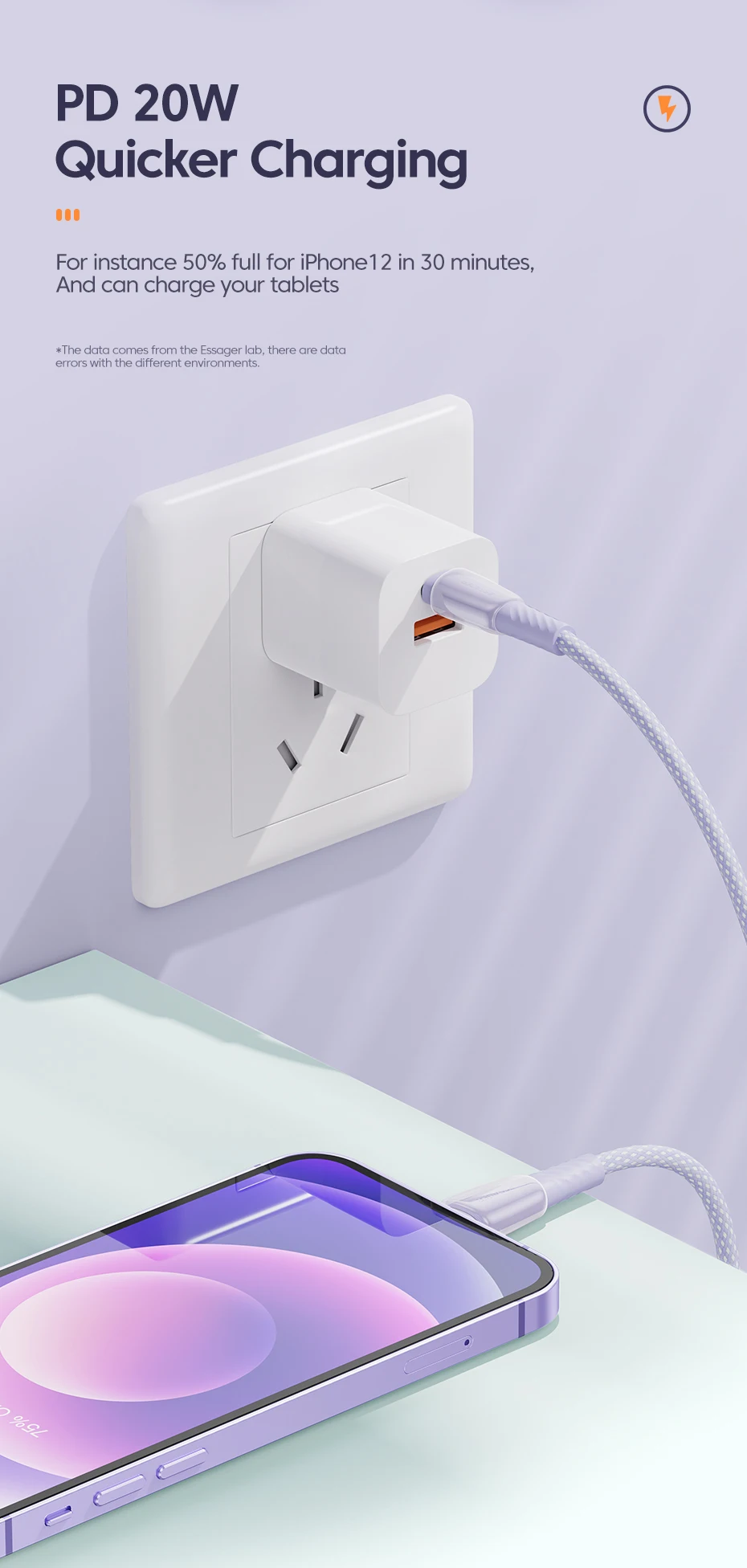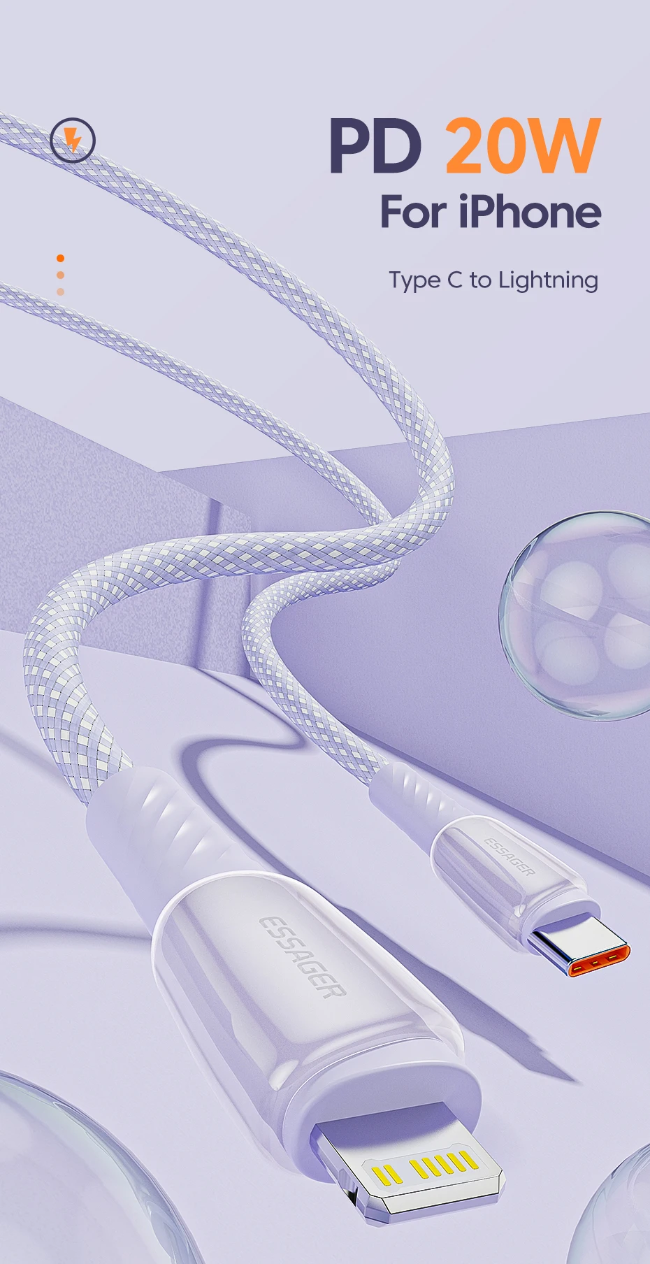 Comprar ESSAGER-Cable USB tipo C para móvil, cargador de carga rápida PD de 20W para iPhone 14, 13, 12, 11 Pro Max, 2.4A, 6, 7, 8Plus, iPad