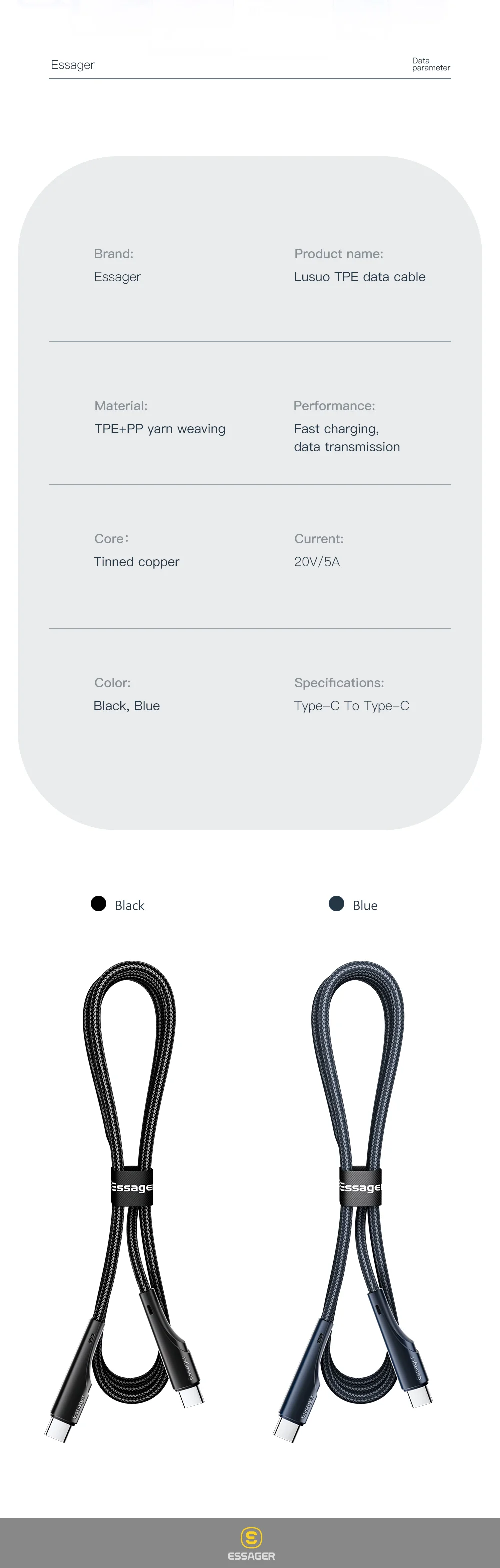 Comprar Essager-Cable USB tipo C PD100W 60W, Cargador rápido para Xiaomi POCOX3, MacBook, iPad, Samsung, Huawei