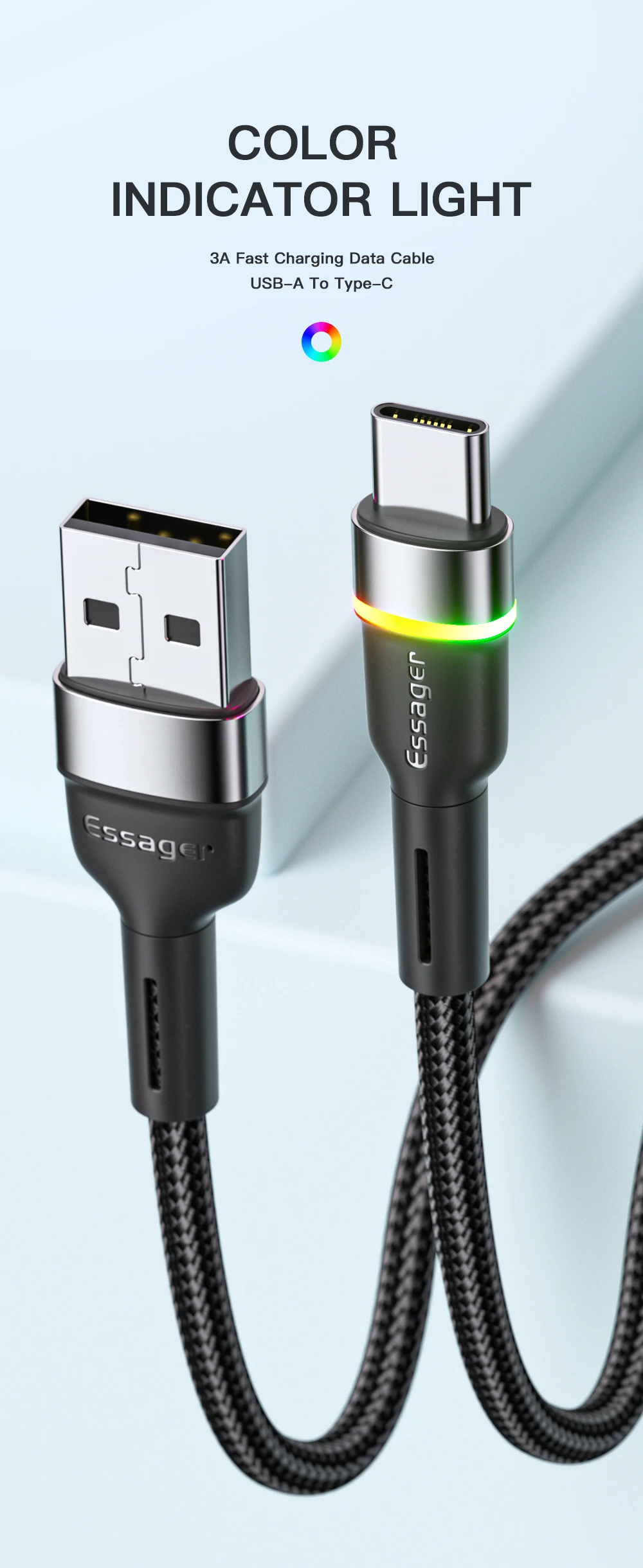Comprar Essager-Cable USB tipo C para teléfono móvil, cargador rápido 3A para Xiaomi, Huawei, Redmi Mate, Samsung, USBC
