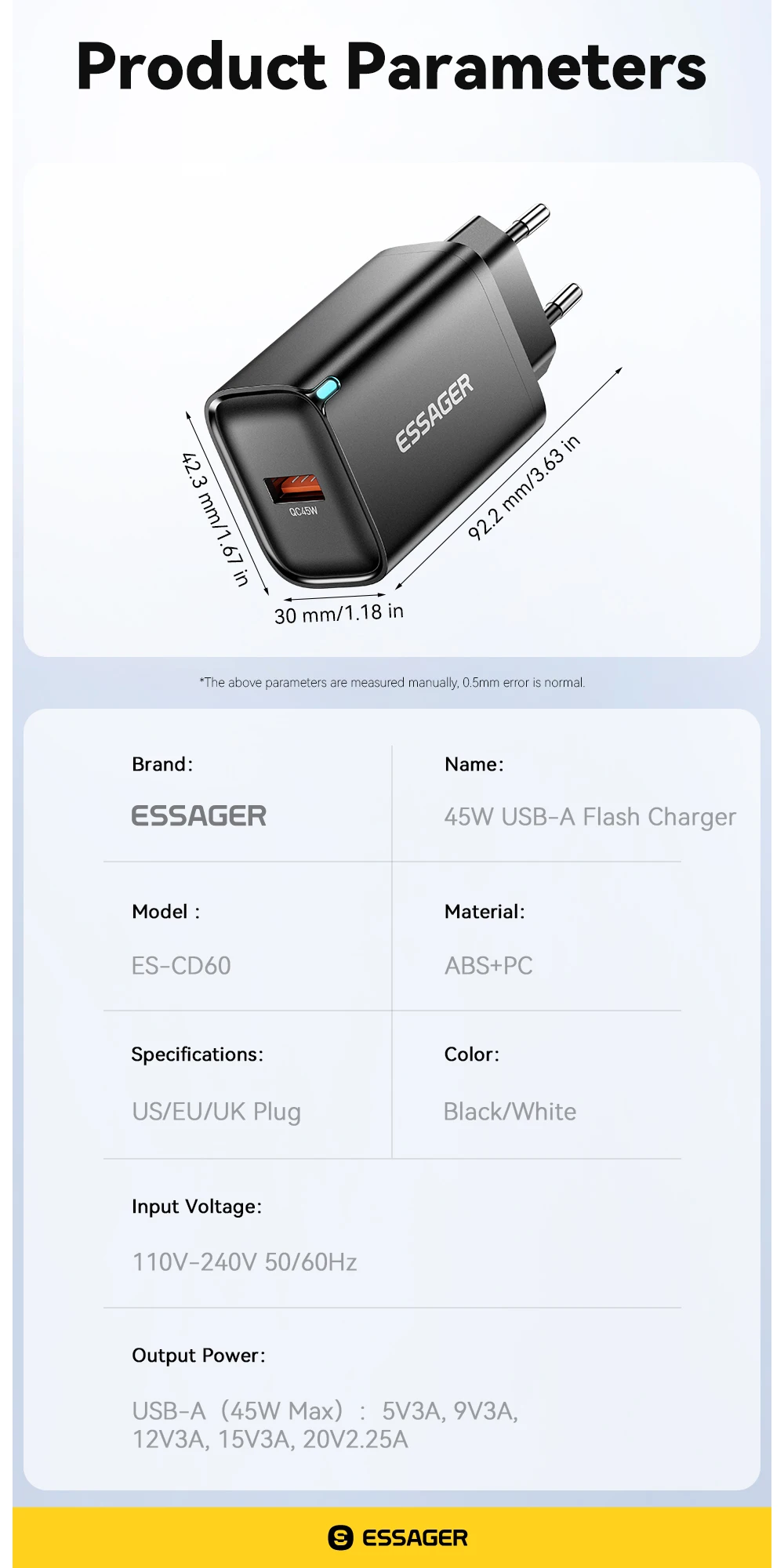 ESSAGER 45W Carga rápida universal individual-A
