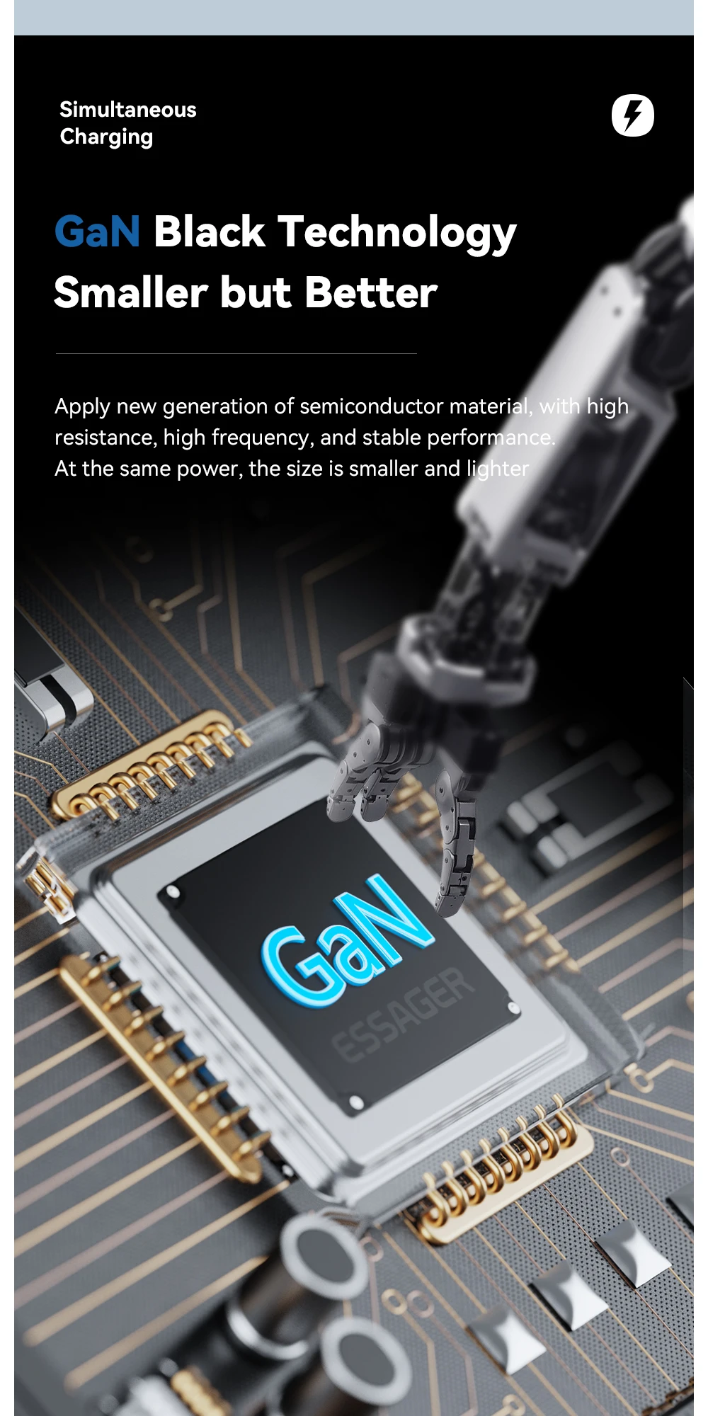 Carga de tres puertos al mismo tiempo sin colas, chip incorporado, derivación inteligente